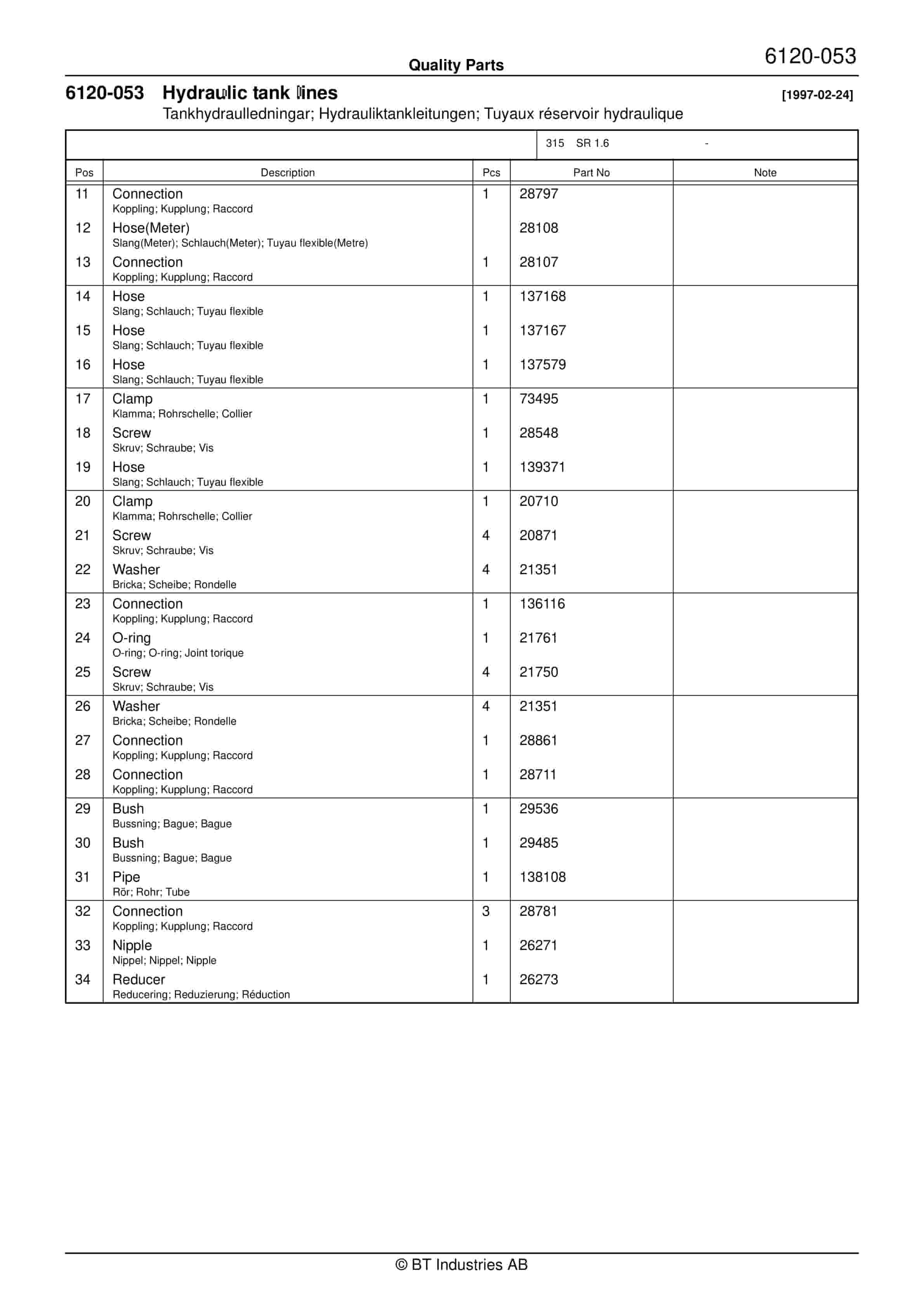 BT 602-TT, 608-TT, 609-TT, 610-TT, 612-TT, 620-TT (AC) Quality Parts 253711