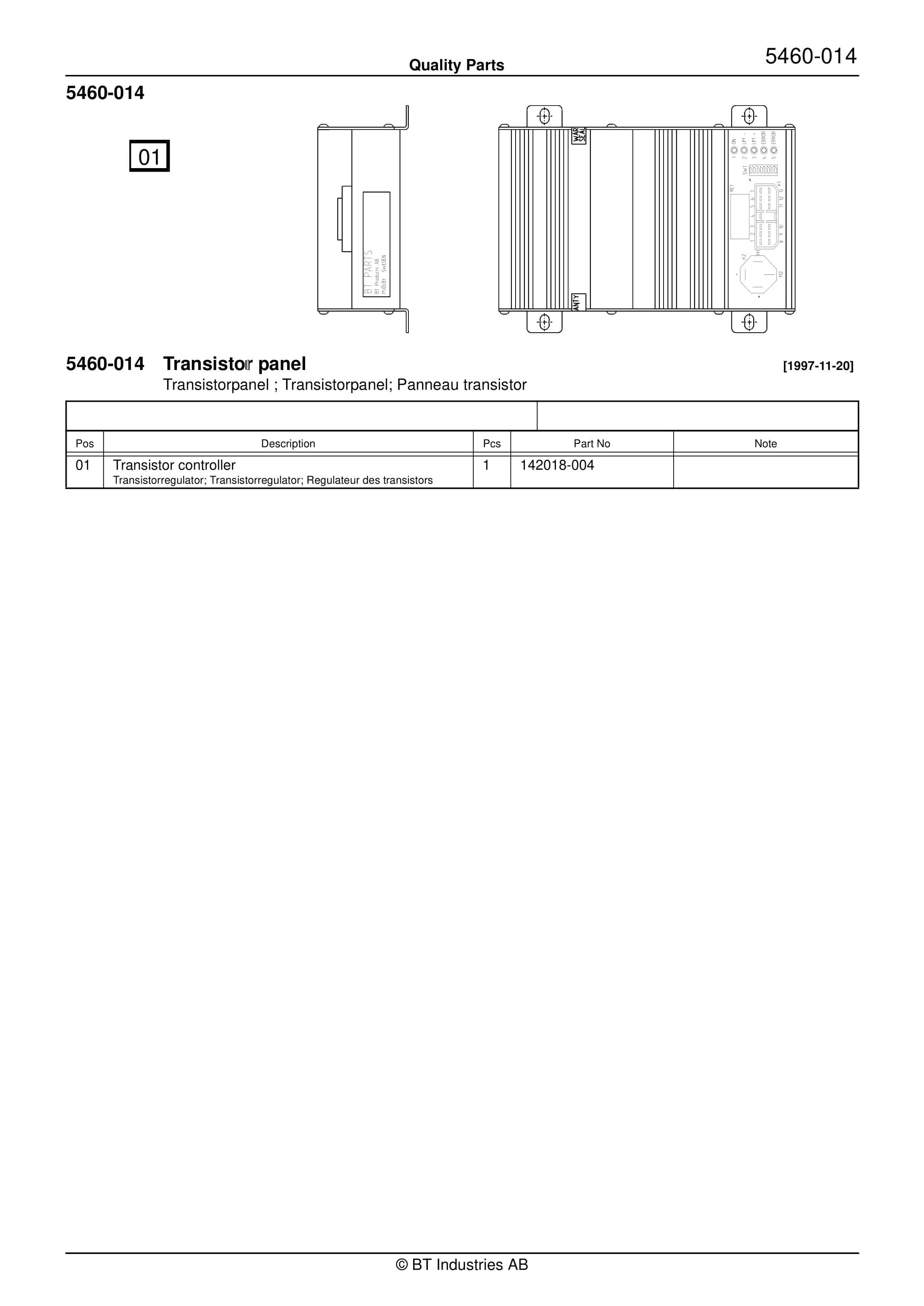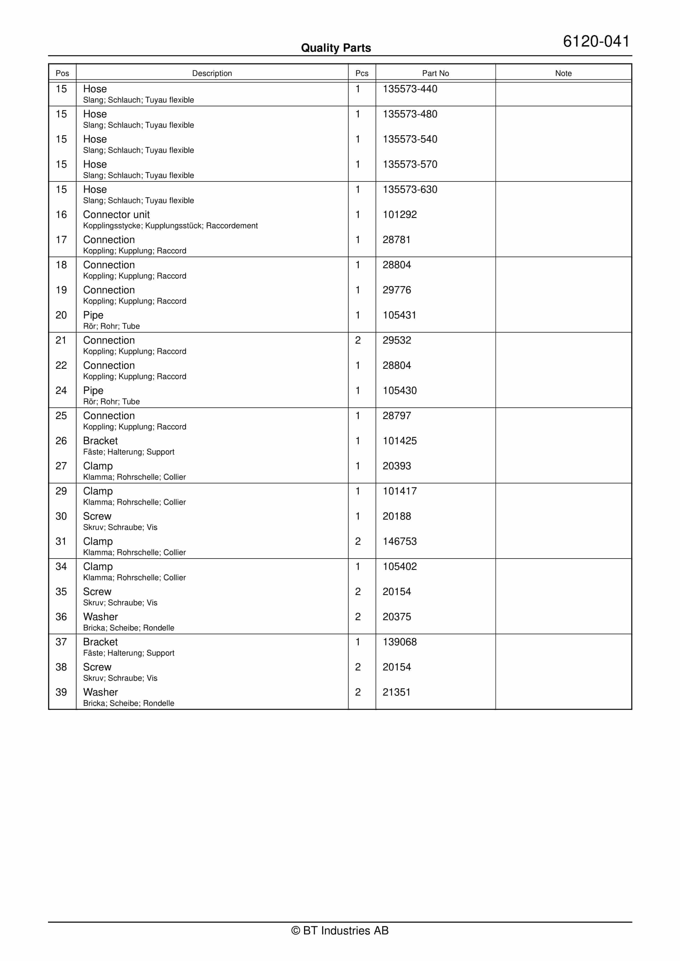 BT BTL20EW, BTL20EWO, BTL30EW, BTL30EWO, L20BR, L20BRO, L30BR, L30BRO Quality Parts 177967