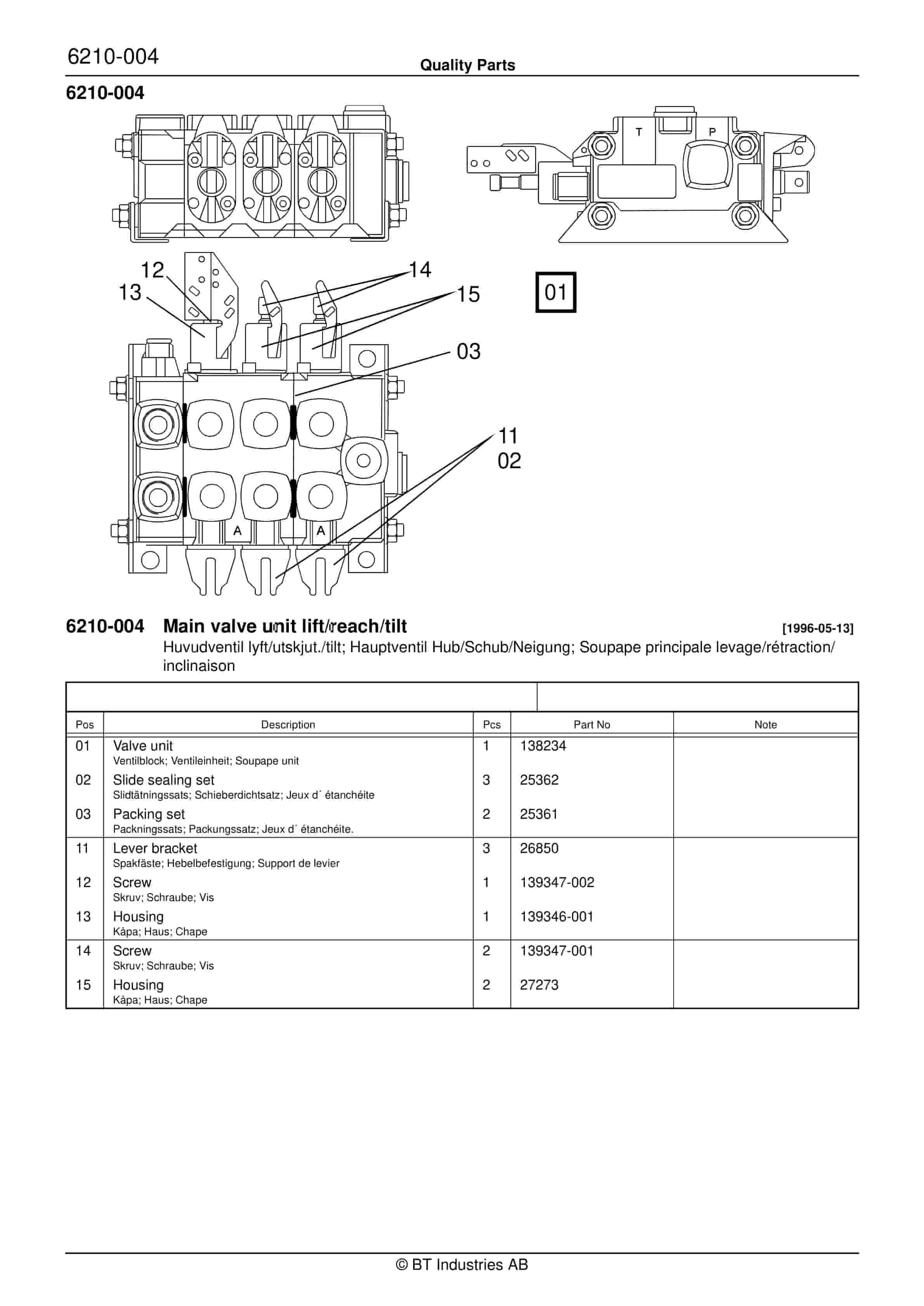 BT 600-TT, 602-TT, 604-TT, 608-TT, 609-TT, 610-TT, 612-TT, 620-TT Quality Parts 208538