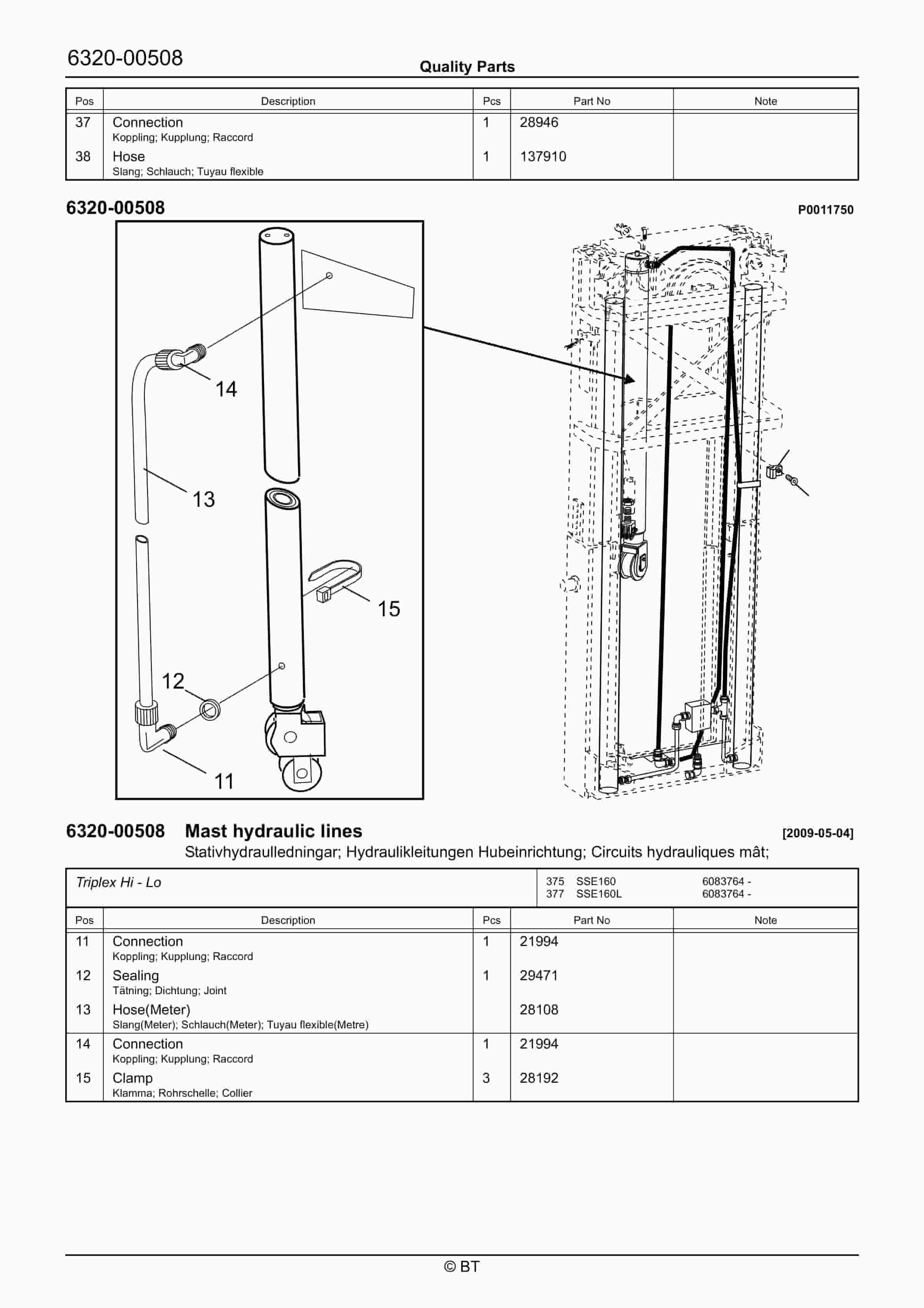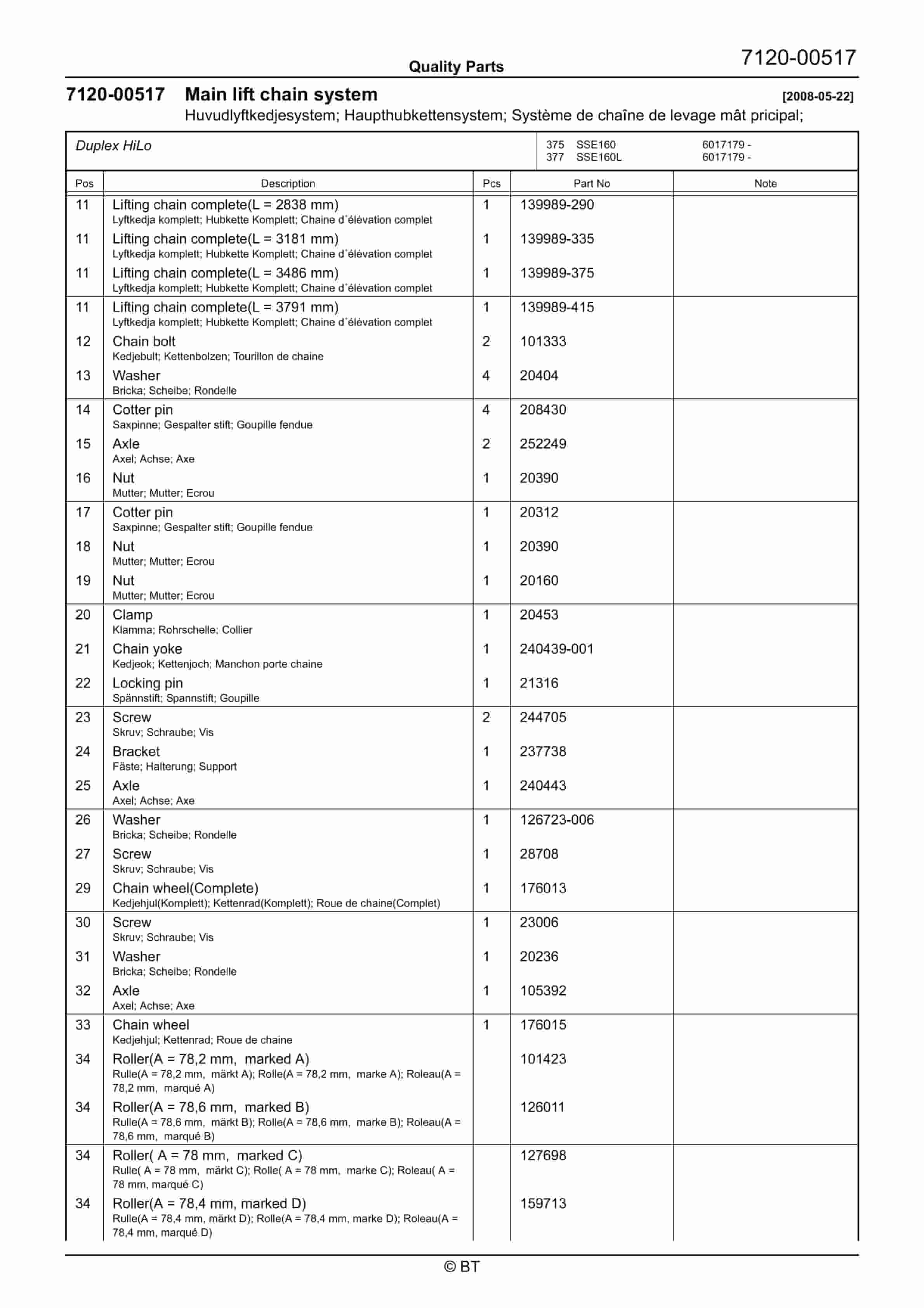 BT SSE135, SSE135L, SSE160, SSE160L Quality Parts 7513646