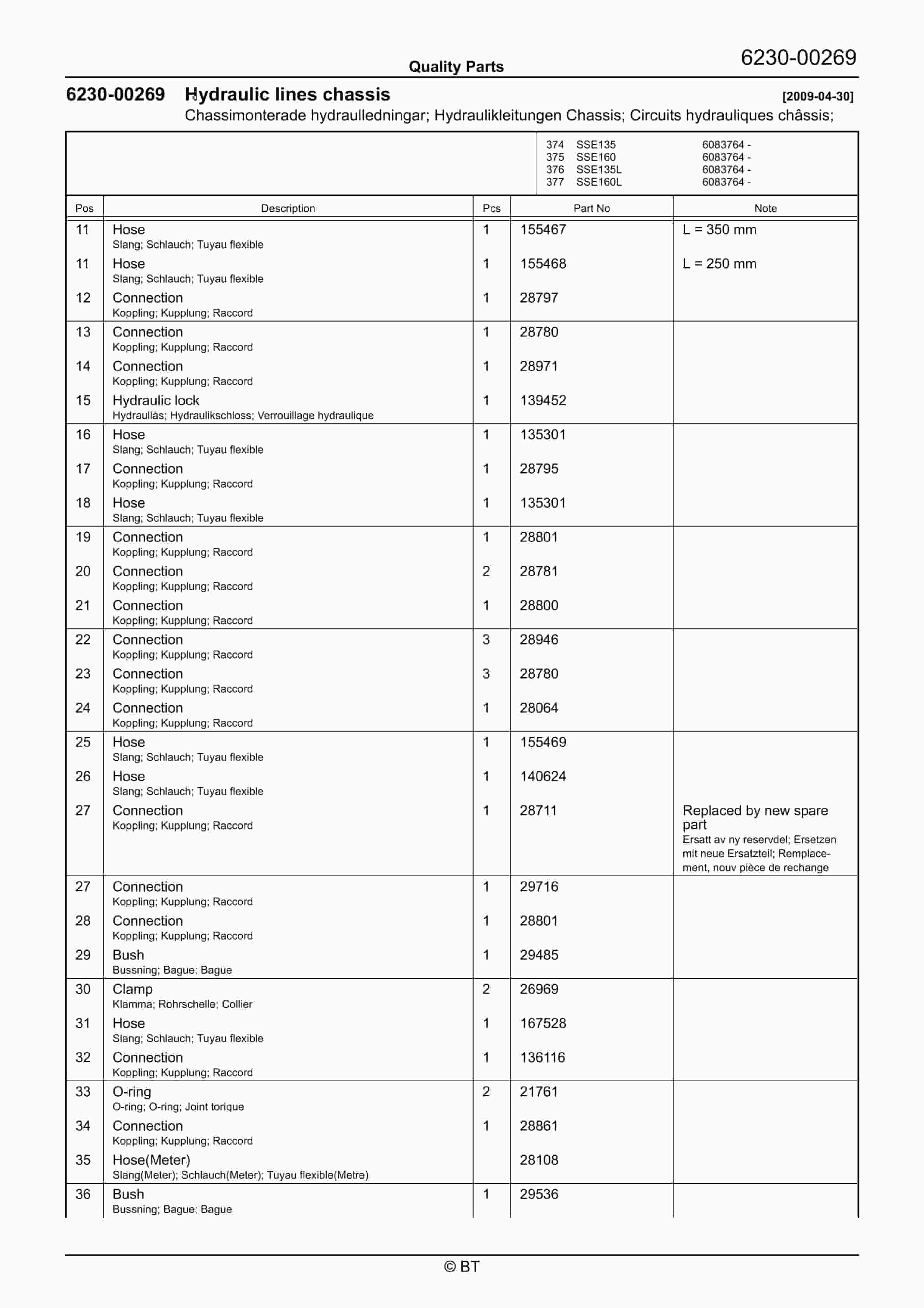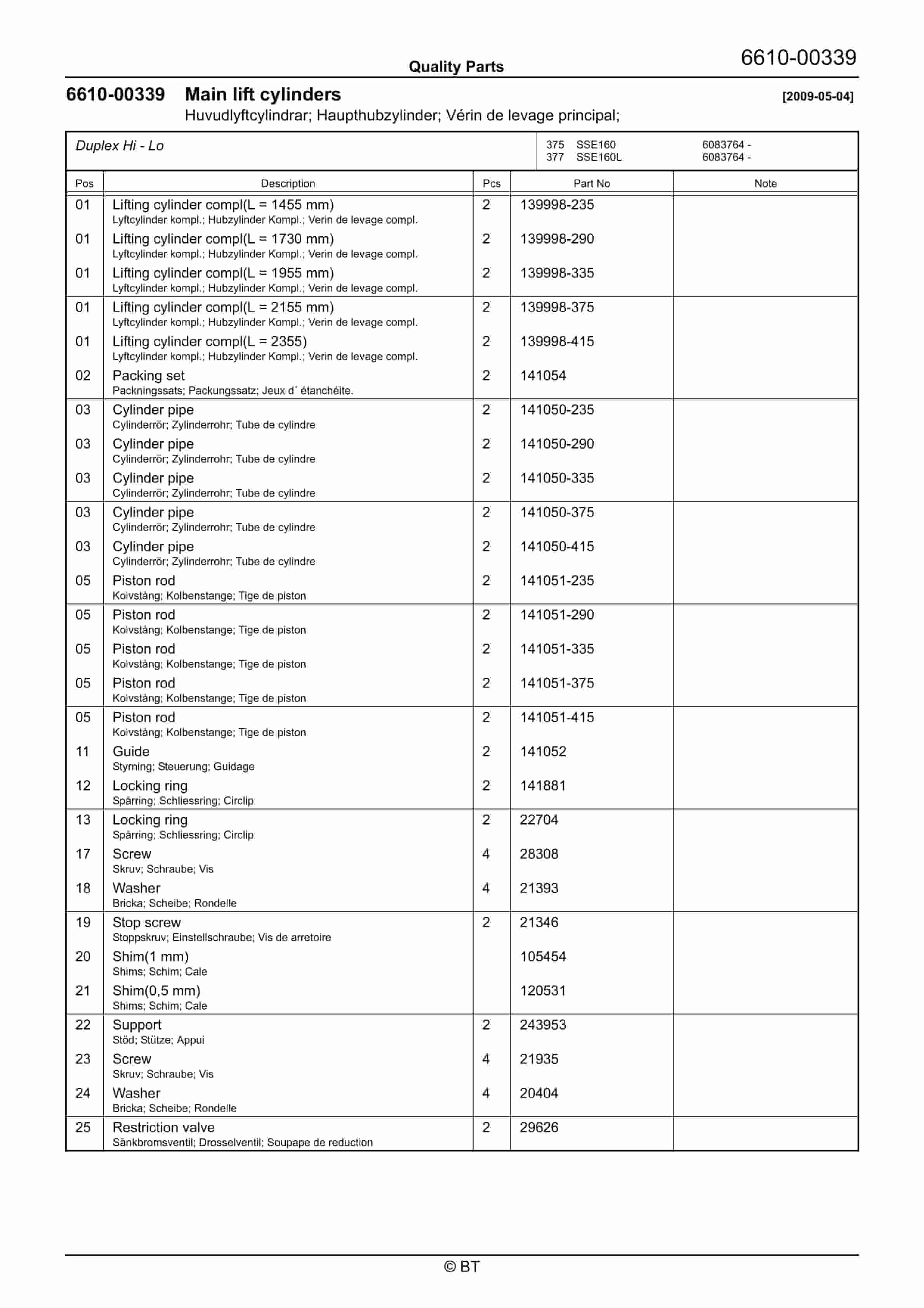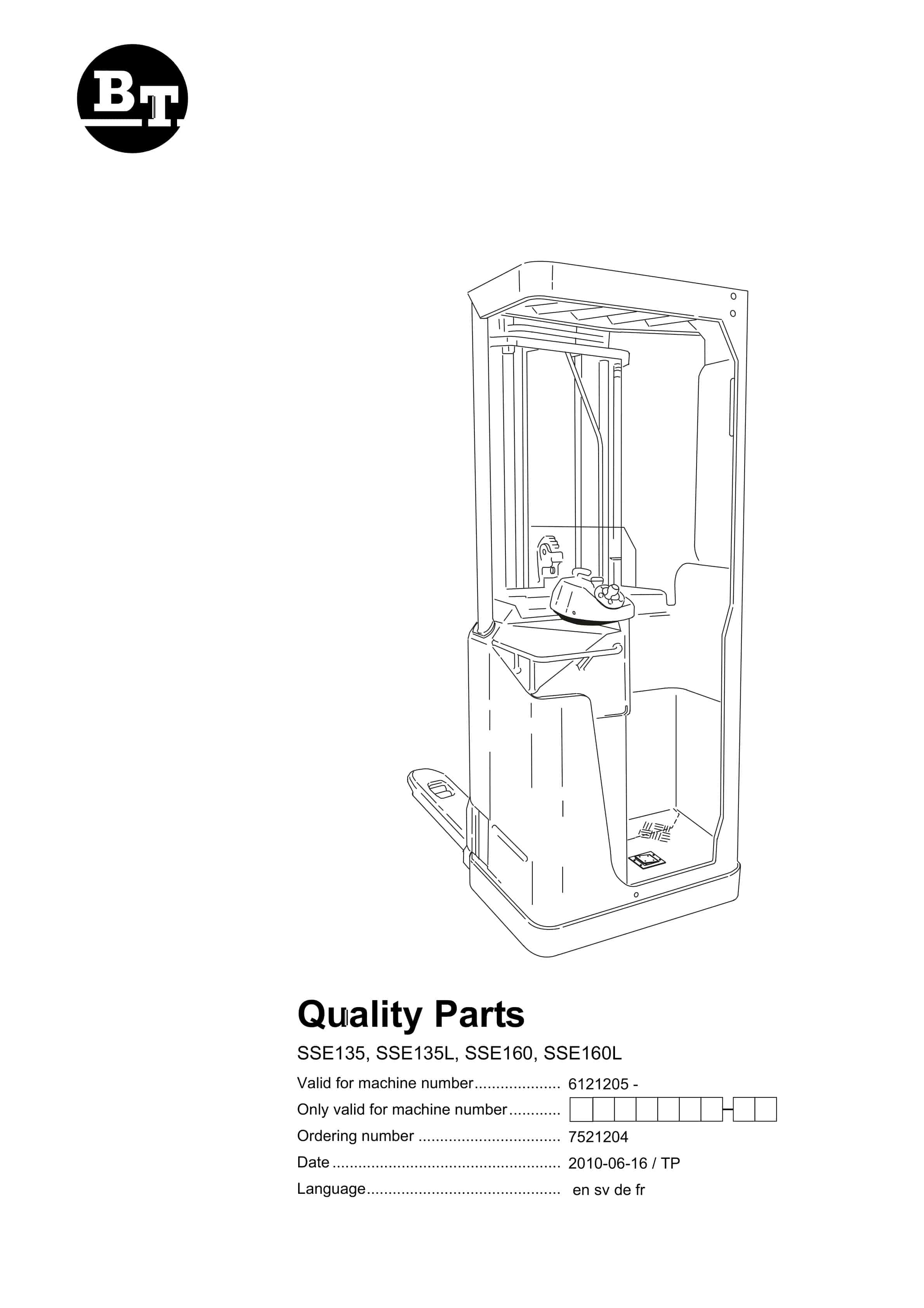 BT SSE135, SSE135L, SSE160, SSE160L Quality Parts 7521204