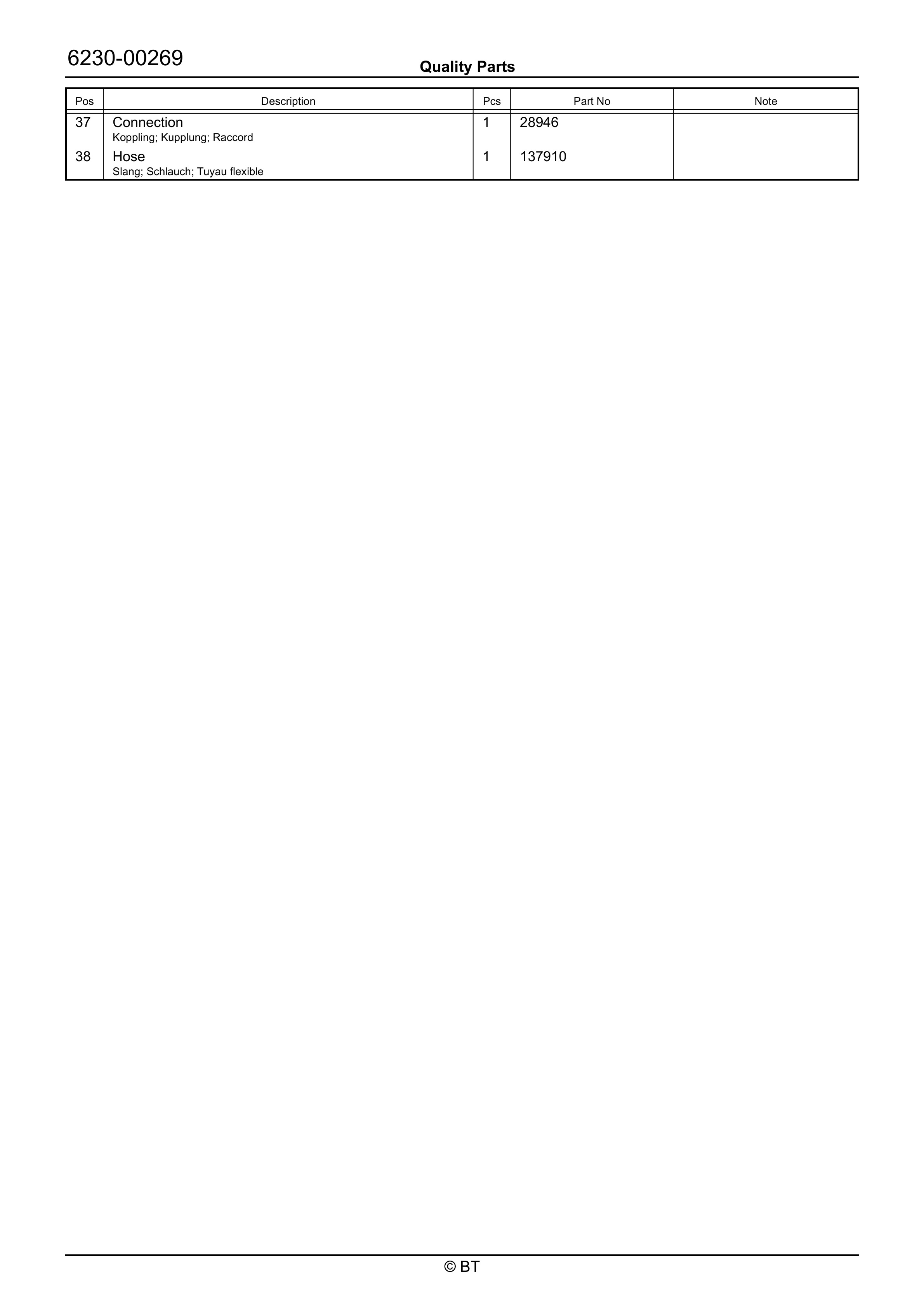 BT BTL20EW, BTL20EWO, BTL30EW, BTL30EWO, L20BR, L20BRO, L30BR, L30BRO Quality Parts 177967