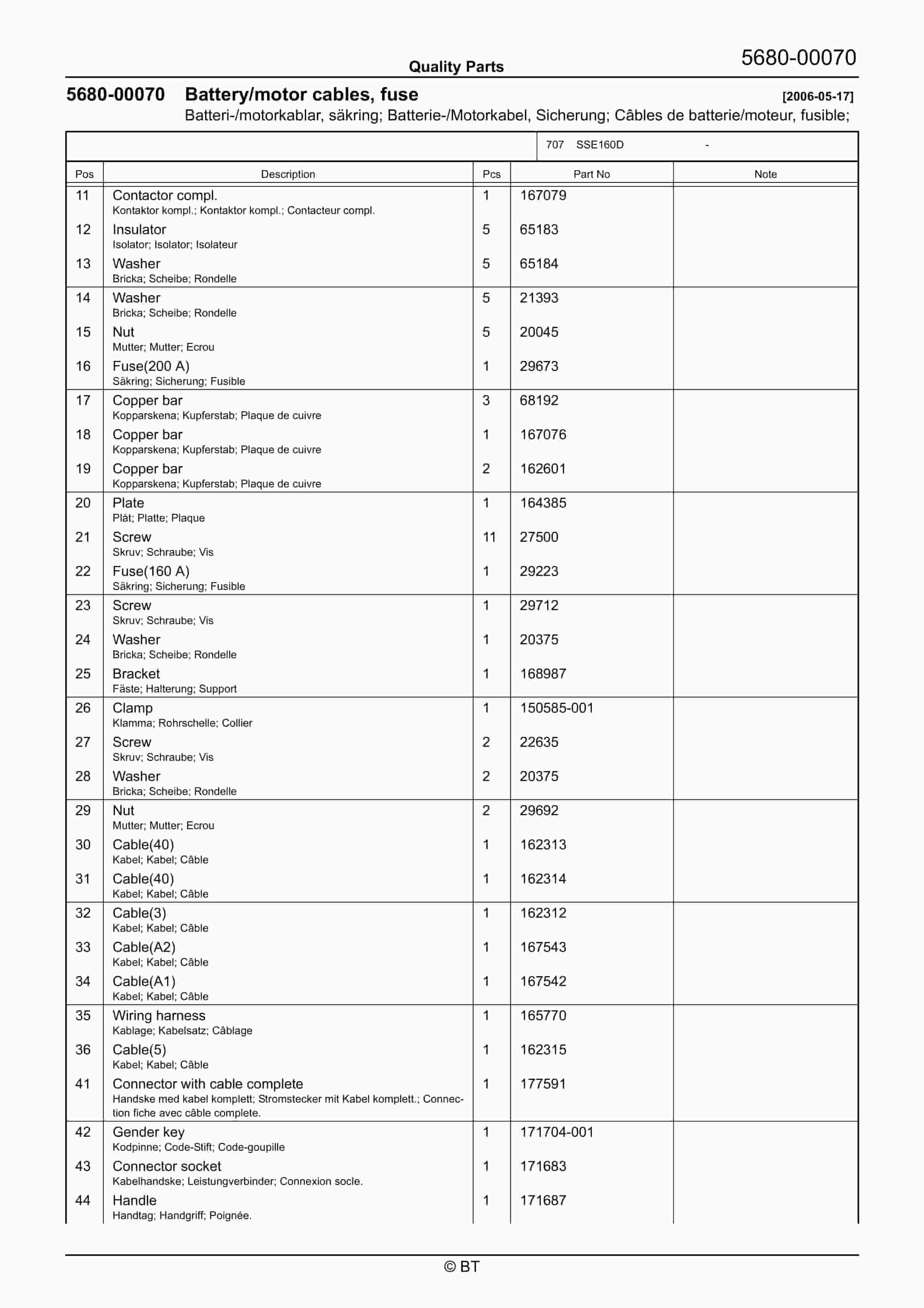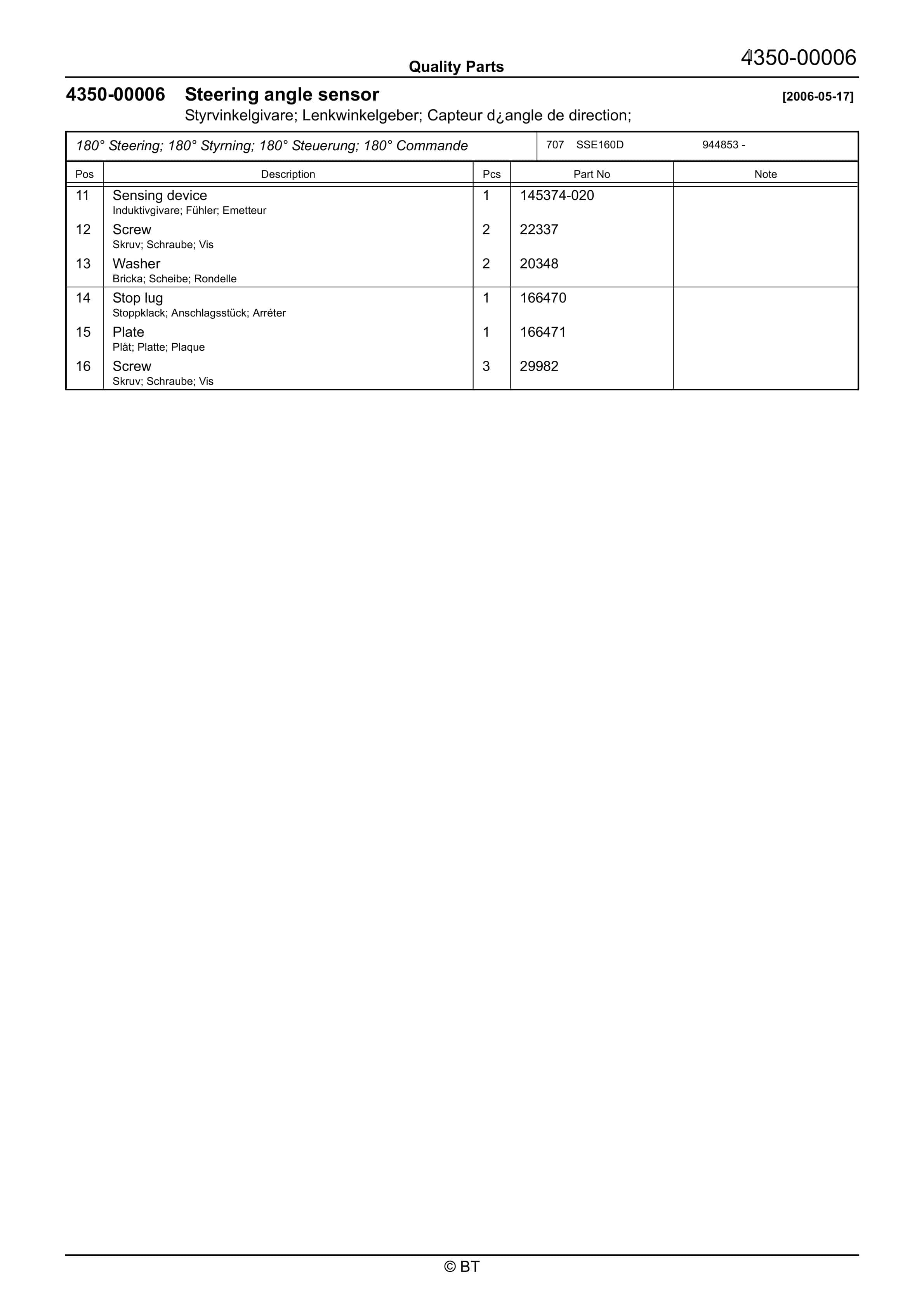 BT 602-TT, 608-TT, 609-TT, 610-TT, 612-TT, 620-TT (AC) Quality Parts 253711