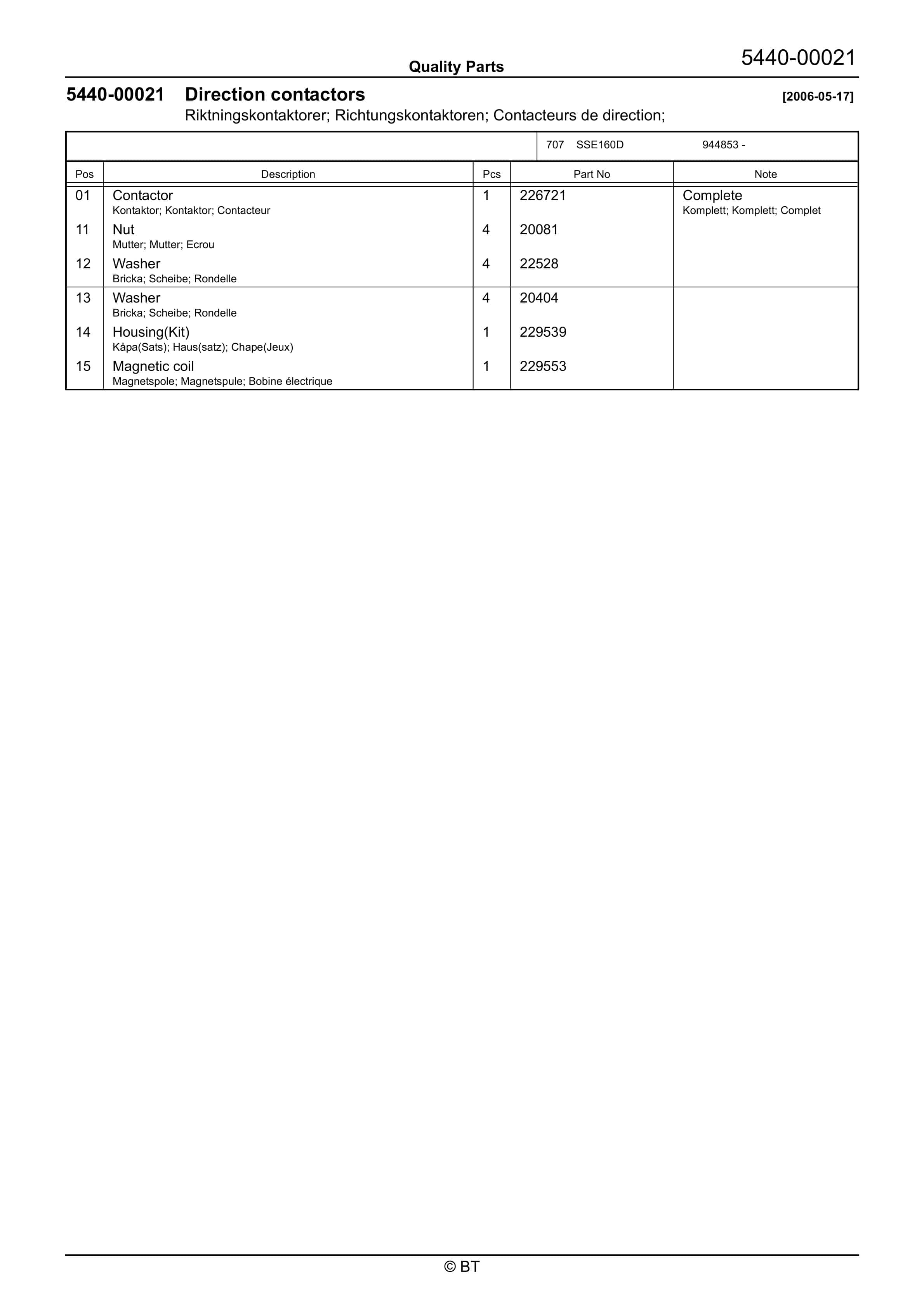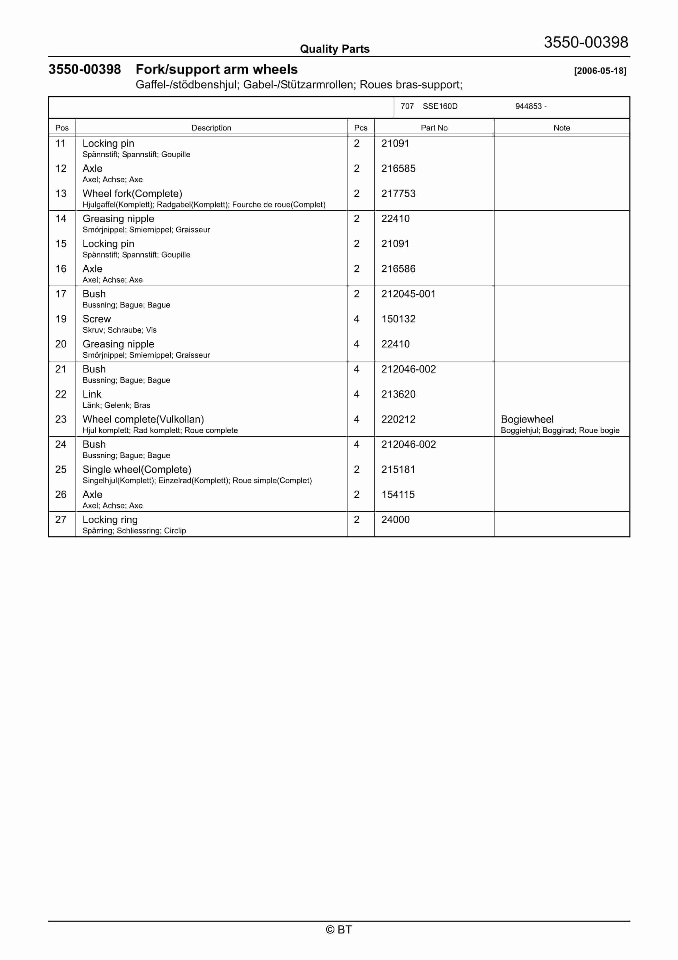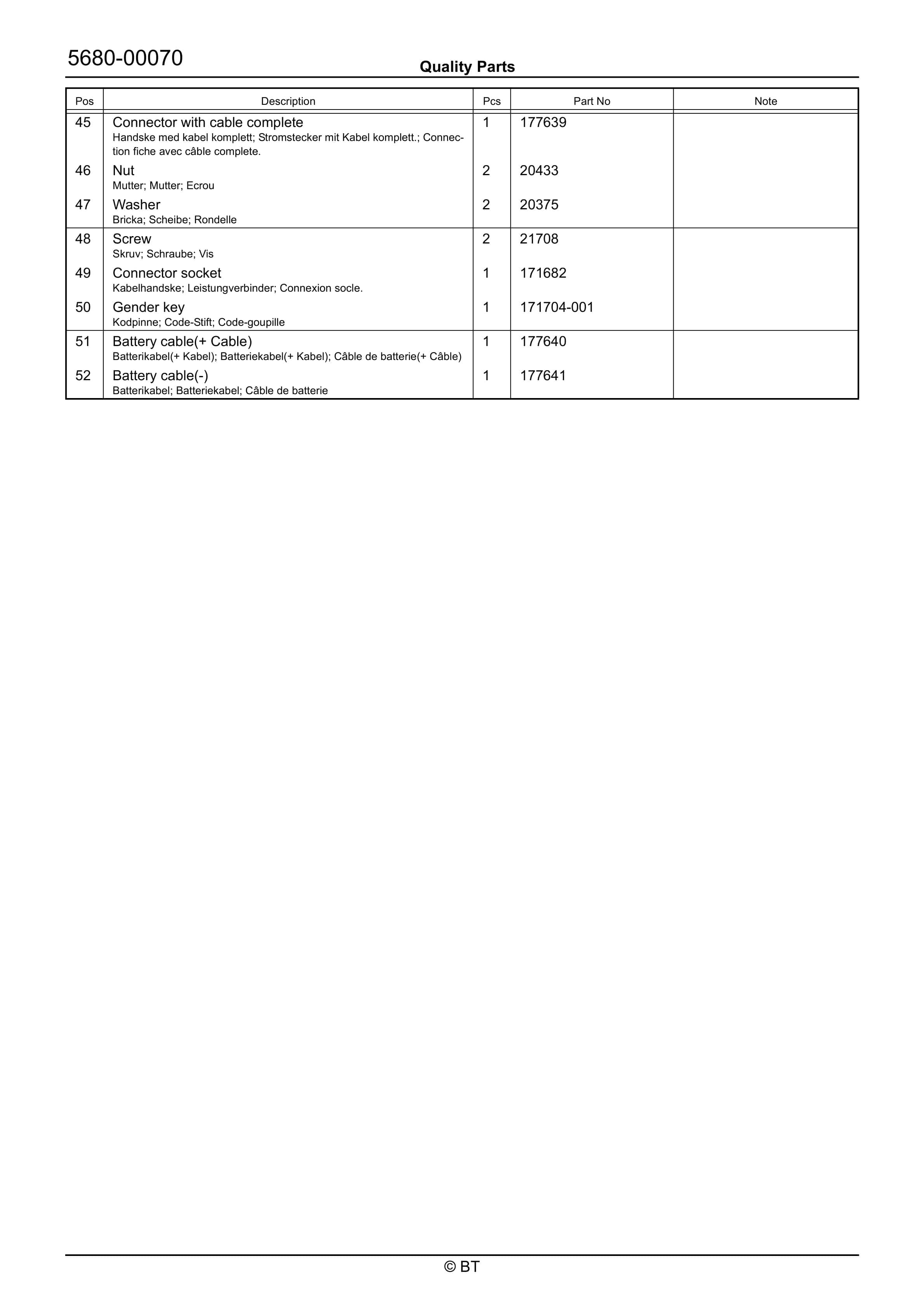 BT 600-TT, 602-TT, 608-TT, 609-TT, 610-TT, 612-TT, 620-TT (AC) Quality Parts 212162