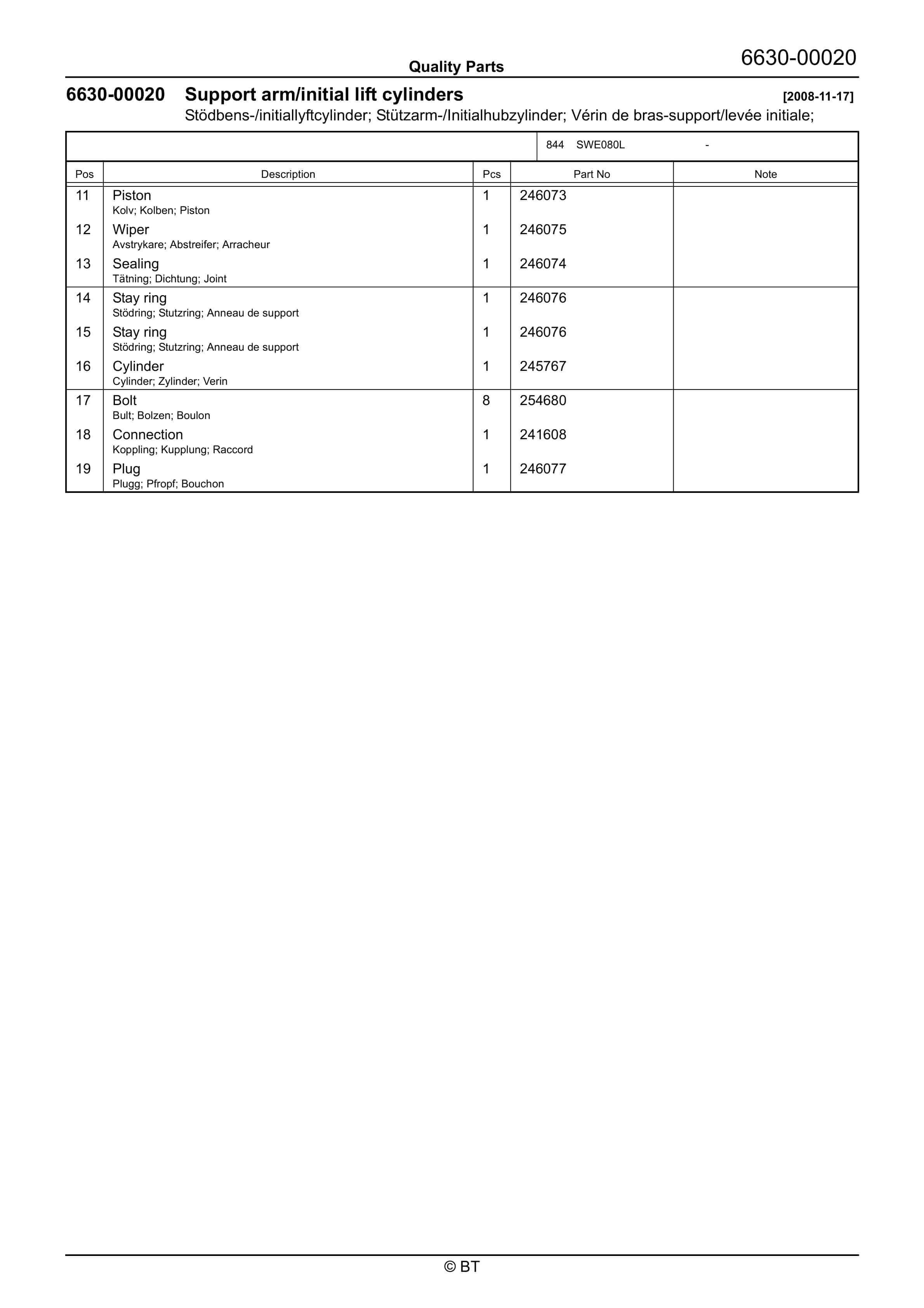 BT SWE080L Quality Parts 7520190