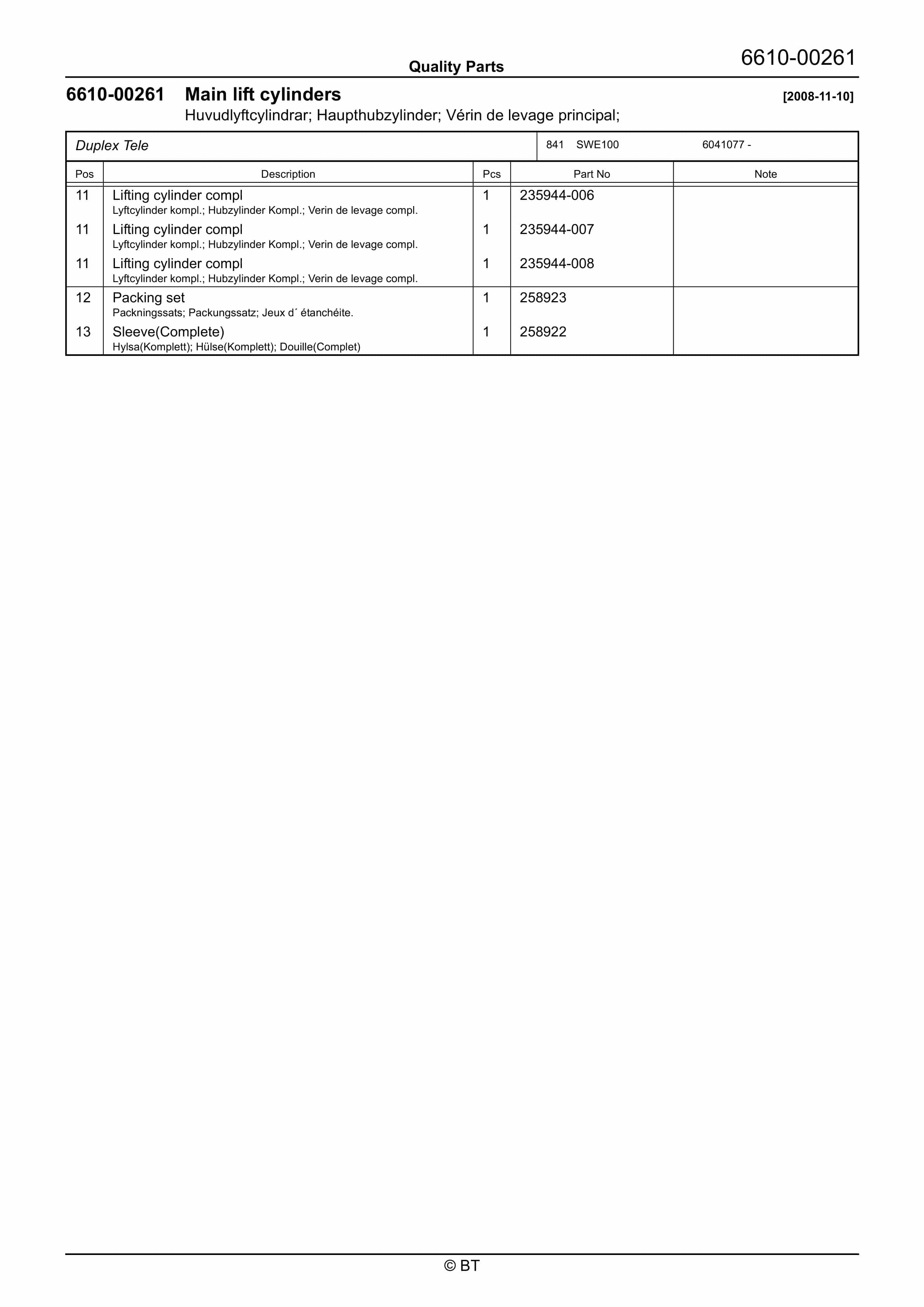 Category: BT Parts Manual PDF