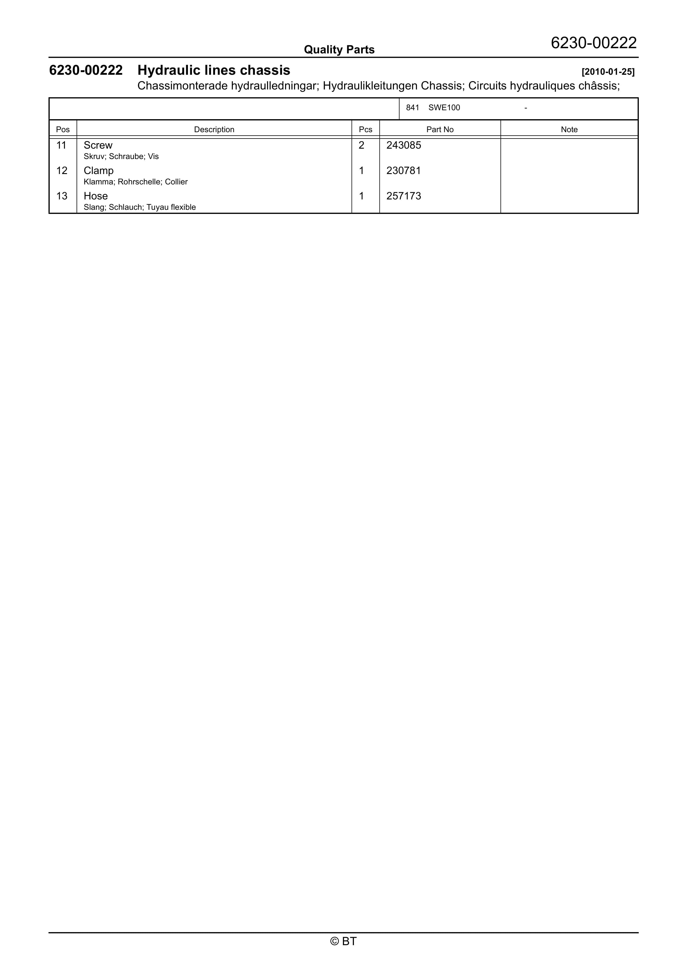 BT 602-TT, 608-TT, 609-TT, 610-TT, 612-TT, 620-TT Quality Parts 229210