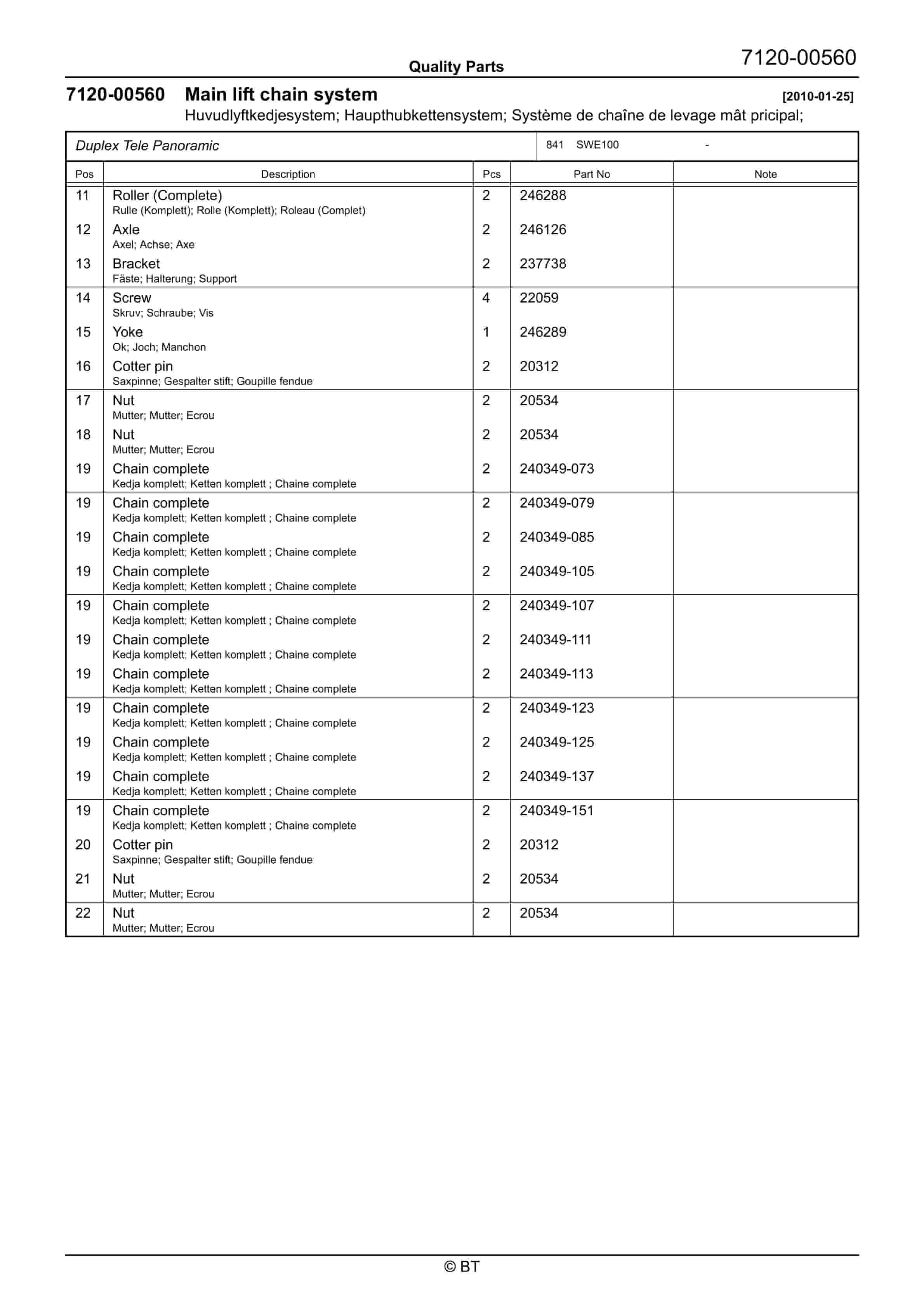 BT BTL20EW, BTL20EWO, BTL30EW, BTL30EWO, L20BR, L20BRO, L30BR, L30BRO Quality Parts 177967