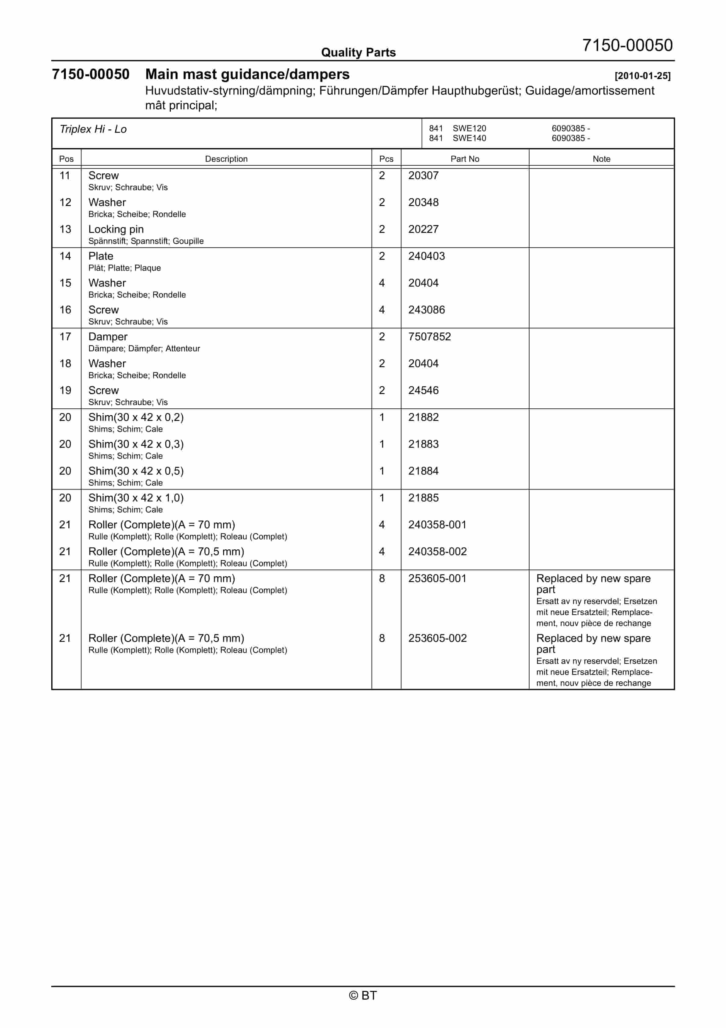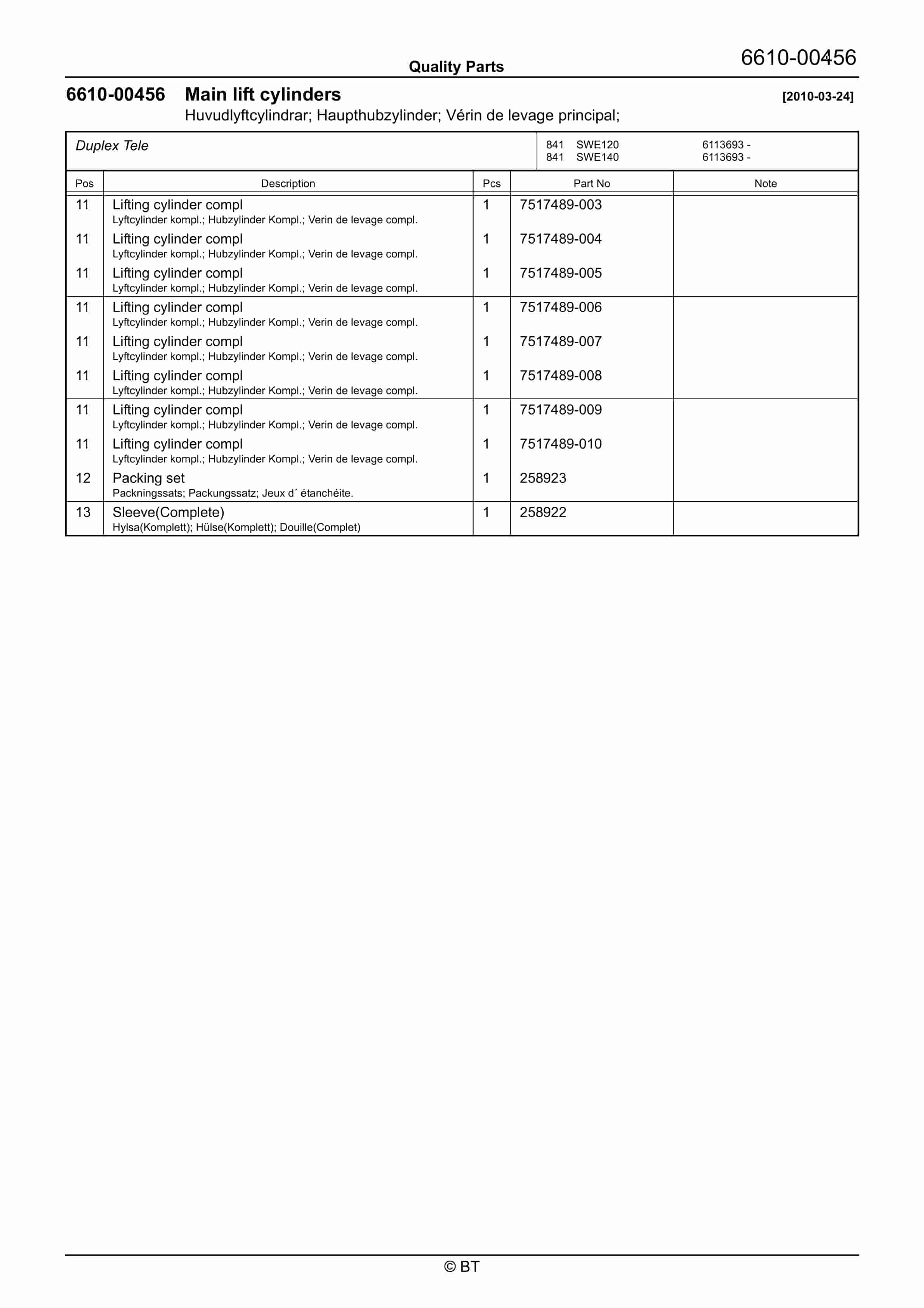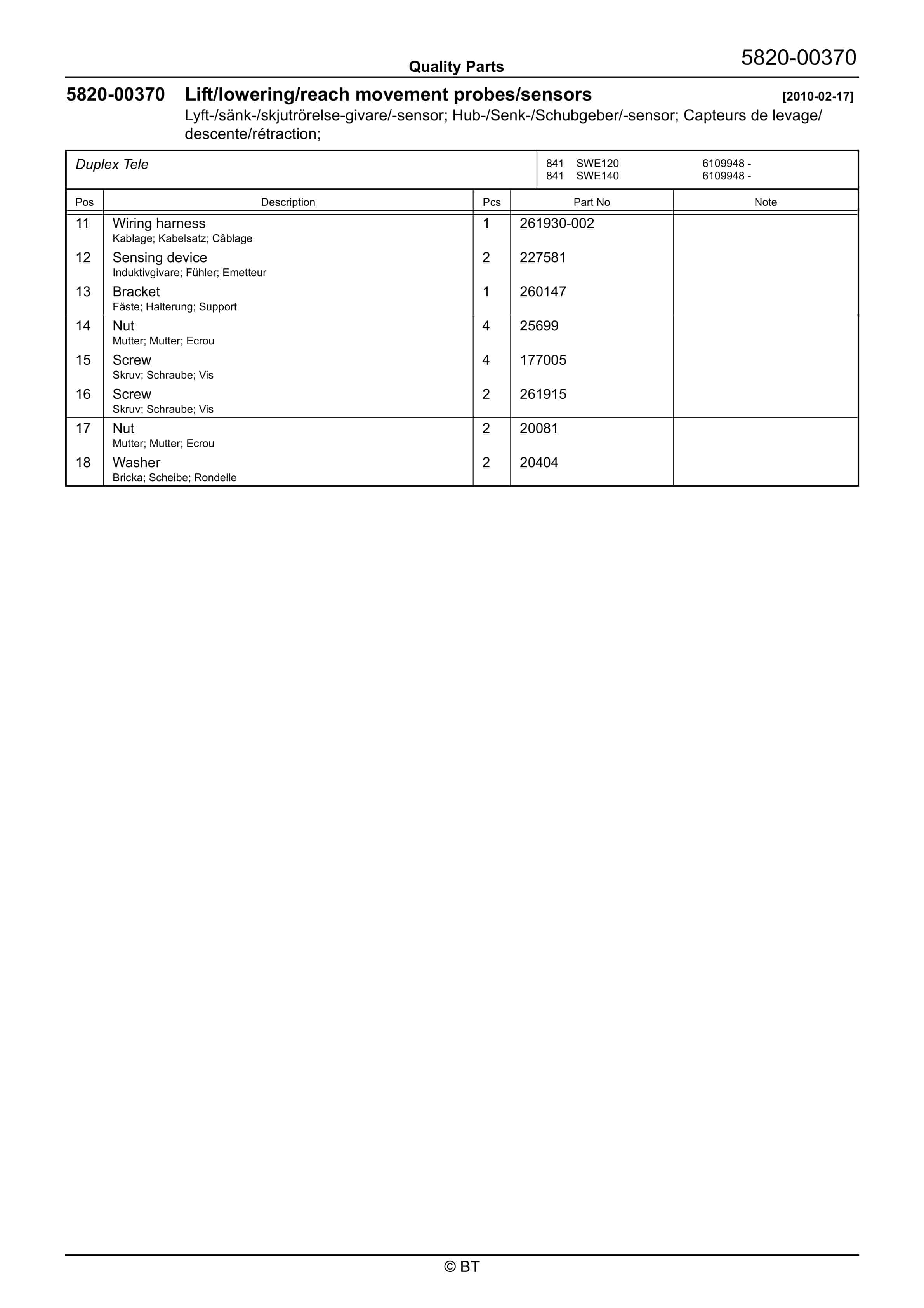 BT SWE100, SWE120, SWE140 Quality Parts 7517507
