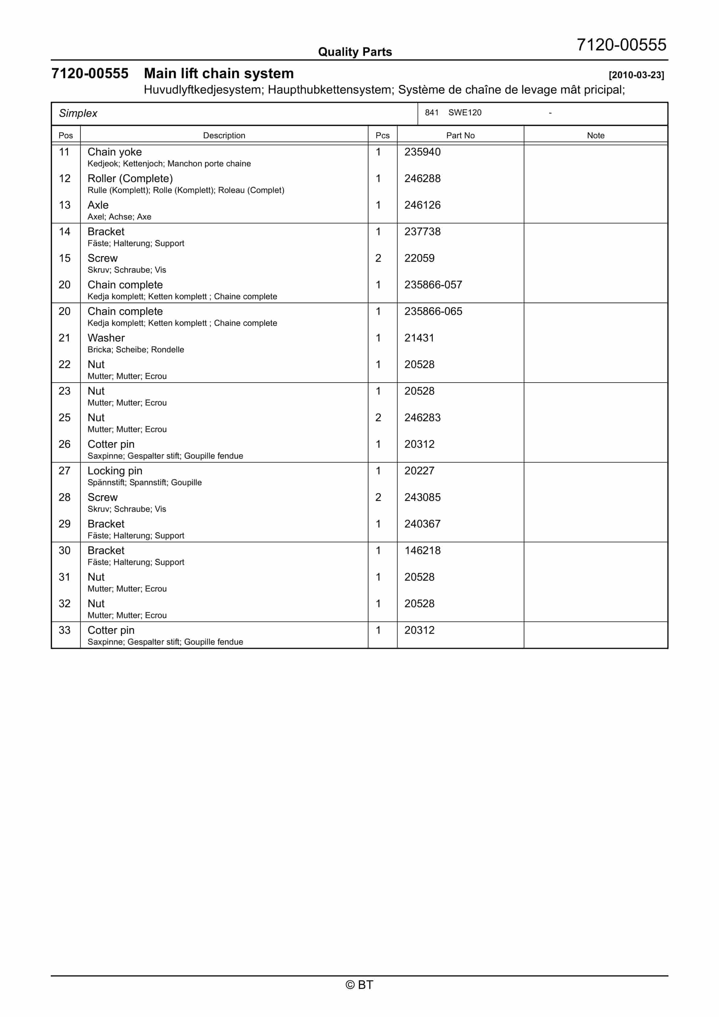 BT SWE120 Quality Parts 7519192