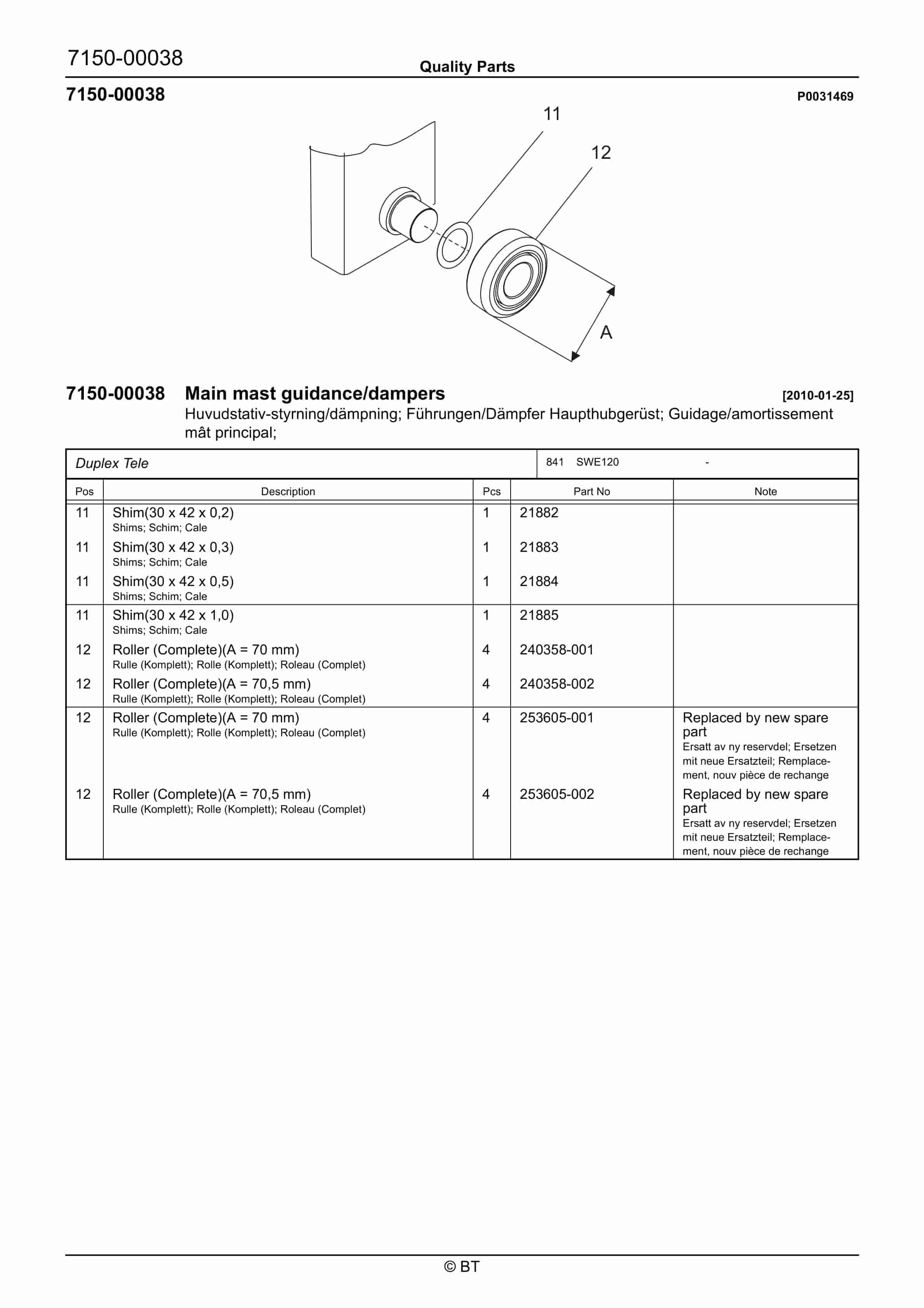 BT 602-TT, 608-TT, 609-TT, 610-TT, 612-TT, 620-TT (AC) Quality Parts 253711