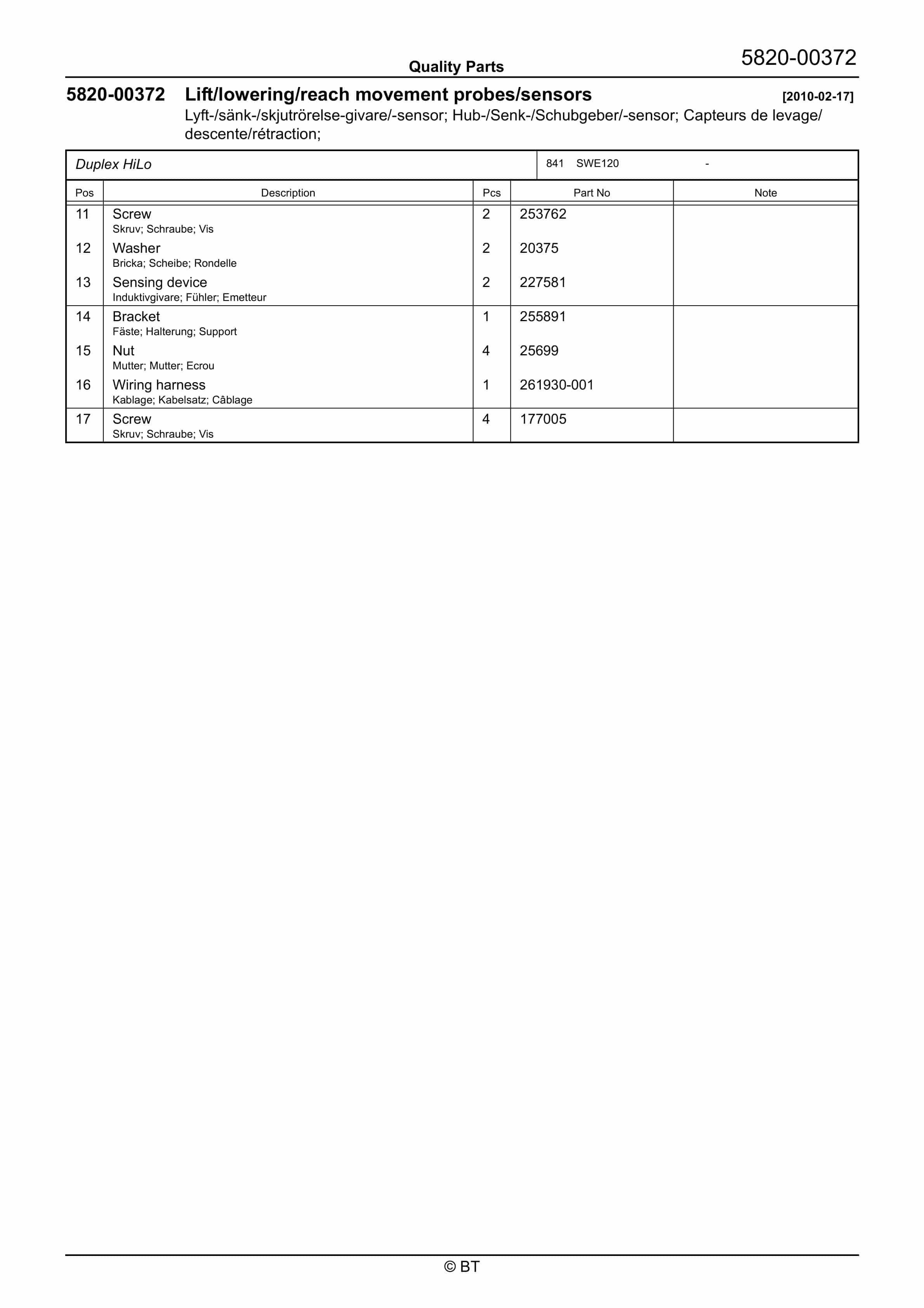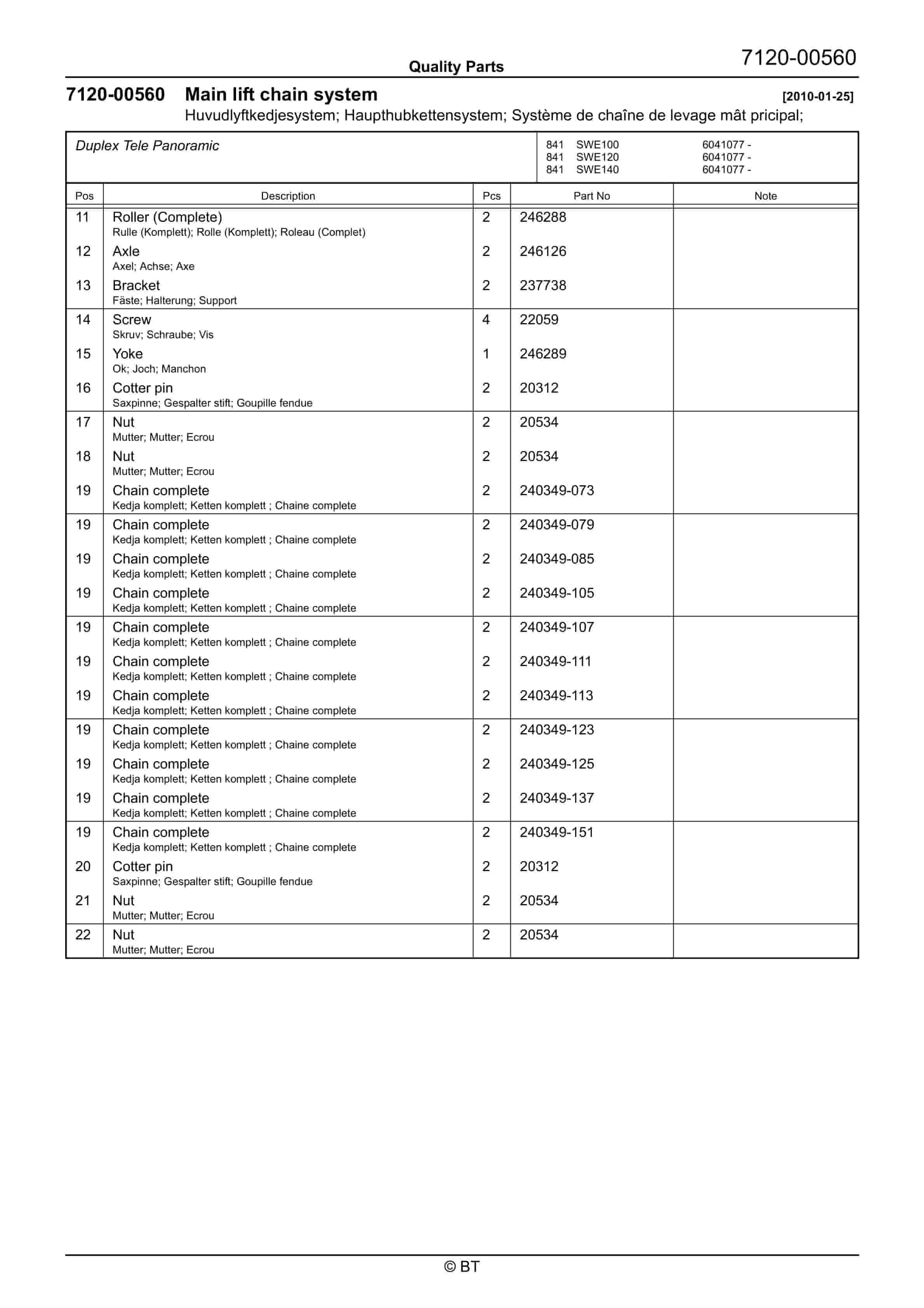BT 602-TT, 608-TT, 609-TT, 610-TT, 612-TT, 620-TT Quality Parts 7501655