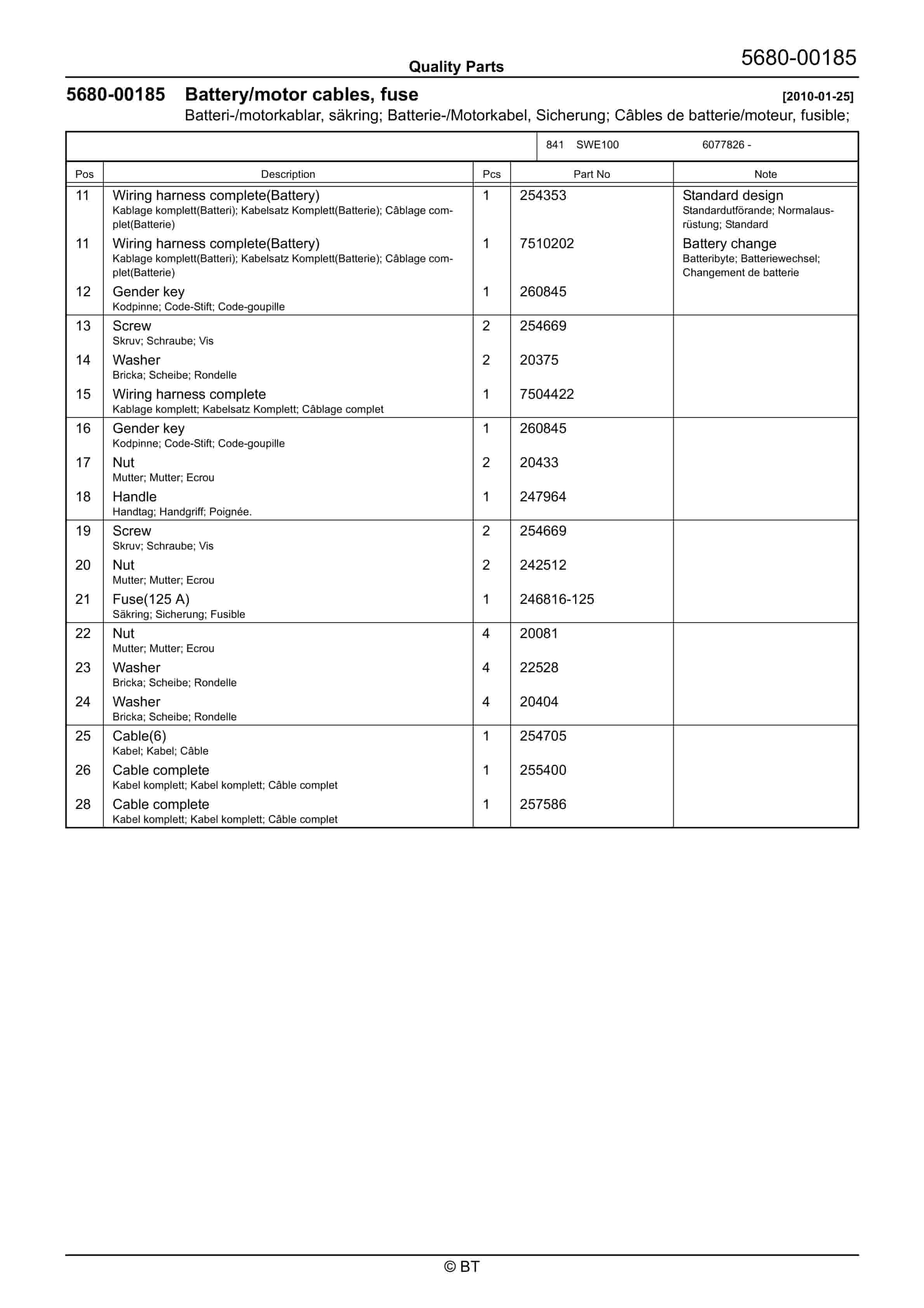 BT Parts Manual PDF