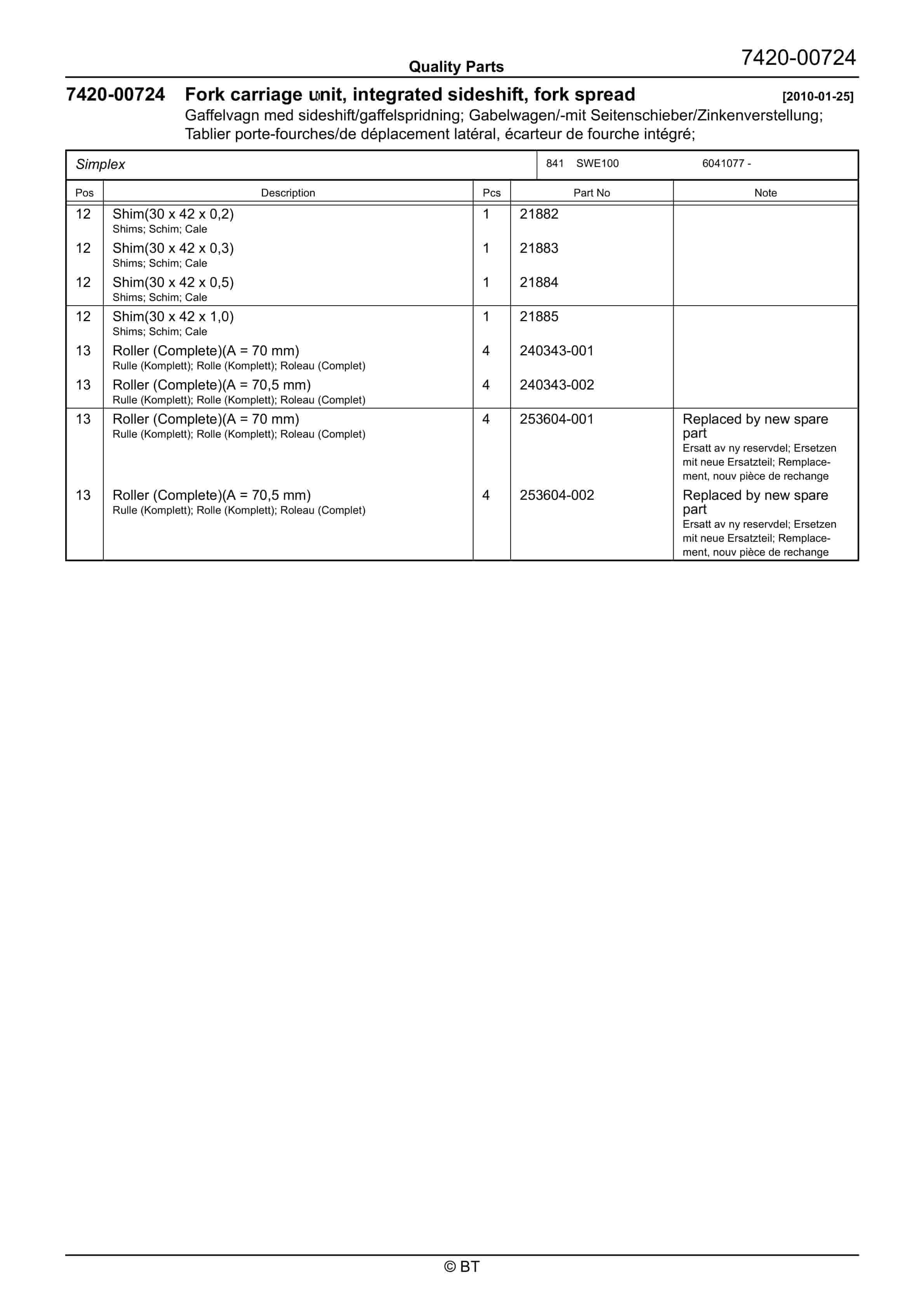- 71. Fork/support arm wheels 2010-01-25