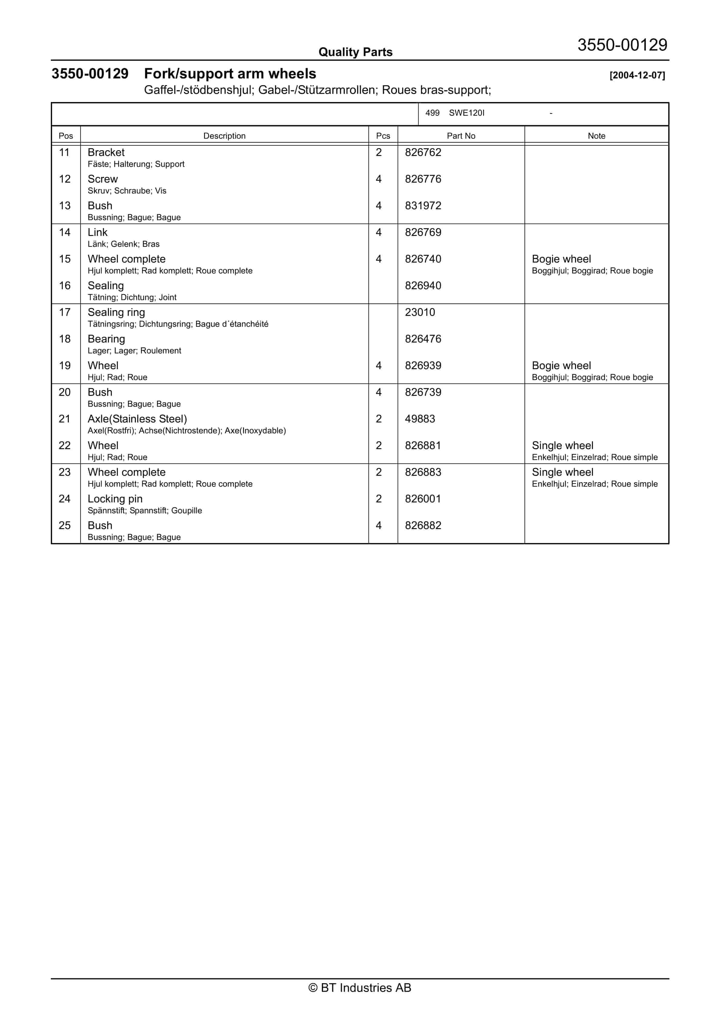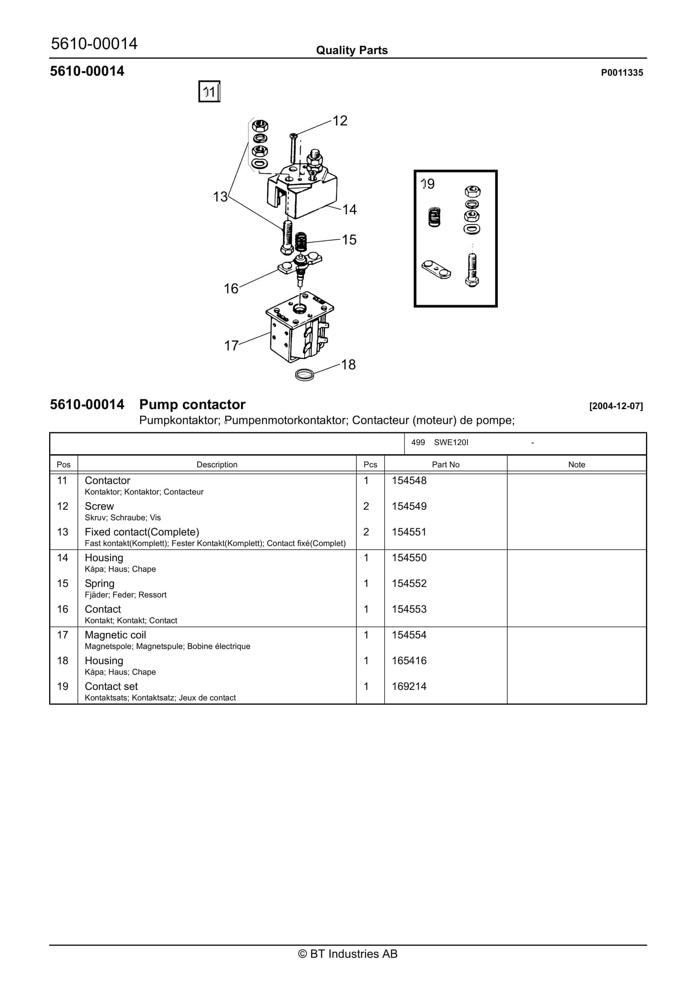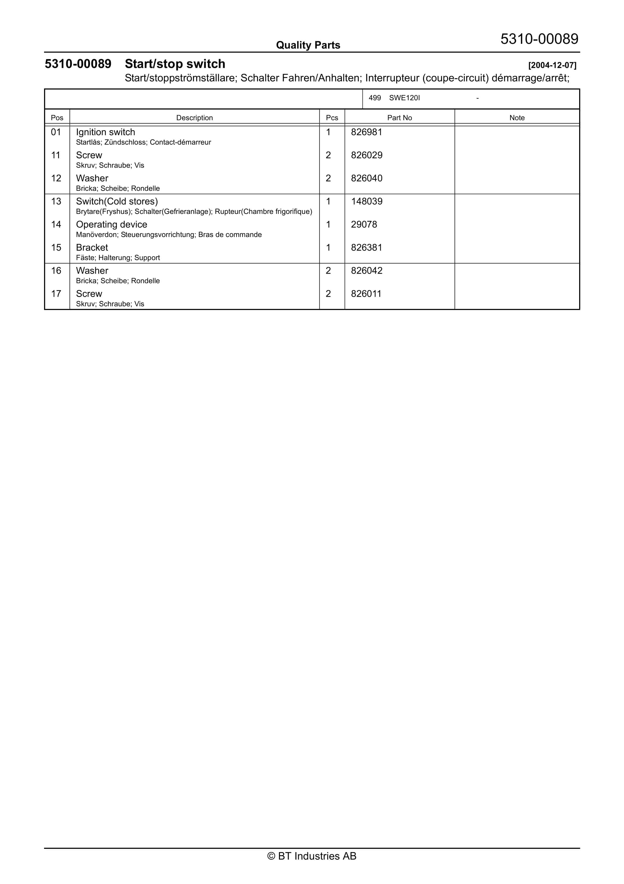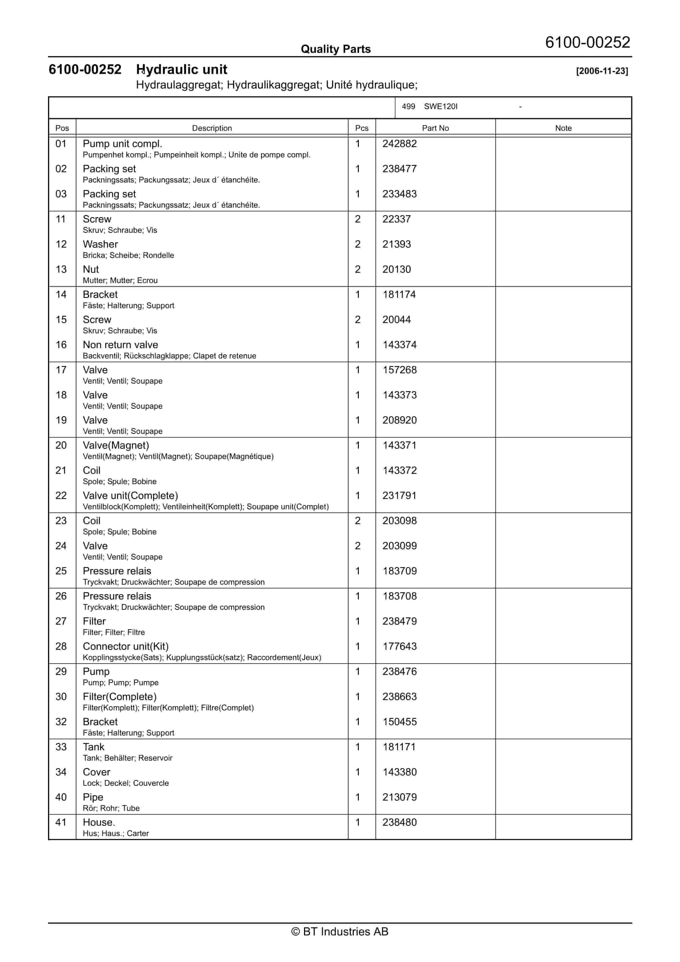 BT 602-TT, 608-TT, 609-TT, 610-TT, 612-TT, 620-TT (AC) Quality Parts 253711