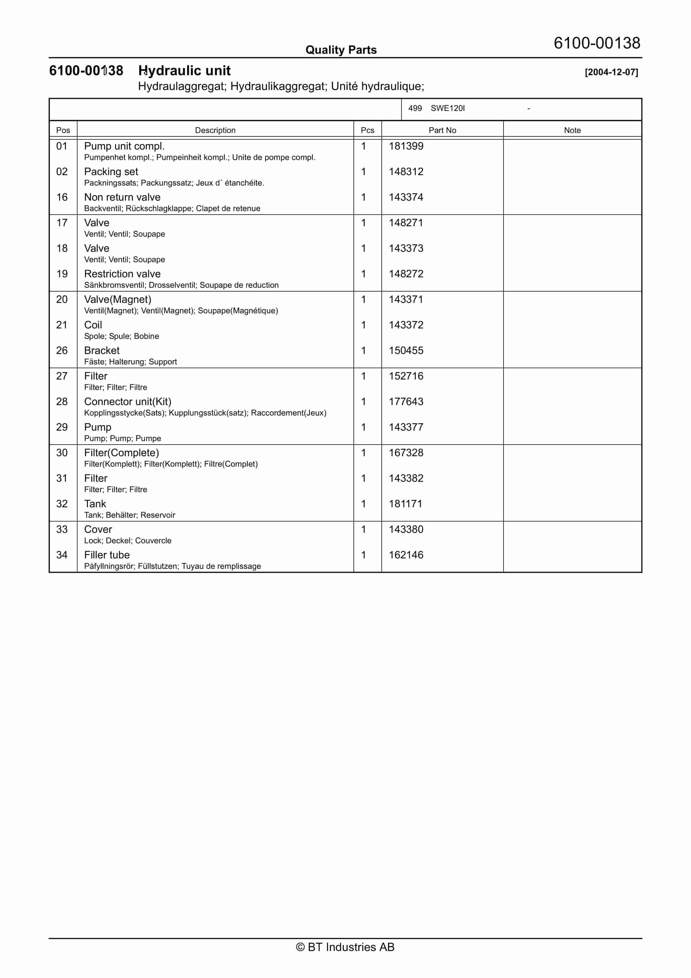 Category: BT Parts Manual PDF