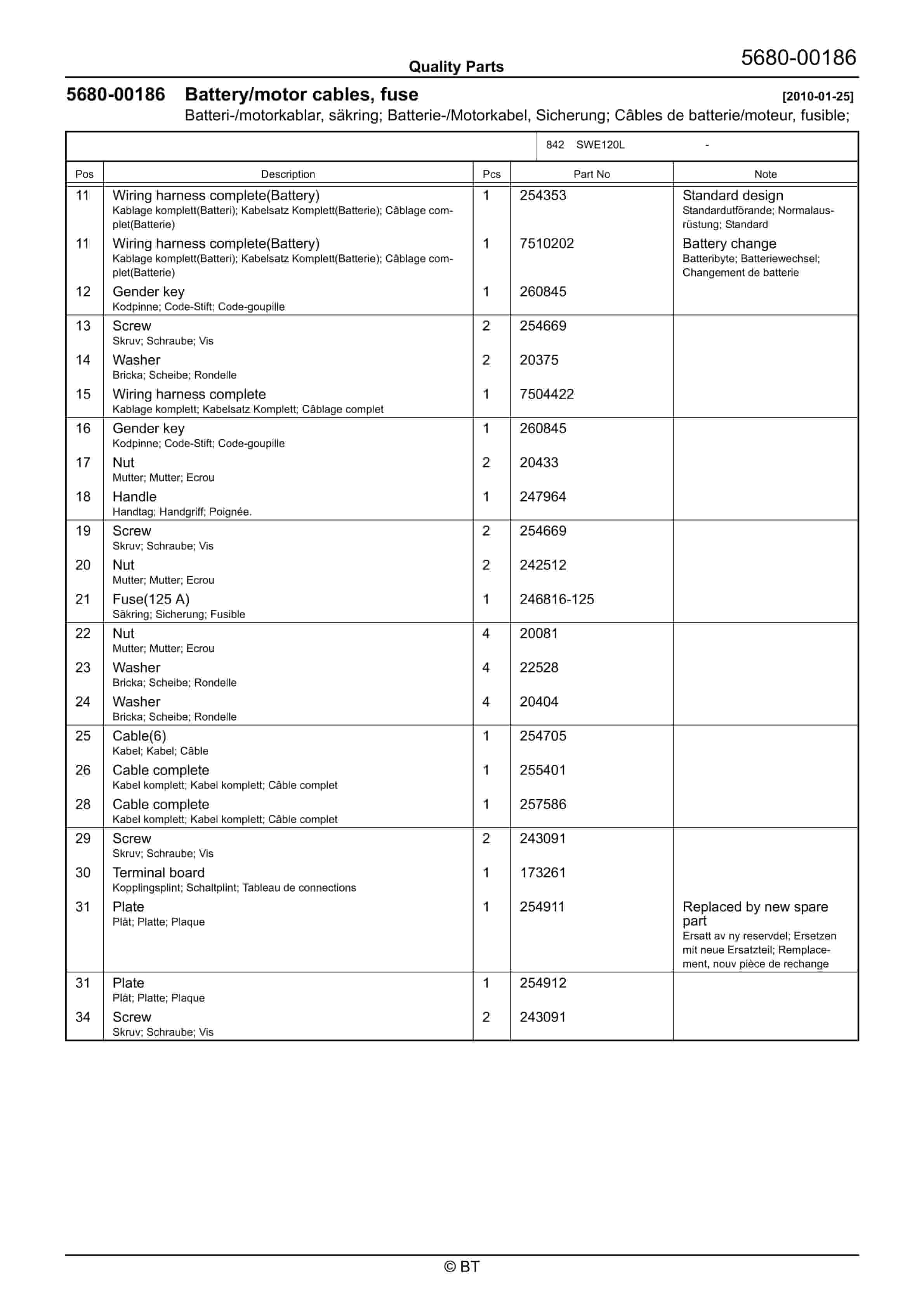 BT SWE120L Quality Parts 7518014