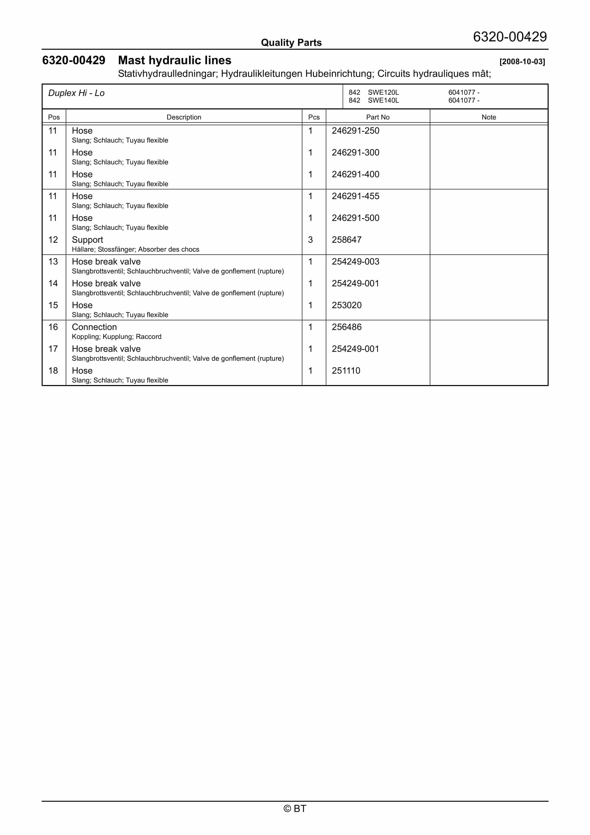 BT 602-TT, 608-TT, 609-TT, 610-TT, 612-TT, 620-TT (AC) Quality Parts 253711