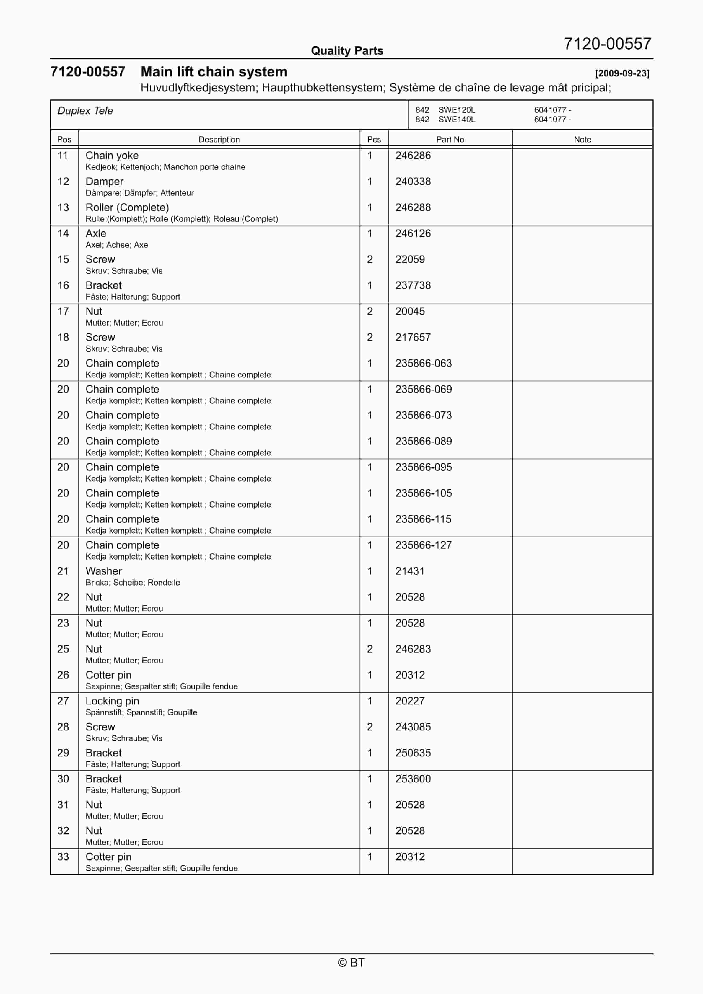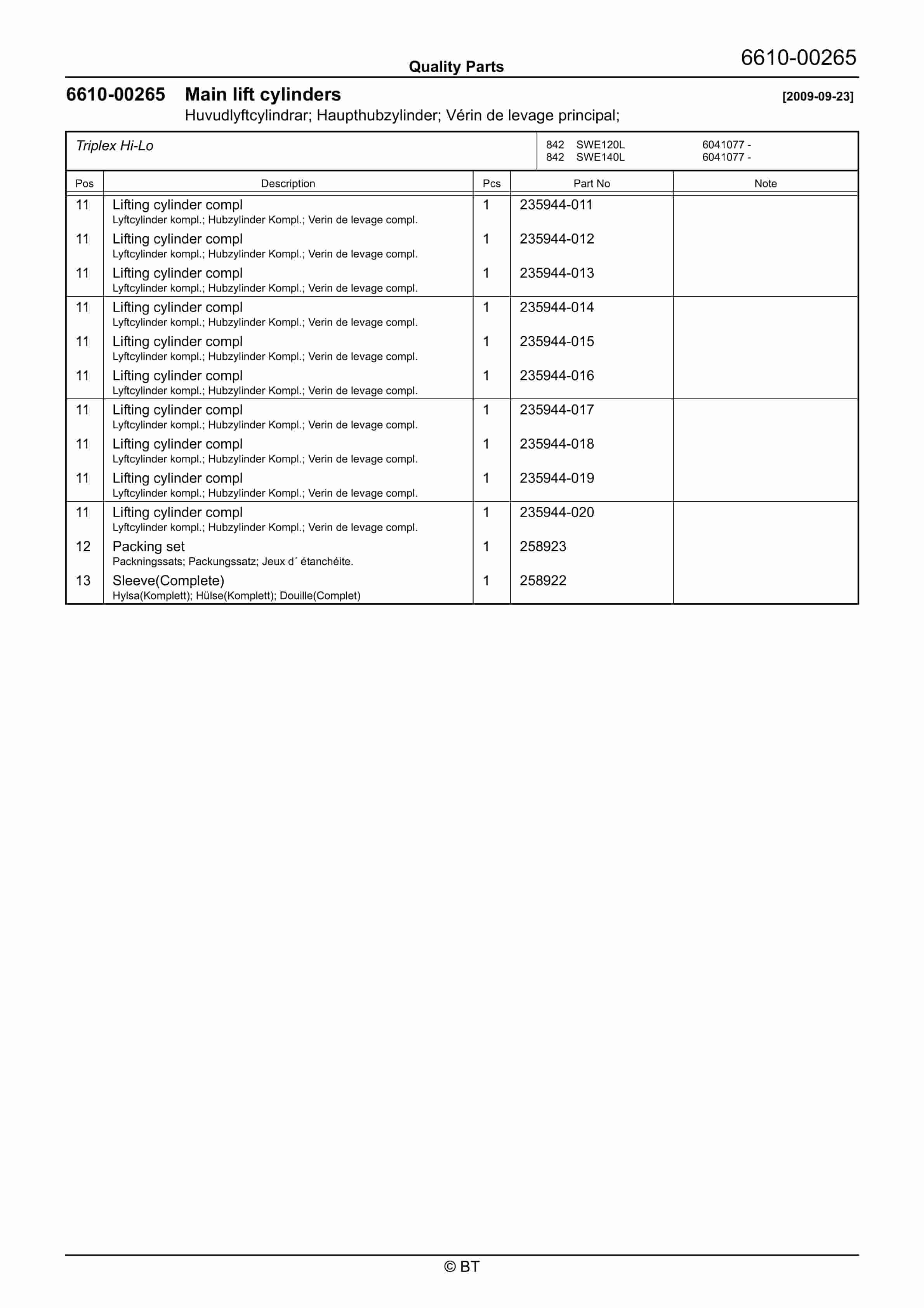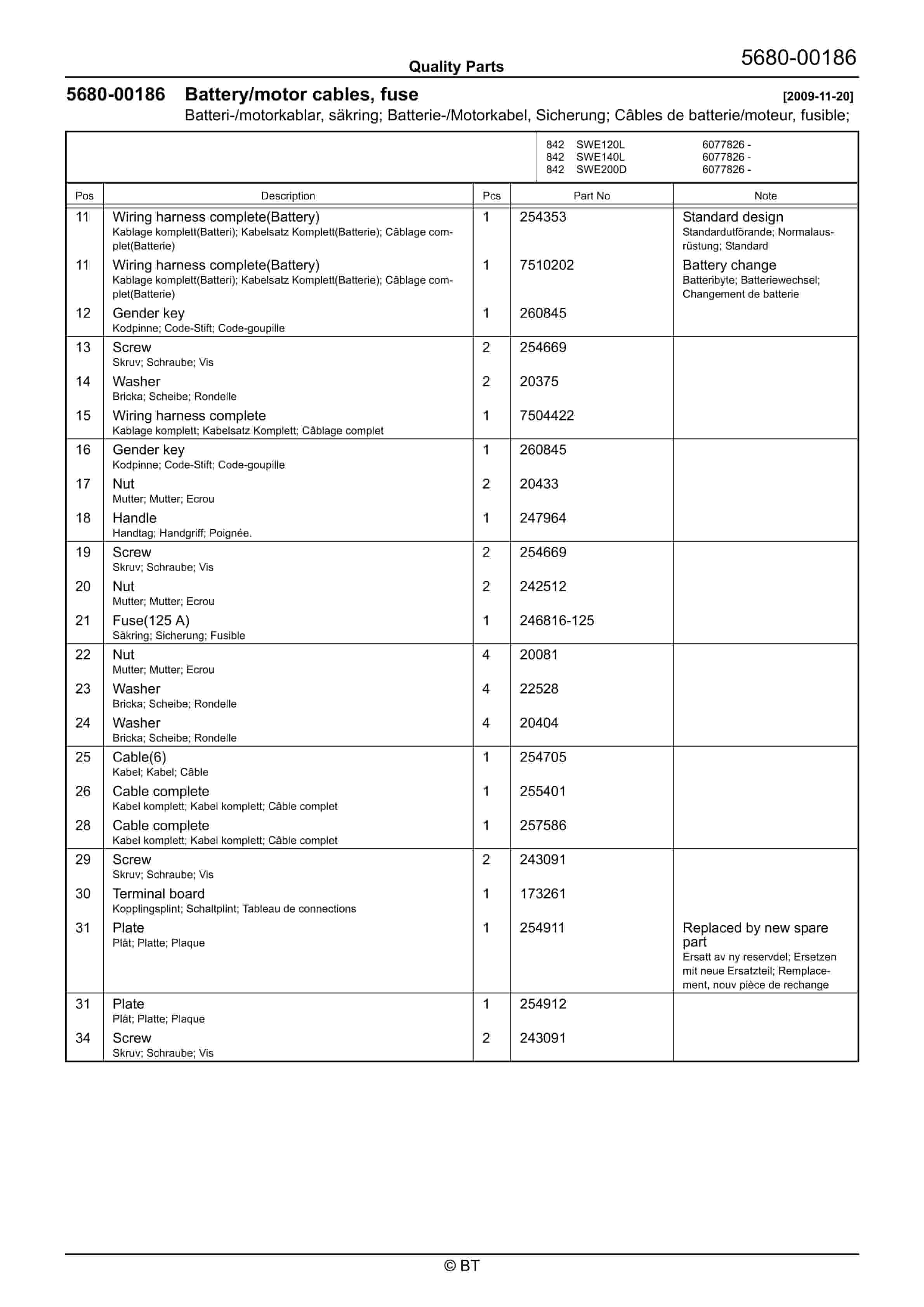 BT SWE120L, SWE140L, SWE200D Quality Parts 7513639