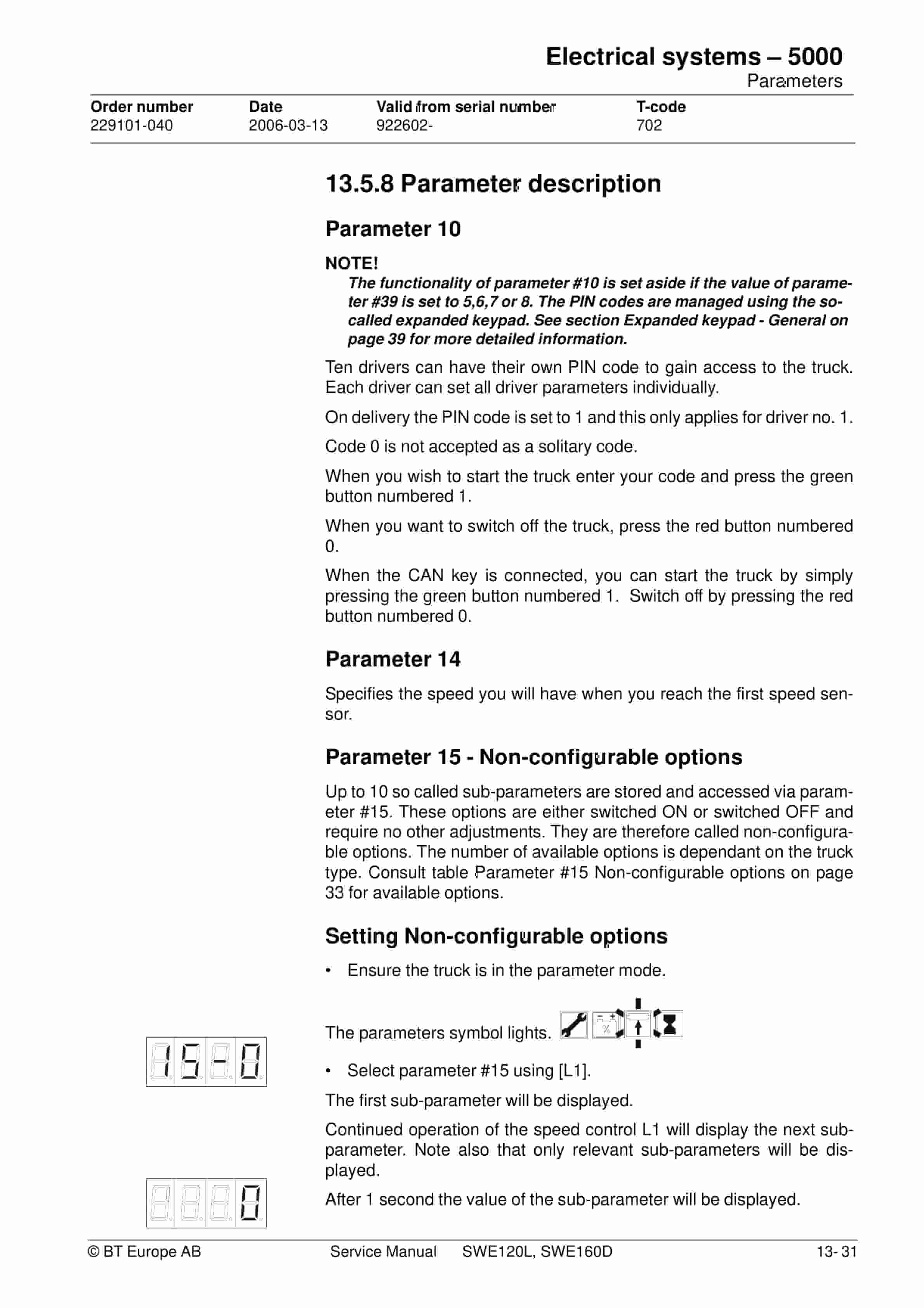 BT HL10 STD, HL10 I, HL10 X, HLE10 STD, HLE10 I, HLE10 X Operator And Service Manual 214438-003