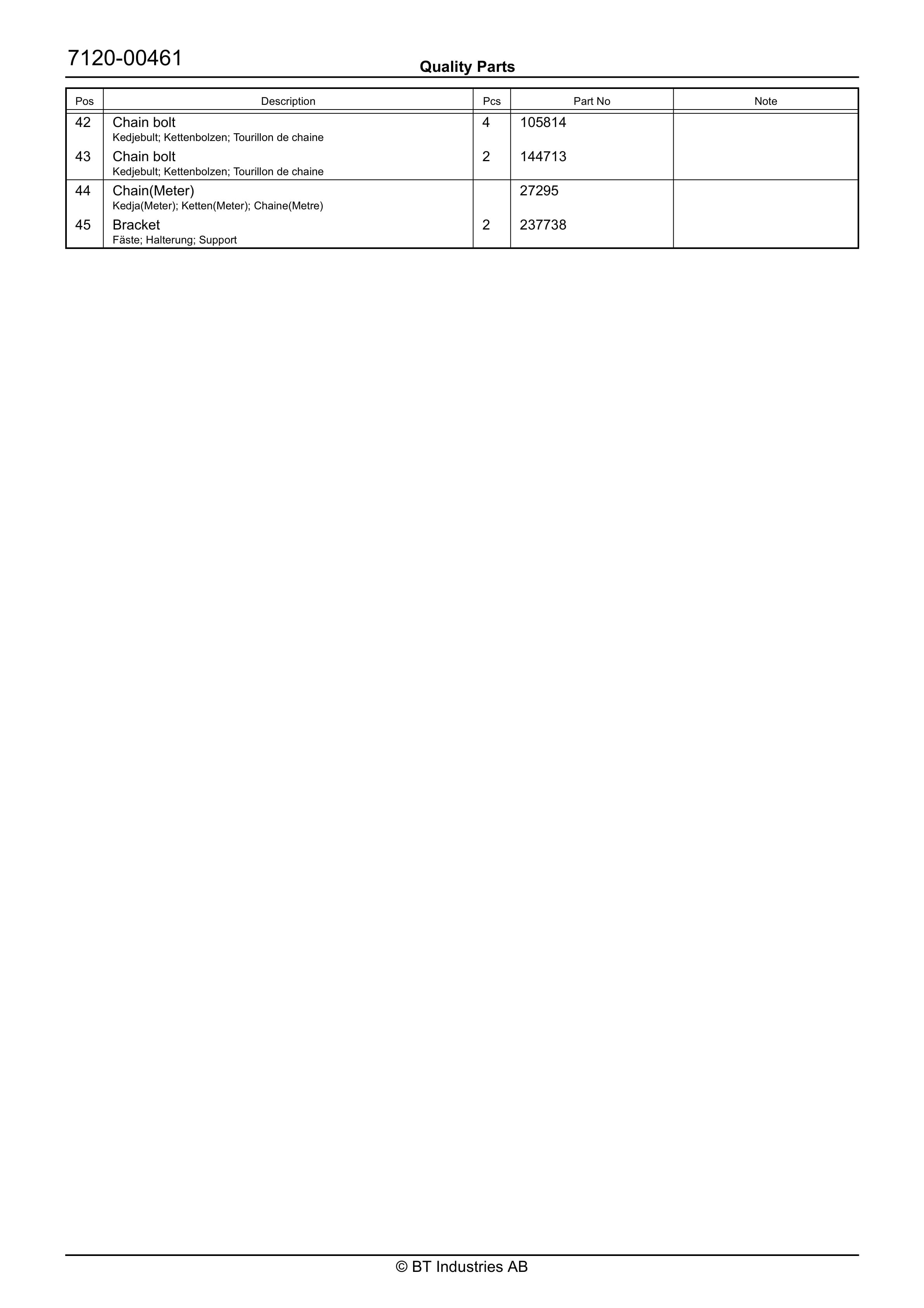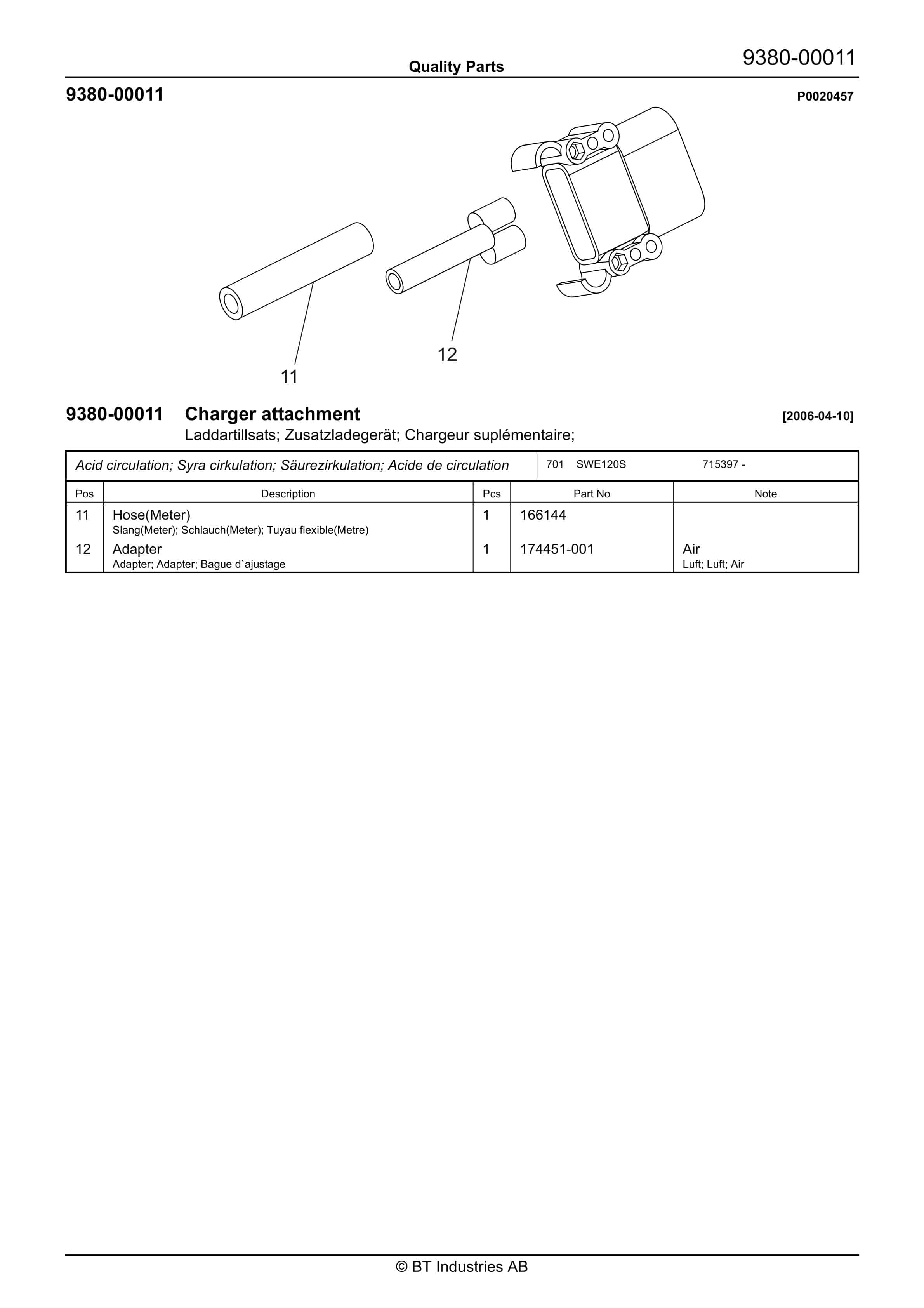 BT 602-TT, 608-TT, 609-TT, 610-TT, 612-TT, 620-TT (AC) Quality Parts 253711