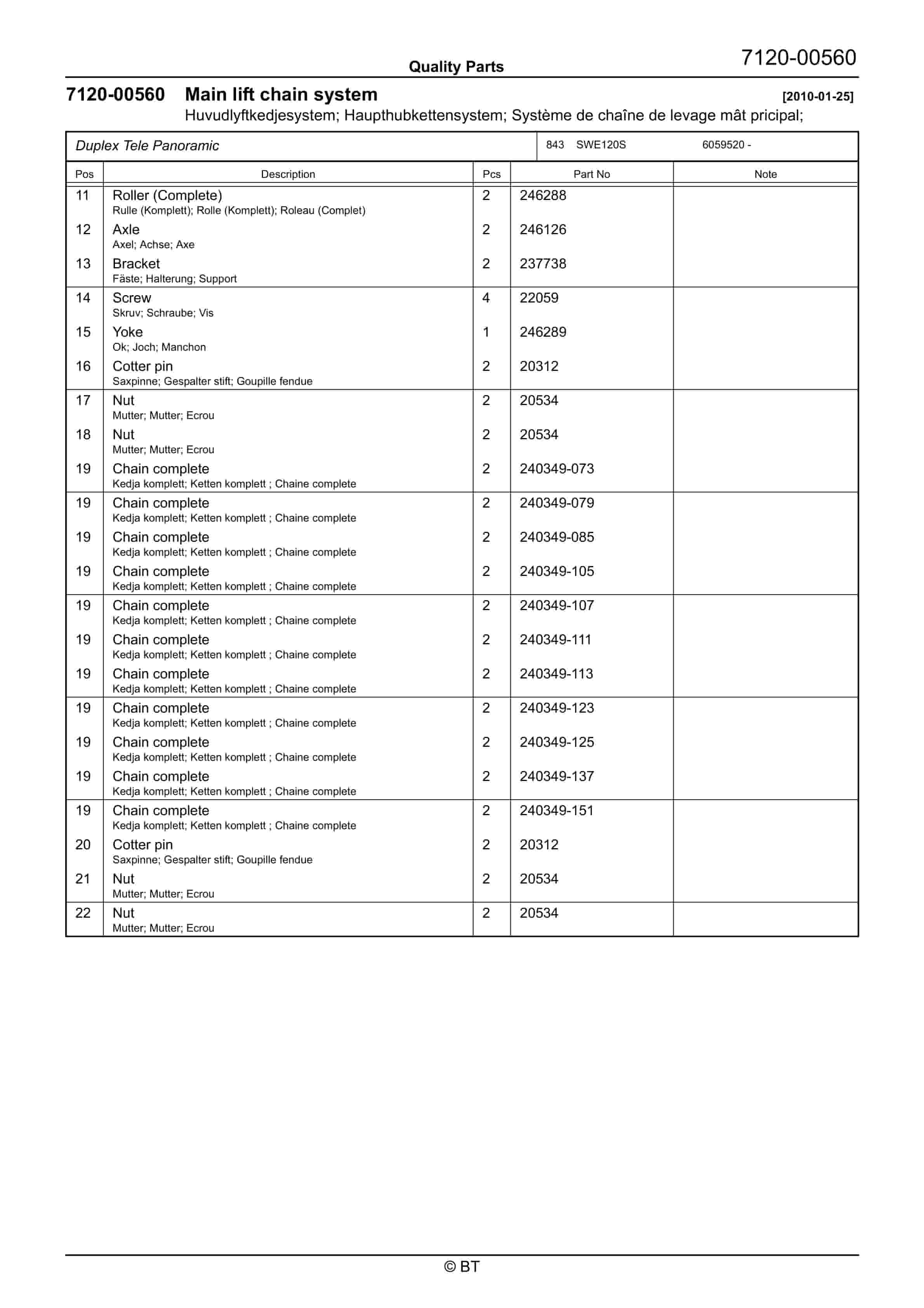 BT 602-TT, 608-TT, 609-TT, 610-TT, 612-TT, 620-TT (AC) Quality Parts 253711