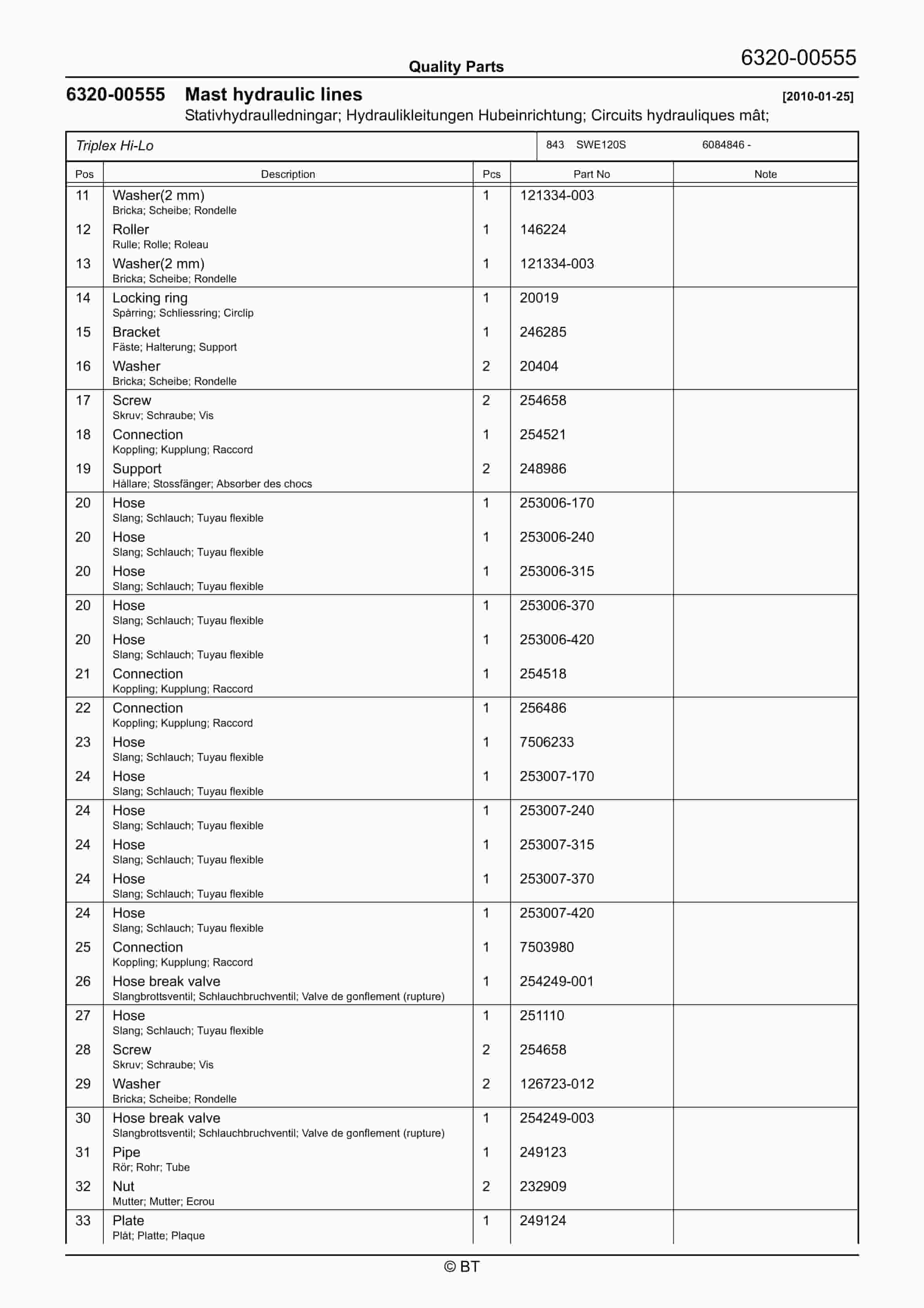 BT 602-TT, 608-TT, 609-TT, 610-TT, 612-TT, 620-TT (AC) Quality Parts 253711