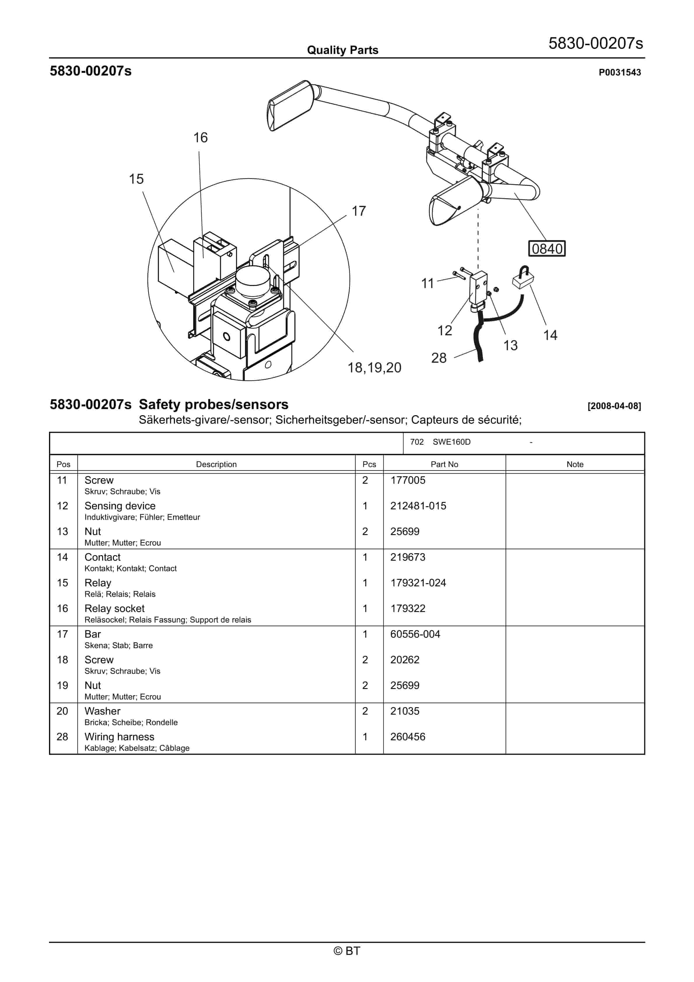 BT 600-TT, 602-TT, 604-TT, 608-TT, 609-TT, 610-TT, 612-TT, 620-TT Quality Parts 208538