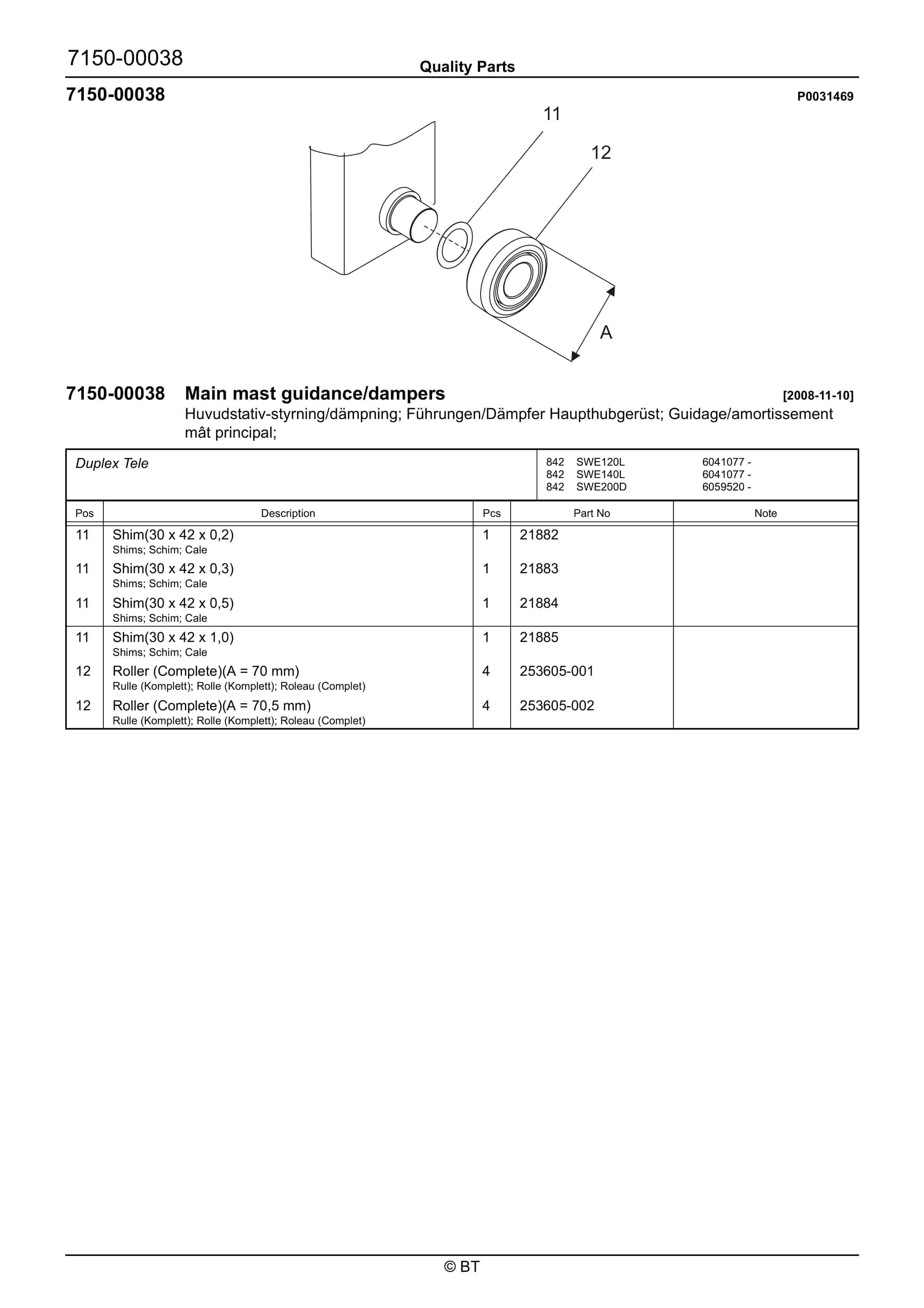BT 602-TT, 608-TT, 609-TT, 610-TT, 612-TT, 620-TT (AC) Quality Parts 253711