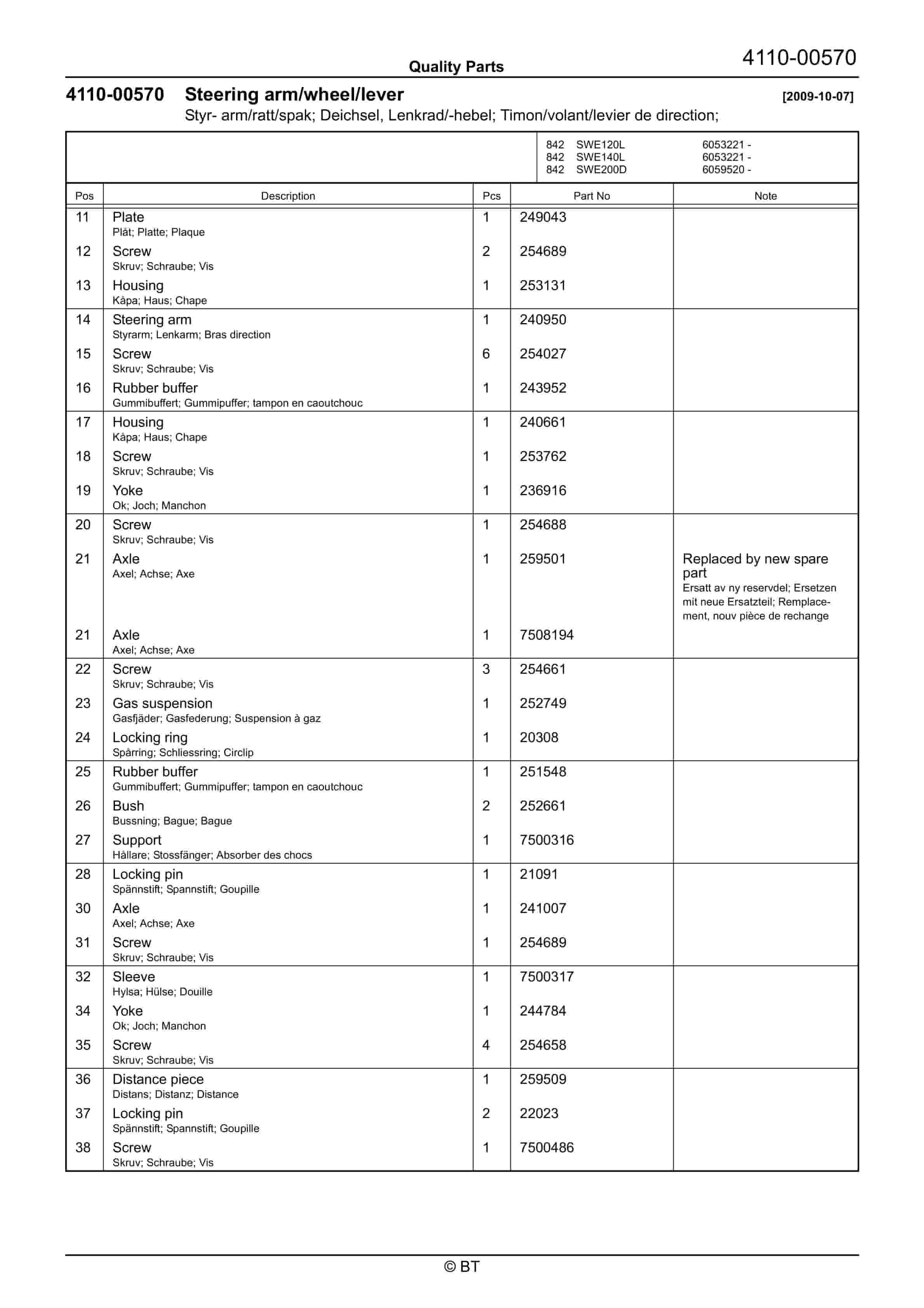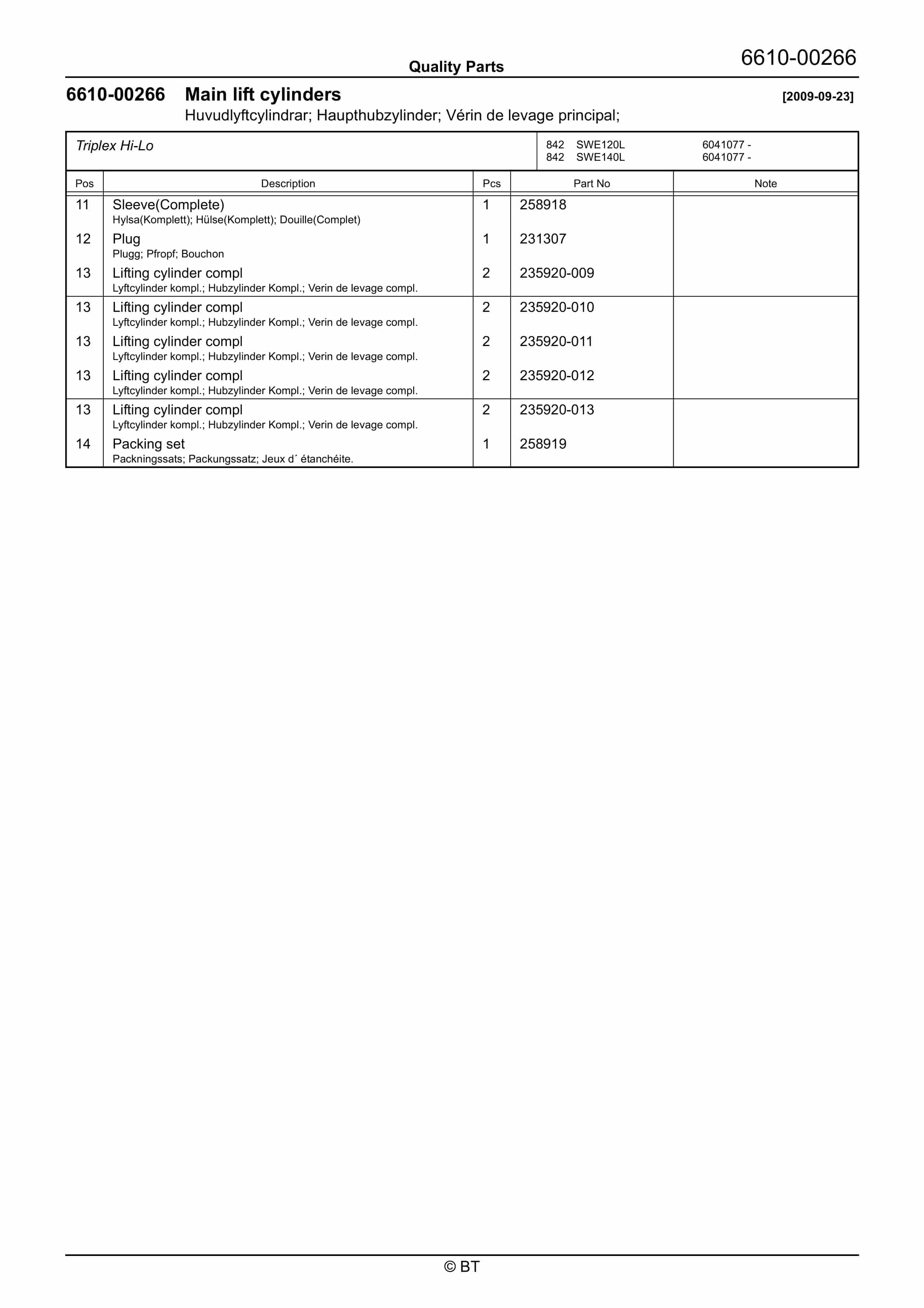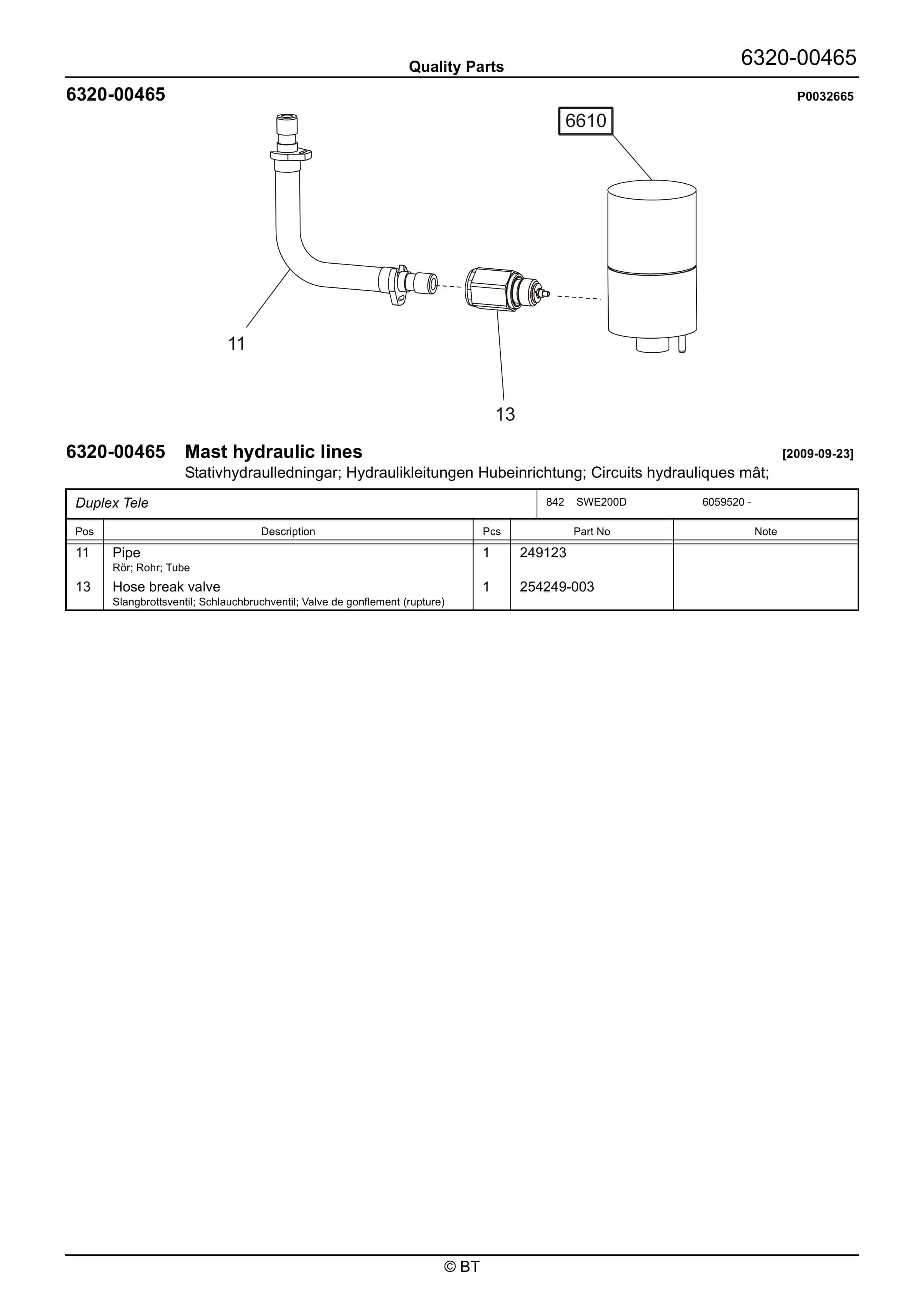 BT 600-TT, 602-TT, 604-TT, 608-TT, 609-TT, 610-TT, 612-TT, 620-TT Quality Parts 208538