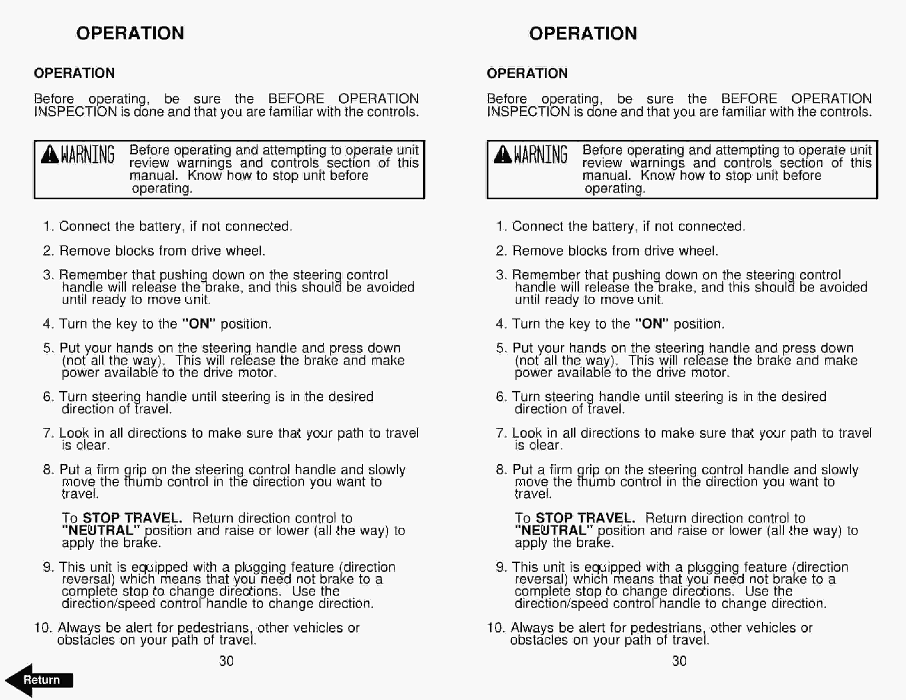BT HT80W Warehouser Electric Low Lift Truck Operator Manual 300689-000