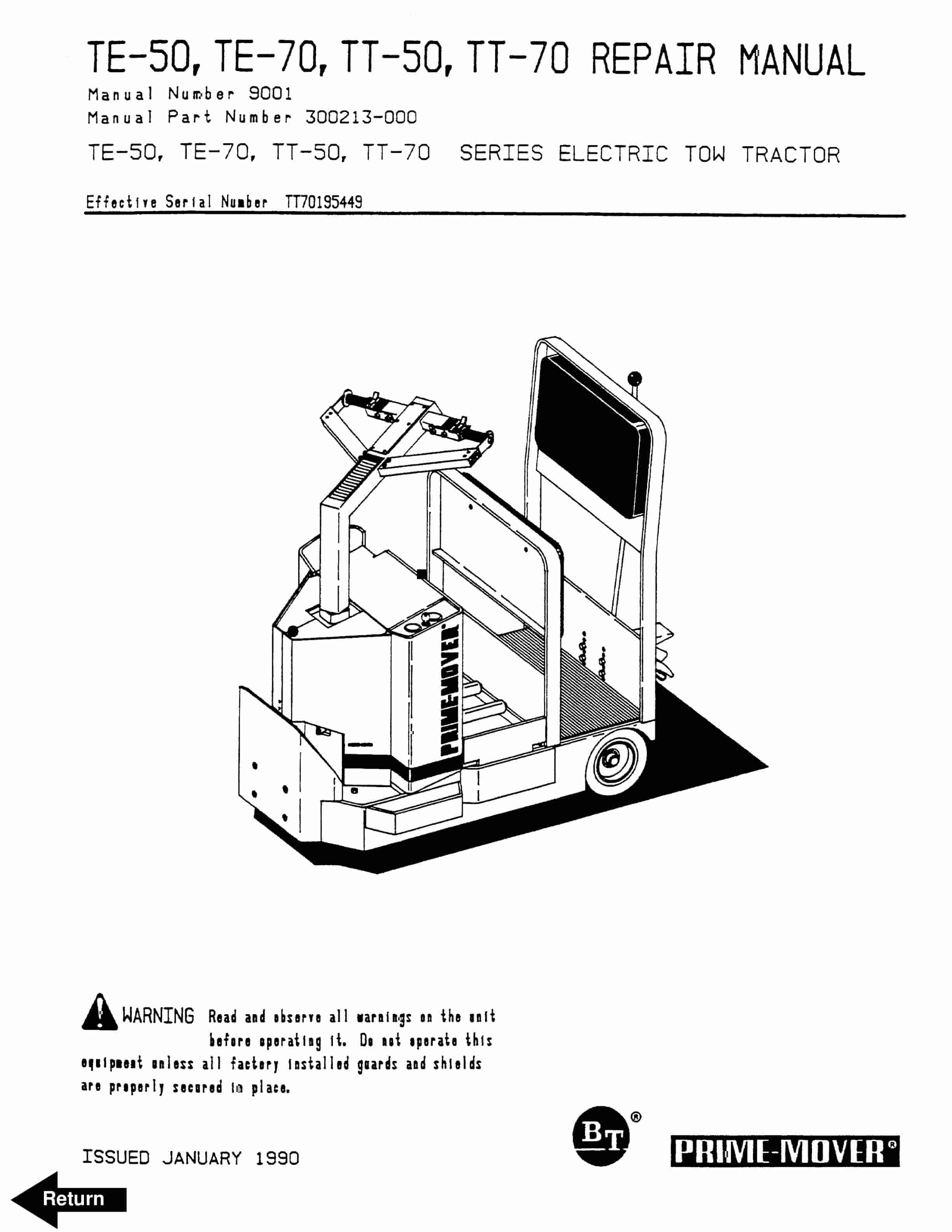 BT TE-50, TE-70, TT-50, TT-70 Electric Tow Tractor Repair Manual 300213-000