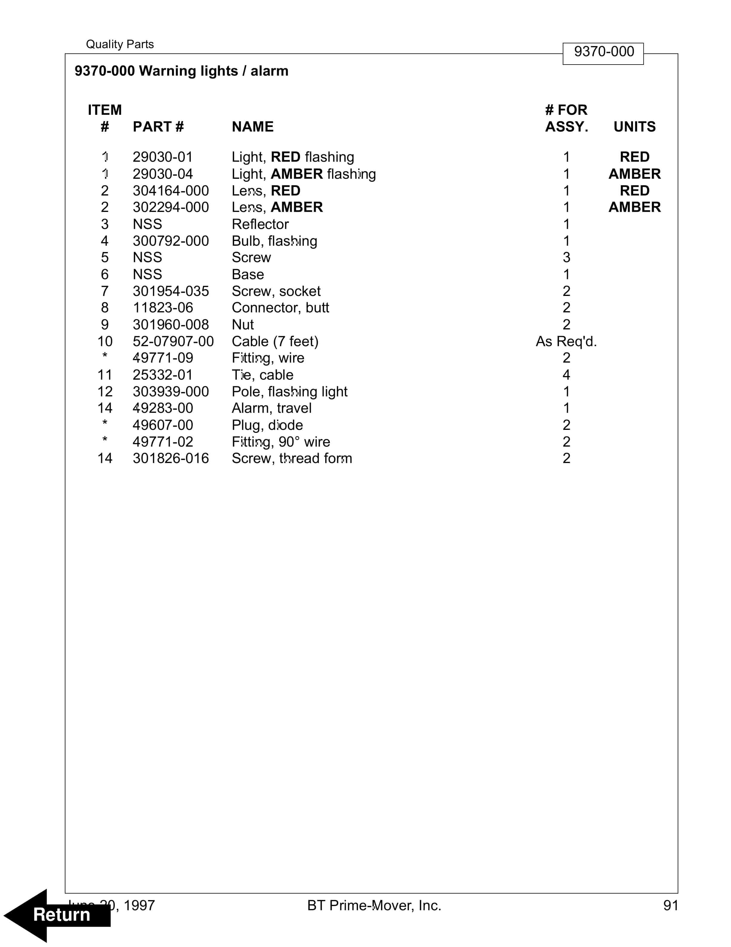 BT BTL20EW, BTL20EWO, BTL30EW, BTL30EWO, L20BR, L20BRO, L30BR, L30BRO Quality Parts 177967