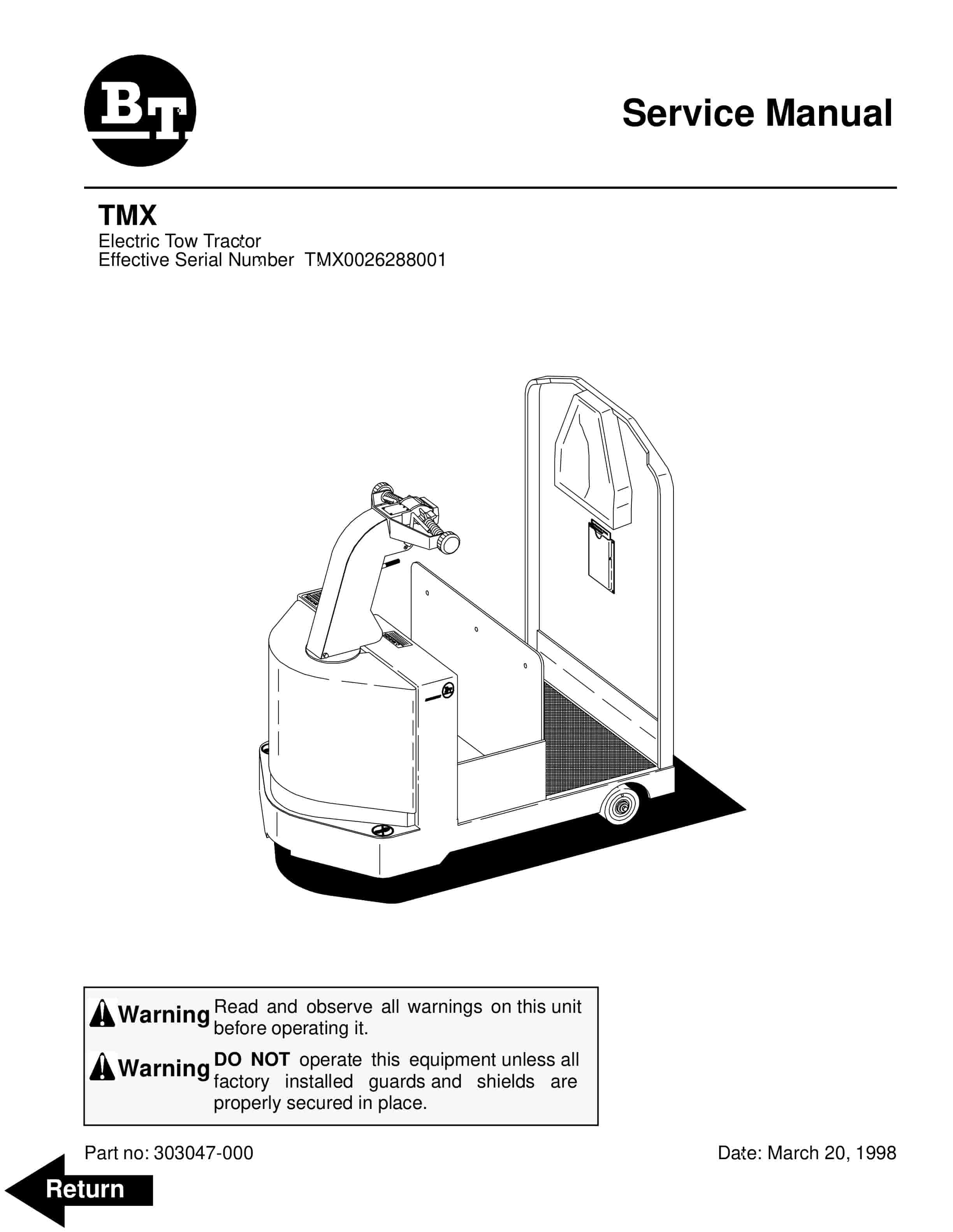 BT TMX Electric Tow Tractor Service Manual 303047-000