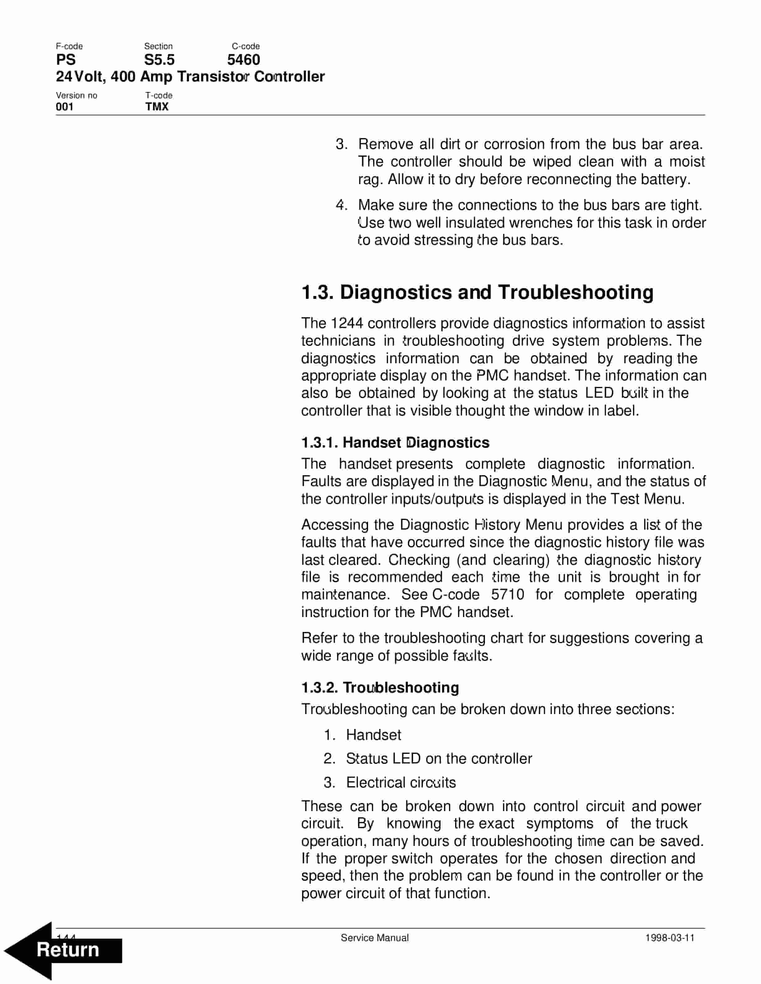 - 35. Volt, 400 Amp Transistor Controller Troubleshooting
