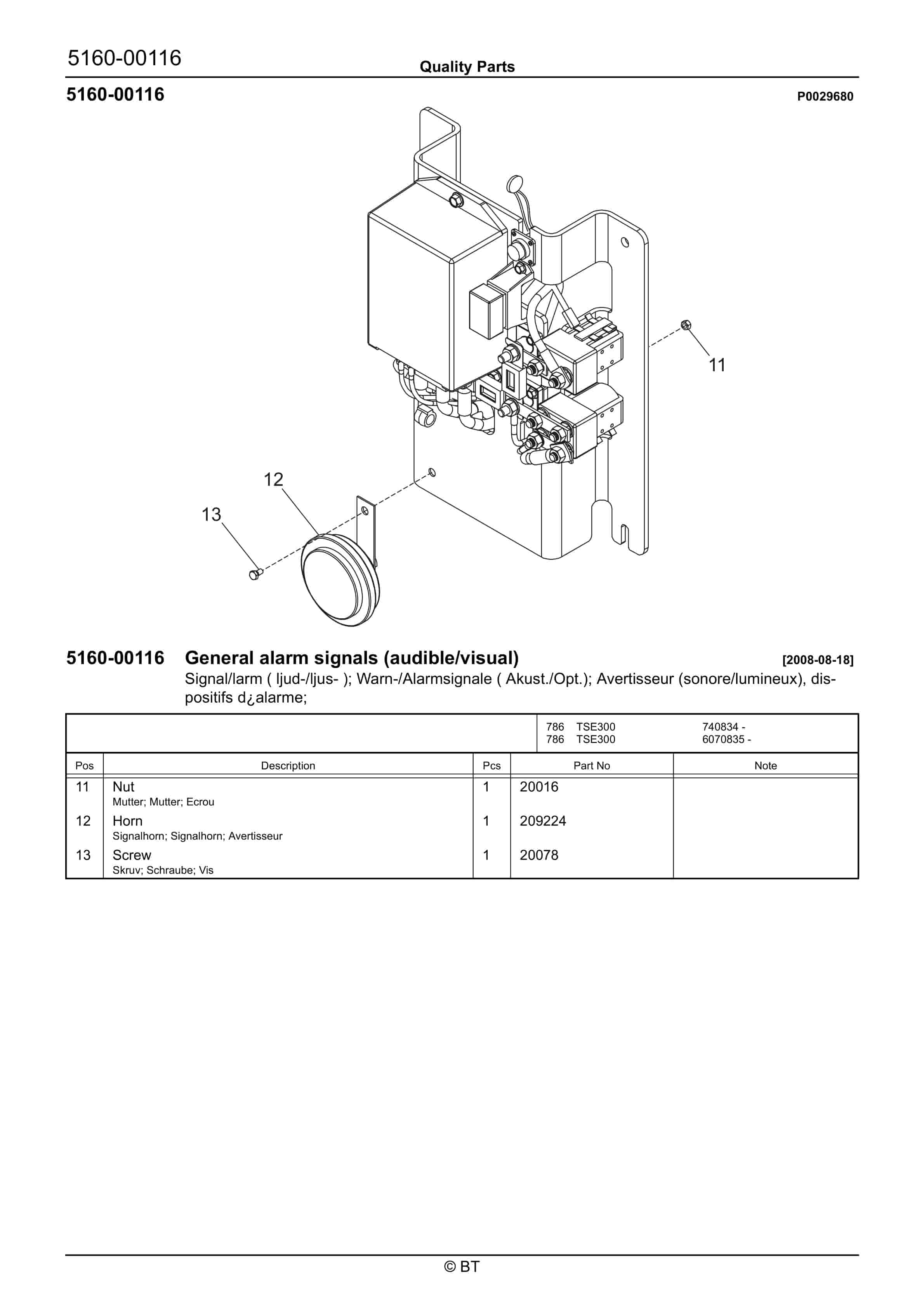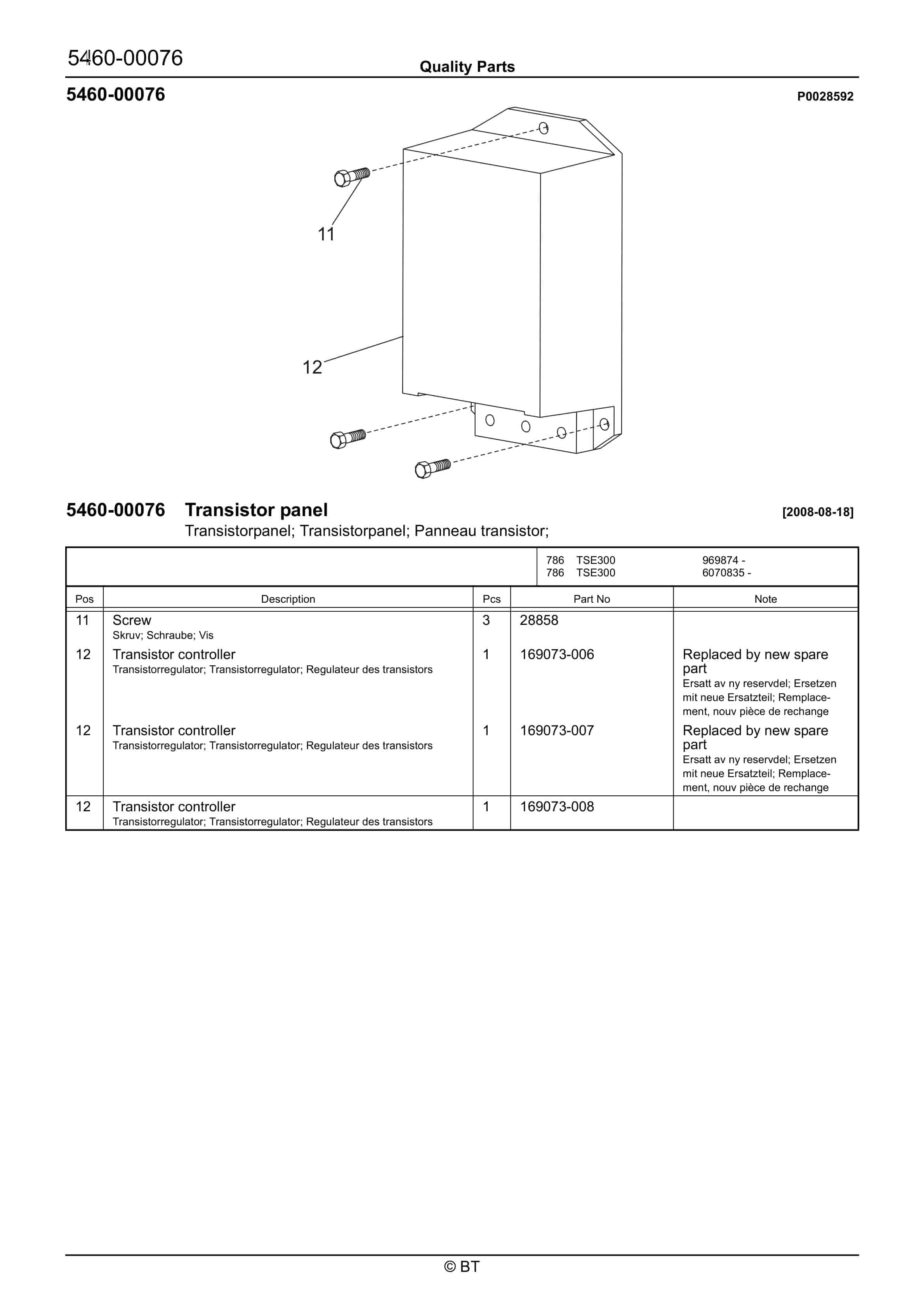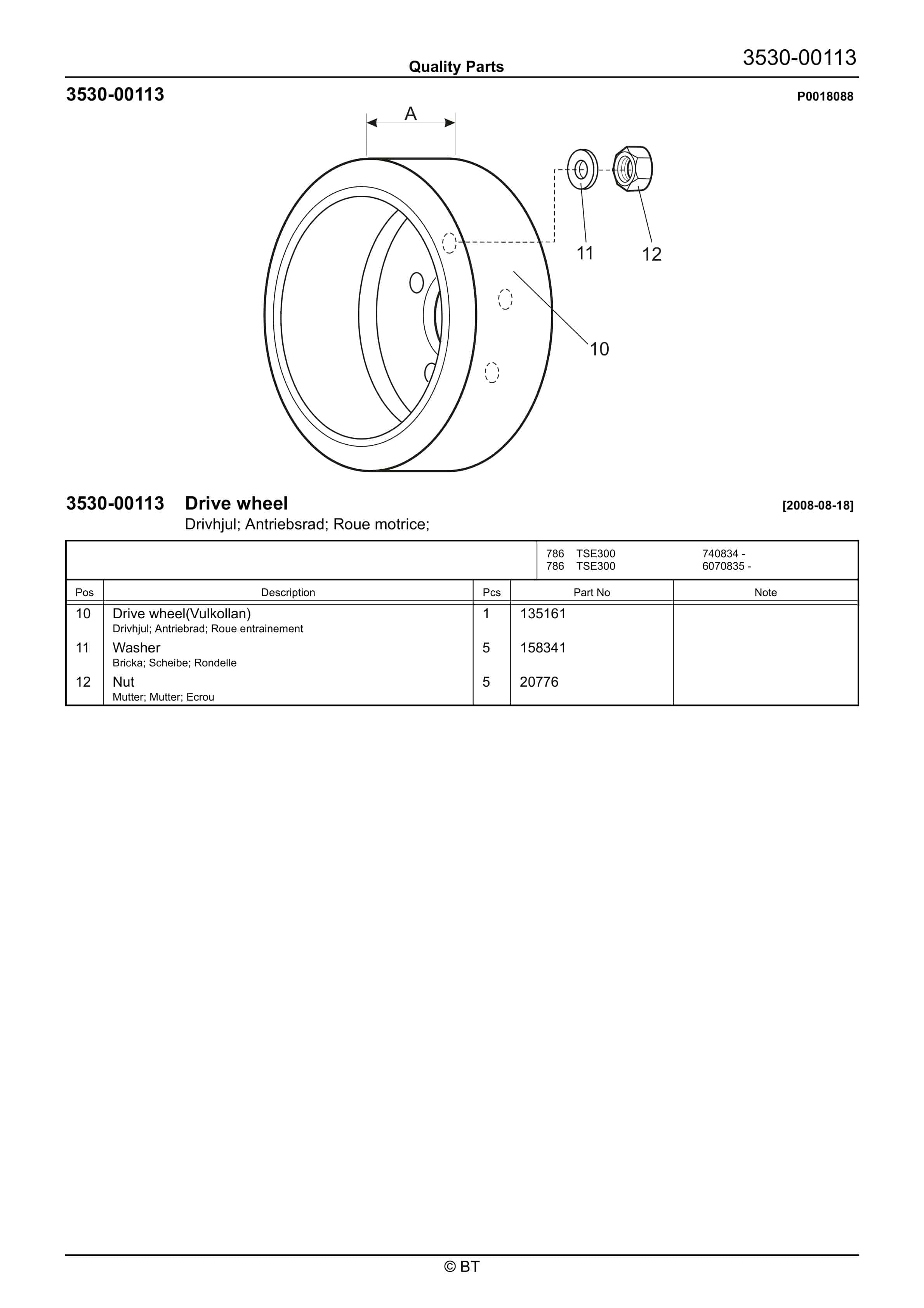 BT 602-TT, 608-TT, 609-TT, 610-TT, 612-TT, 620-TT (AC) Quality Parts 253711