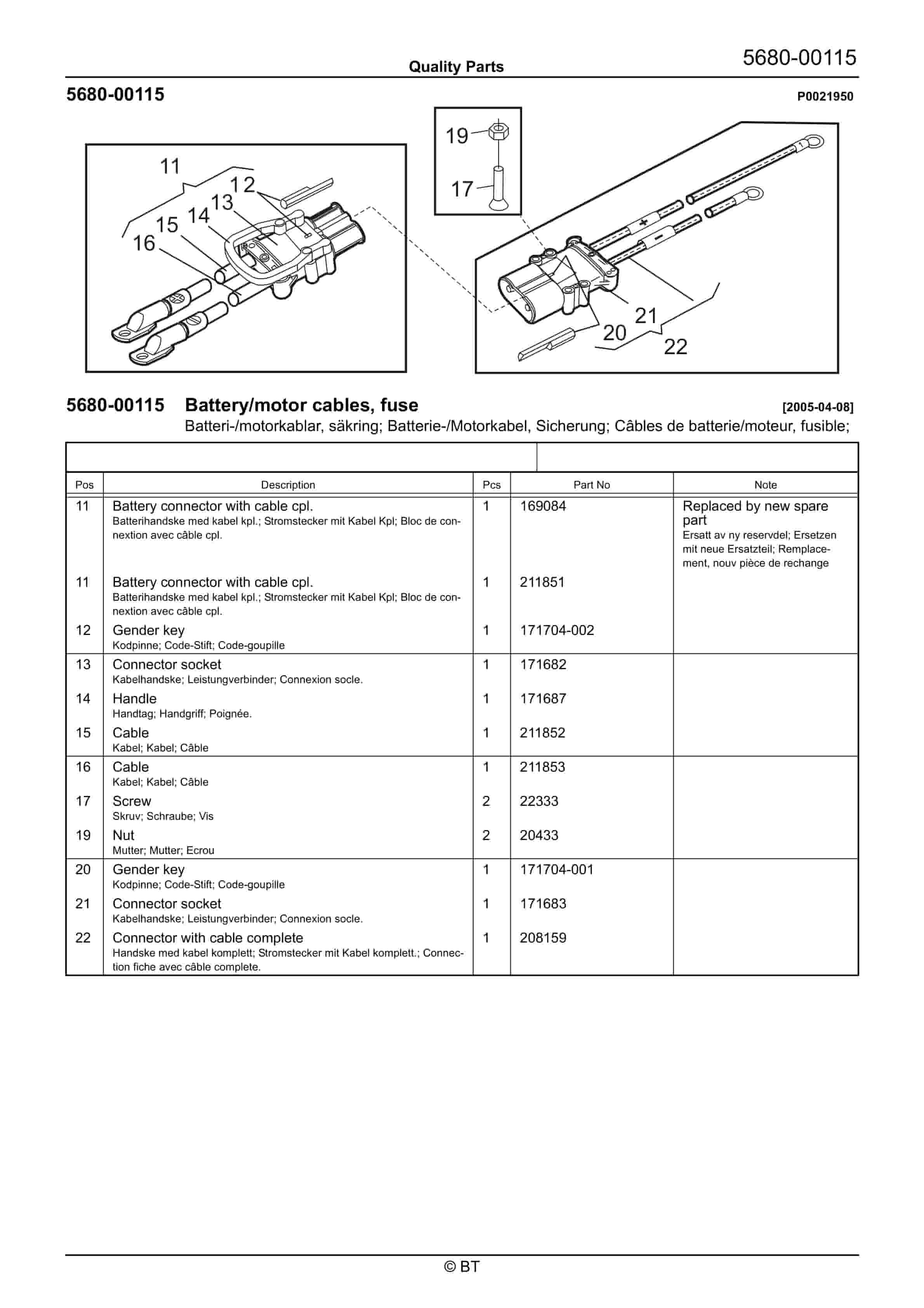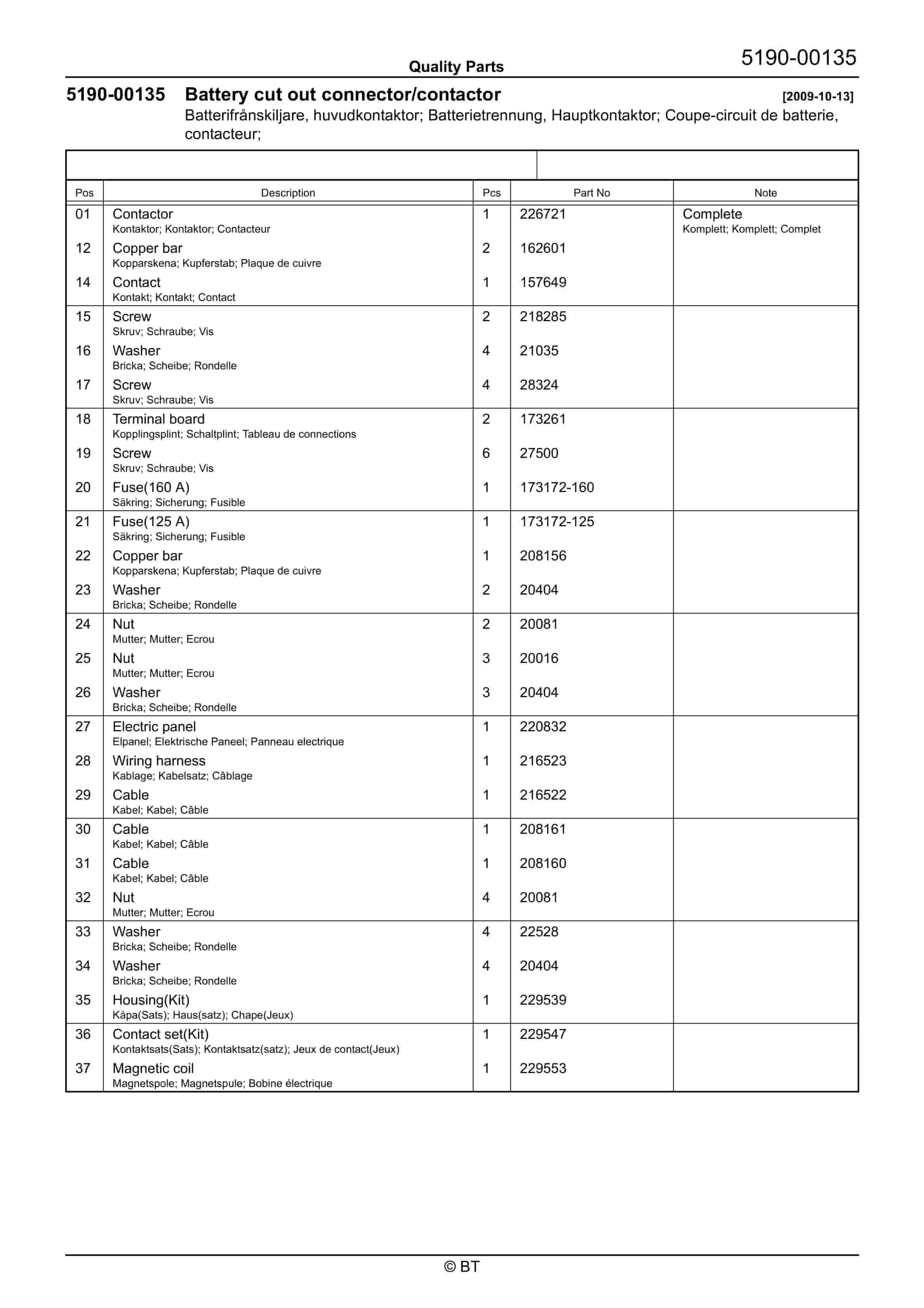 BT BTL20EW, BTL20EWO, BTL30EW, BTL30EWO, L20BR, L20BRO, L30BR, L30BRO Quality Parts 177967