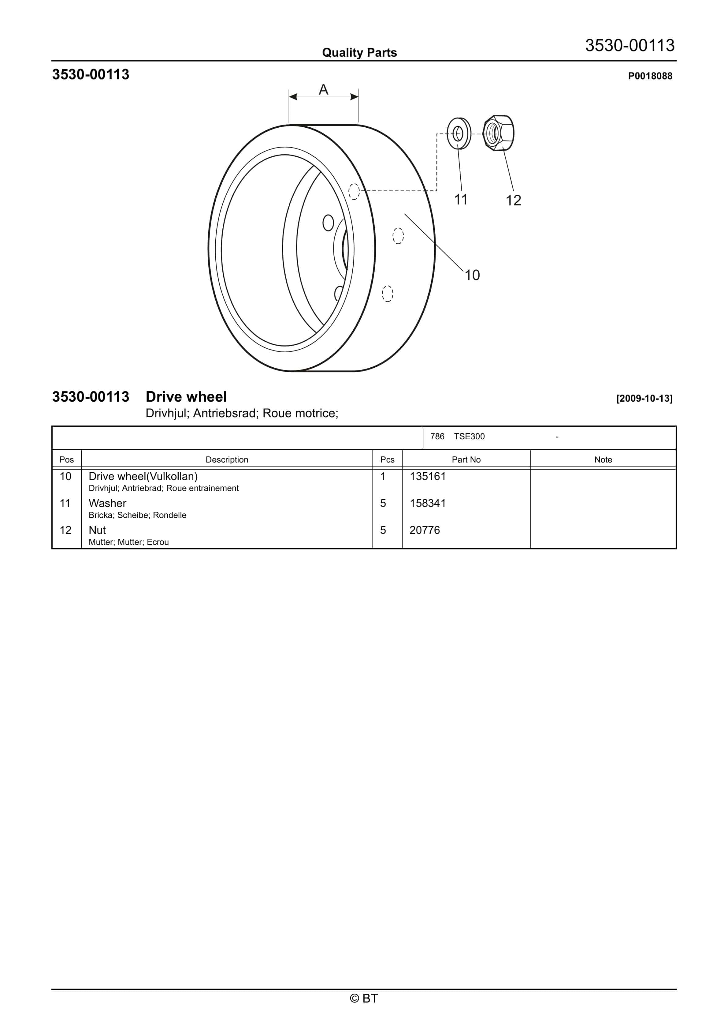 BT 602-TT, 608-TT, 609-TT, 610-TT, 612-TT, 620-TT (AC) Quality Parts 253711
