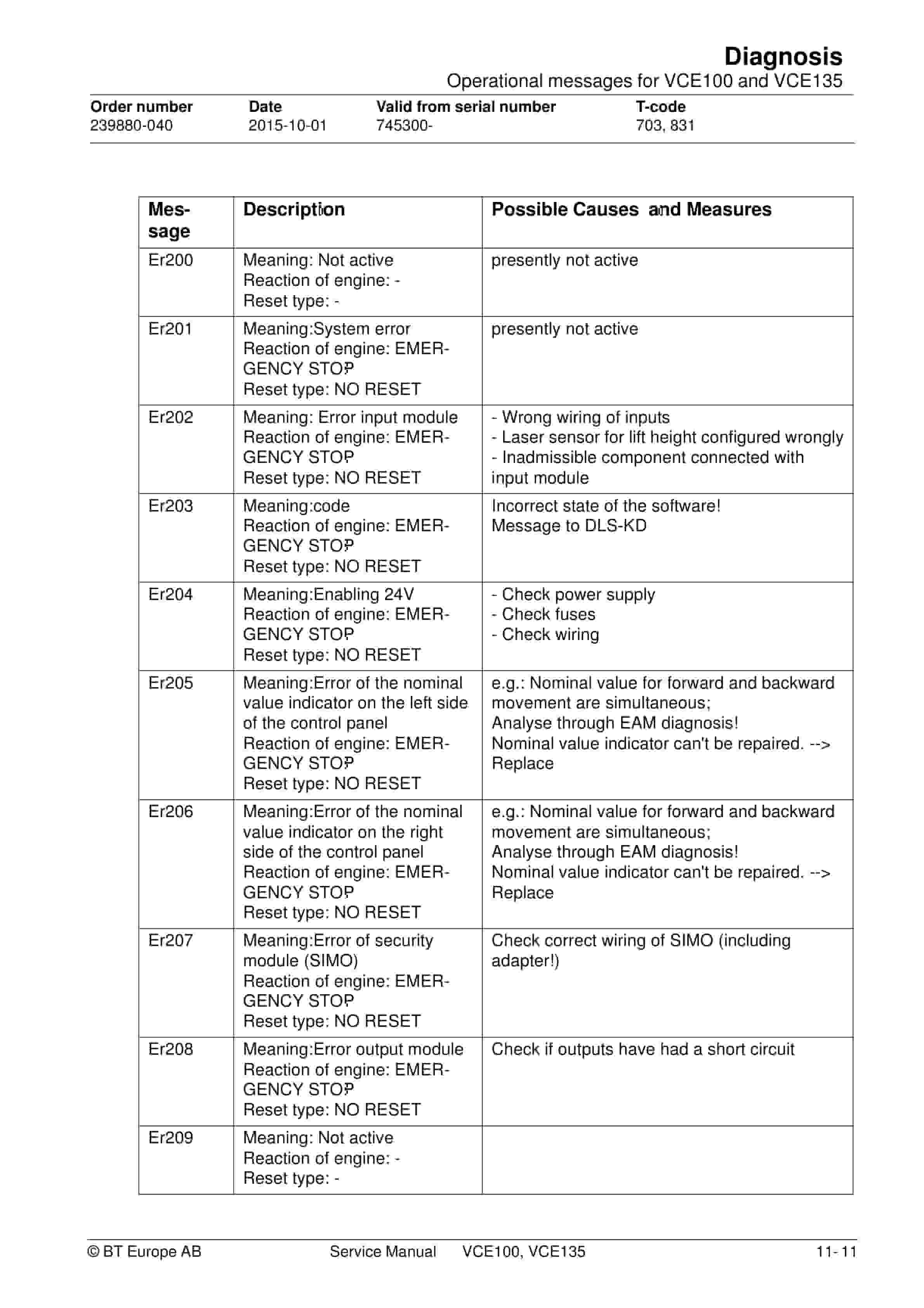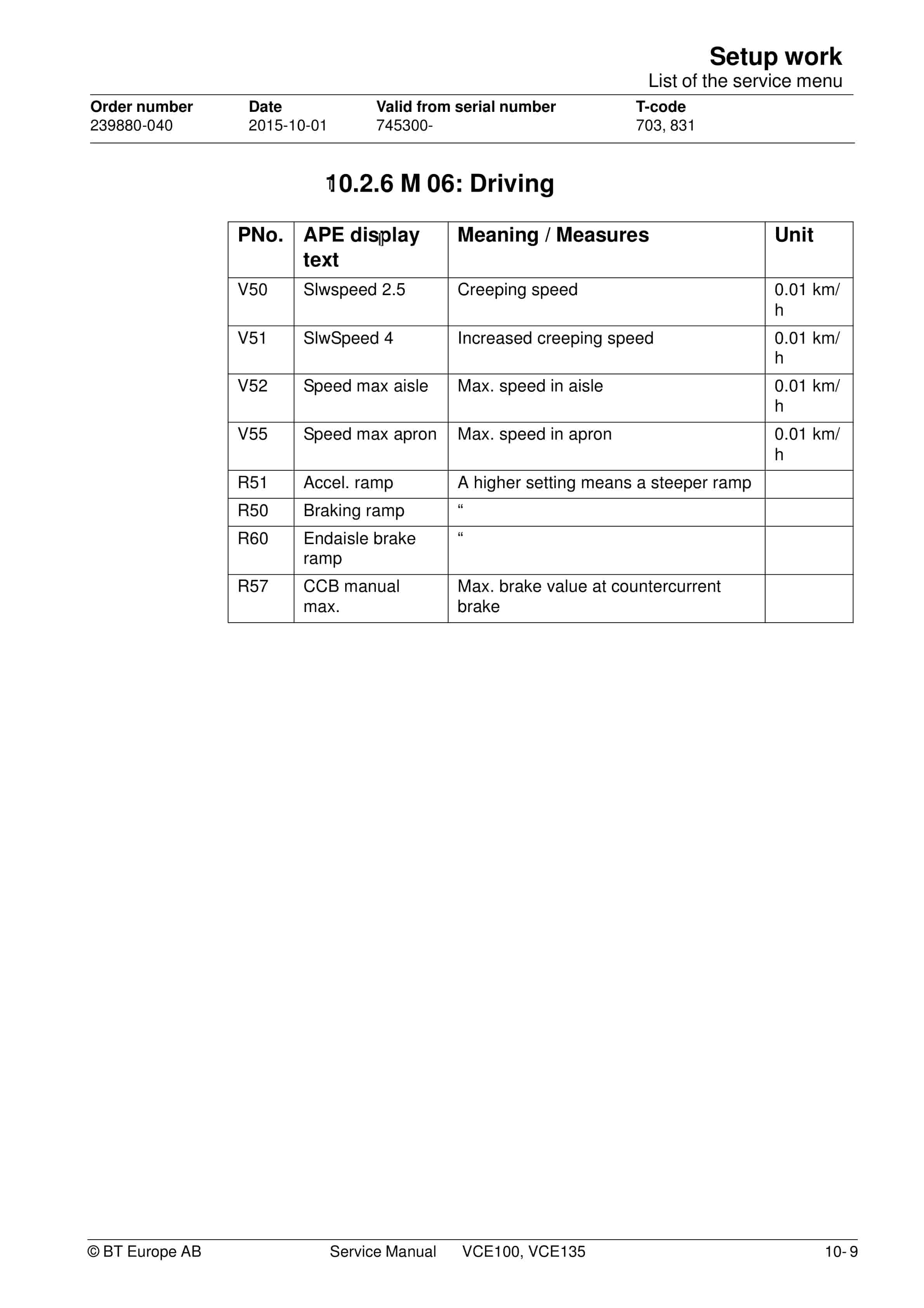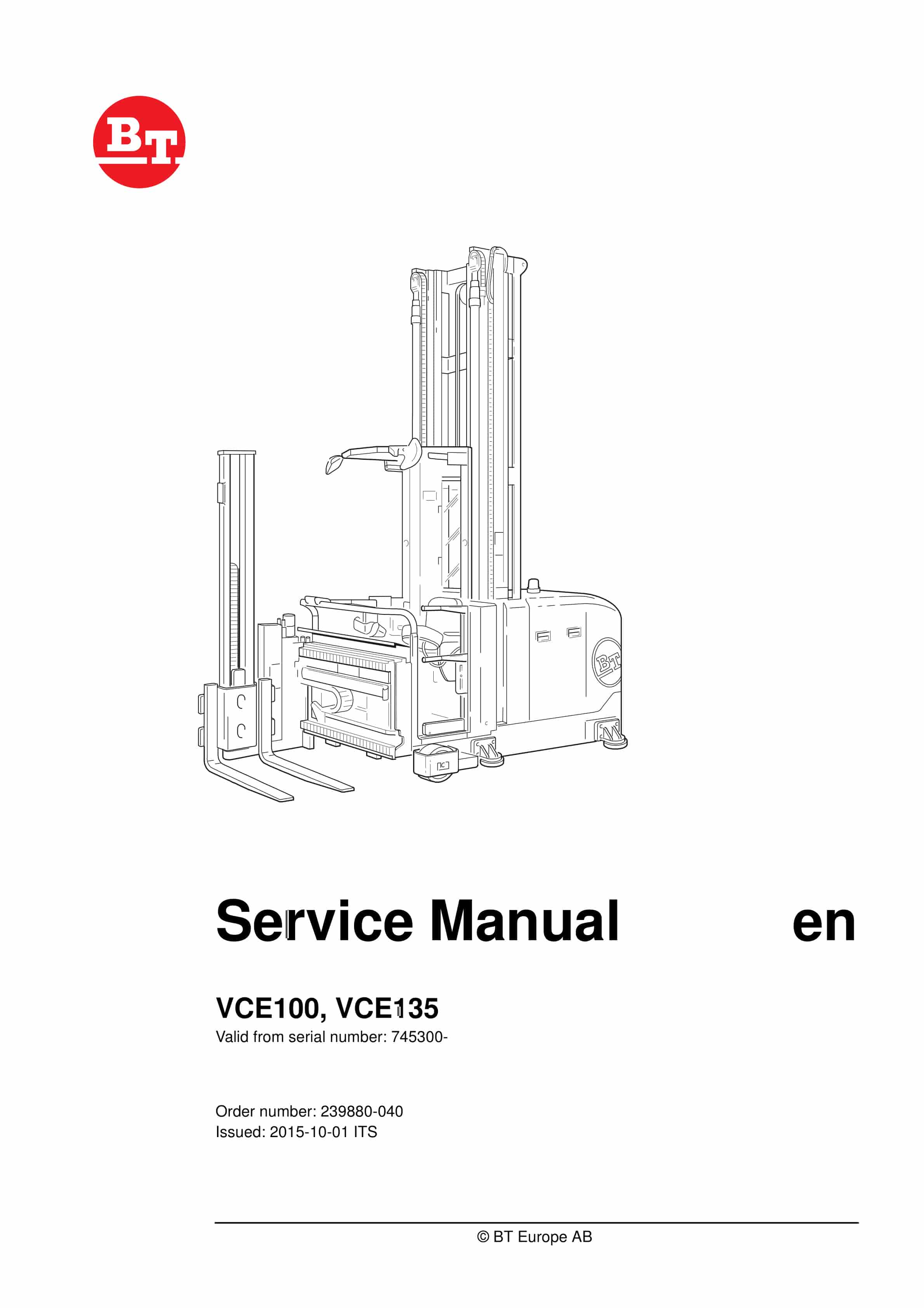 BT VCE100, VCE135 Service Manual 239880-040