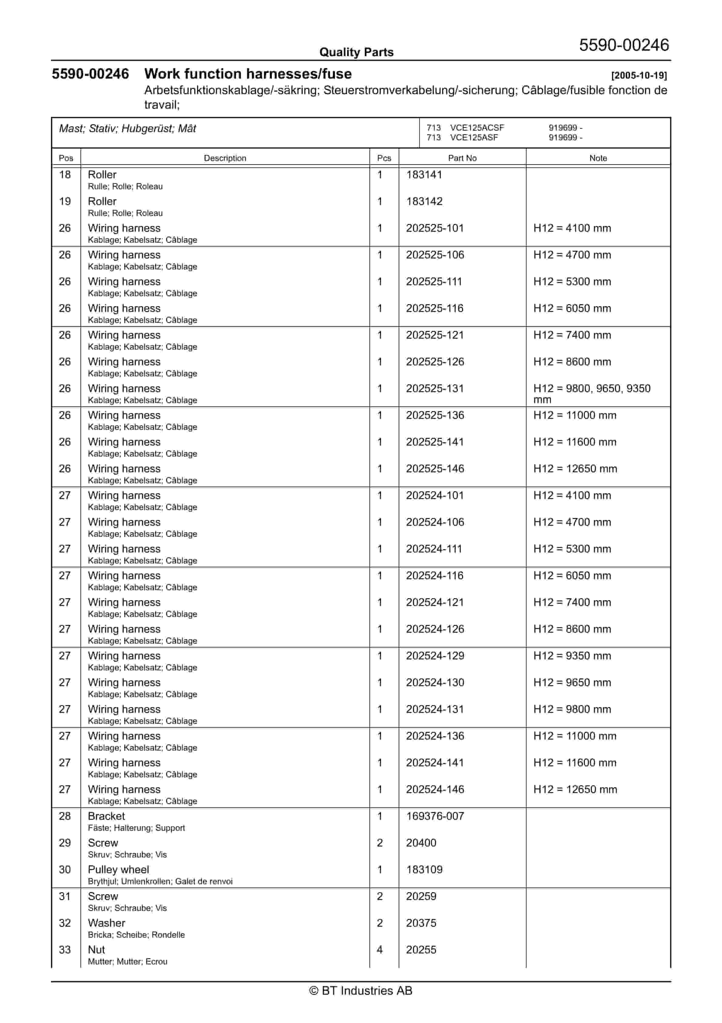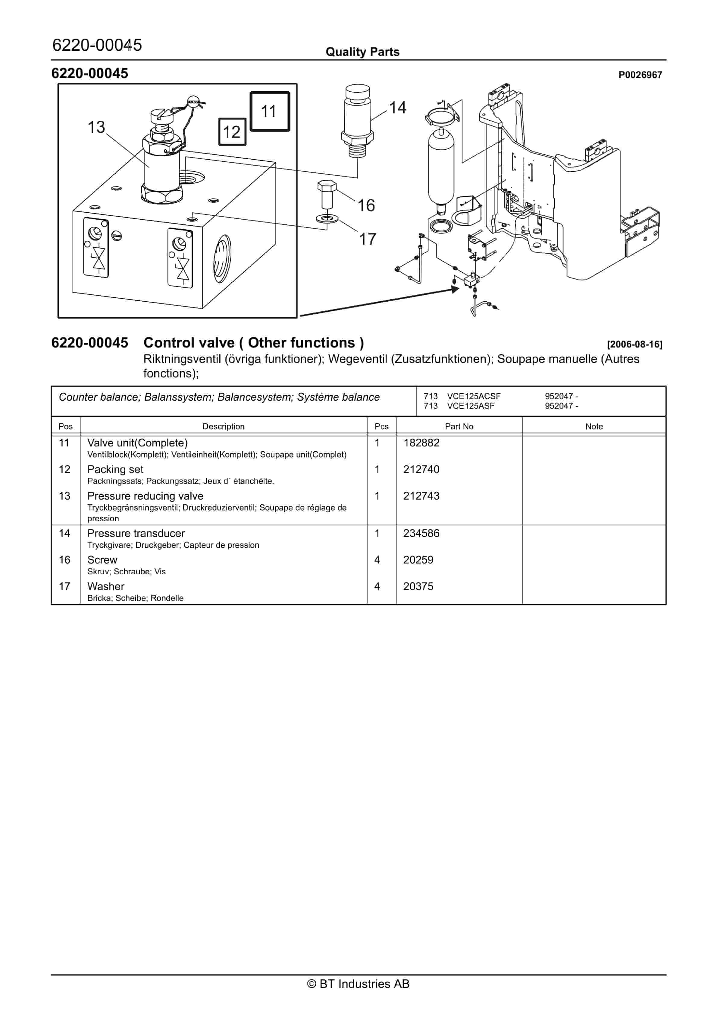 BT VCE125ACSF, VCE125ASF Quality Parts 247795