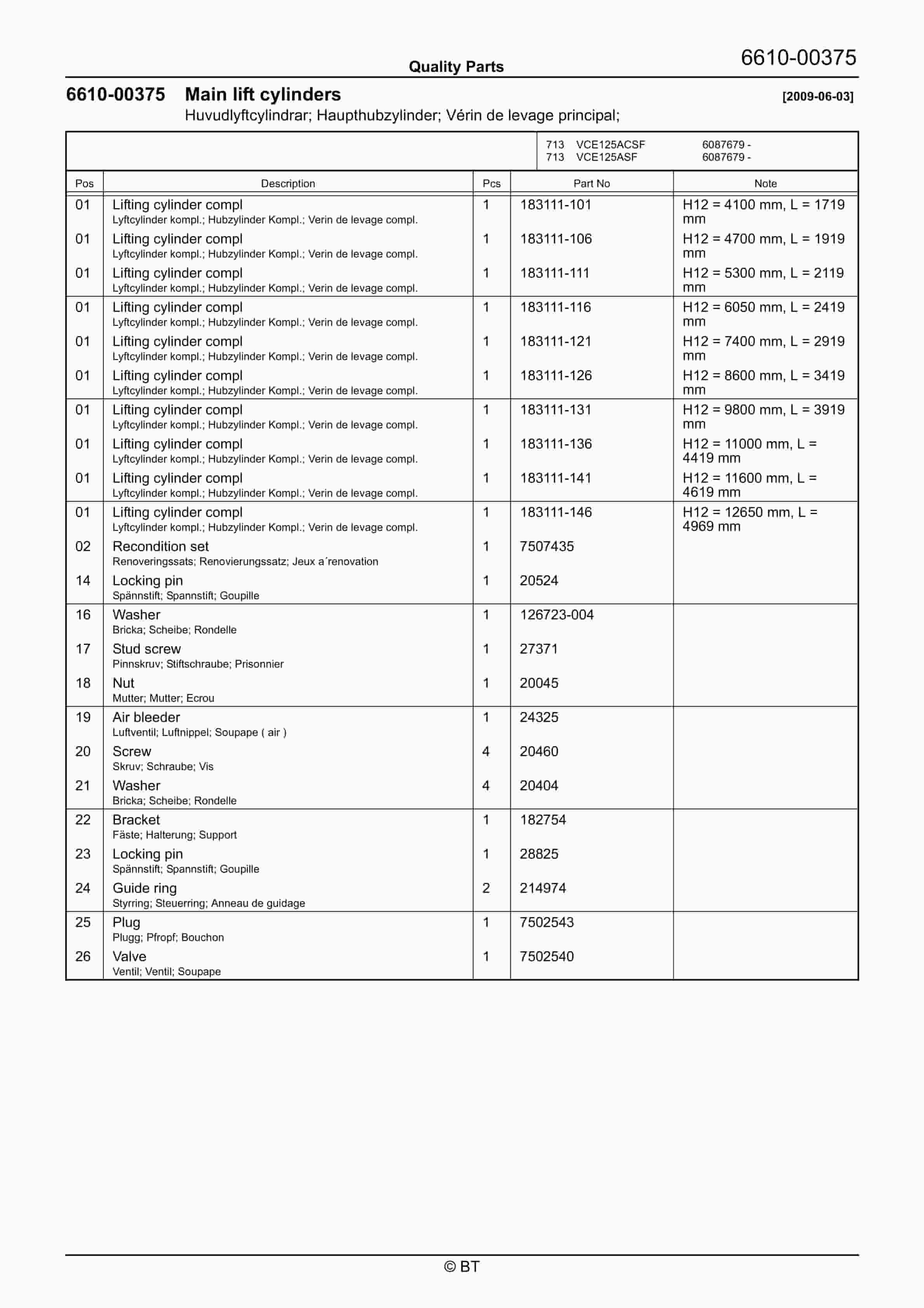 BT VCE125ACSF, VCE125ASF Quality Parts 7511487