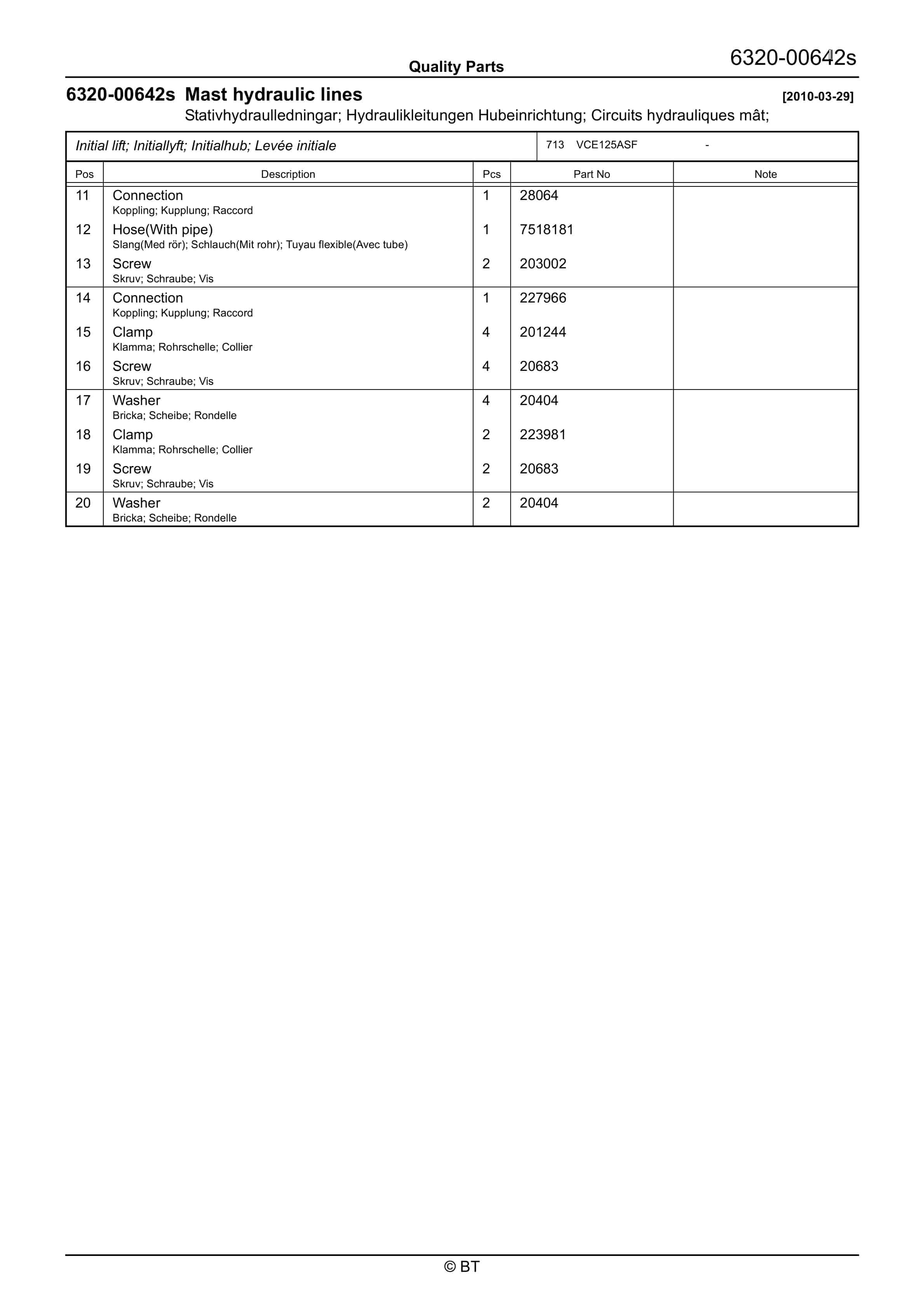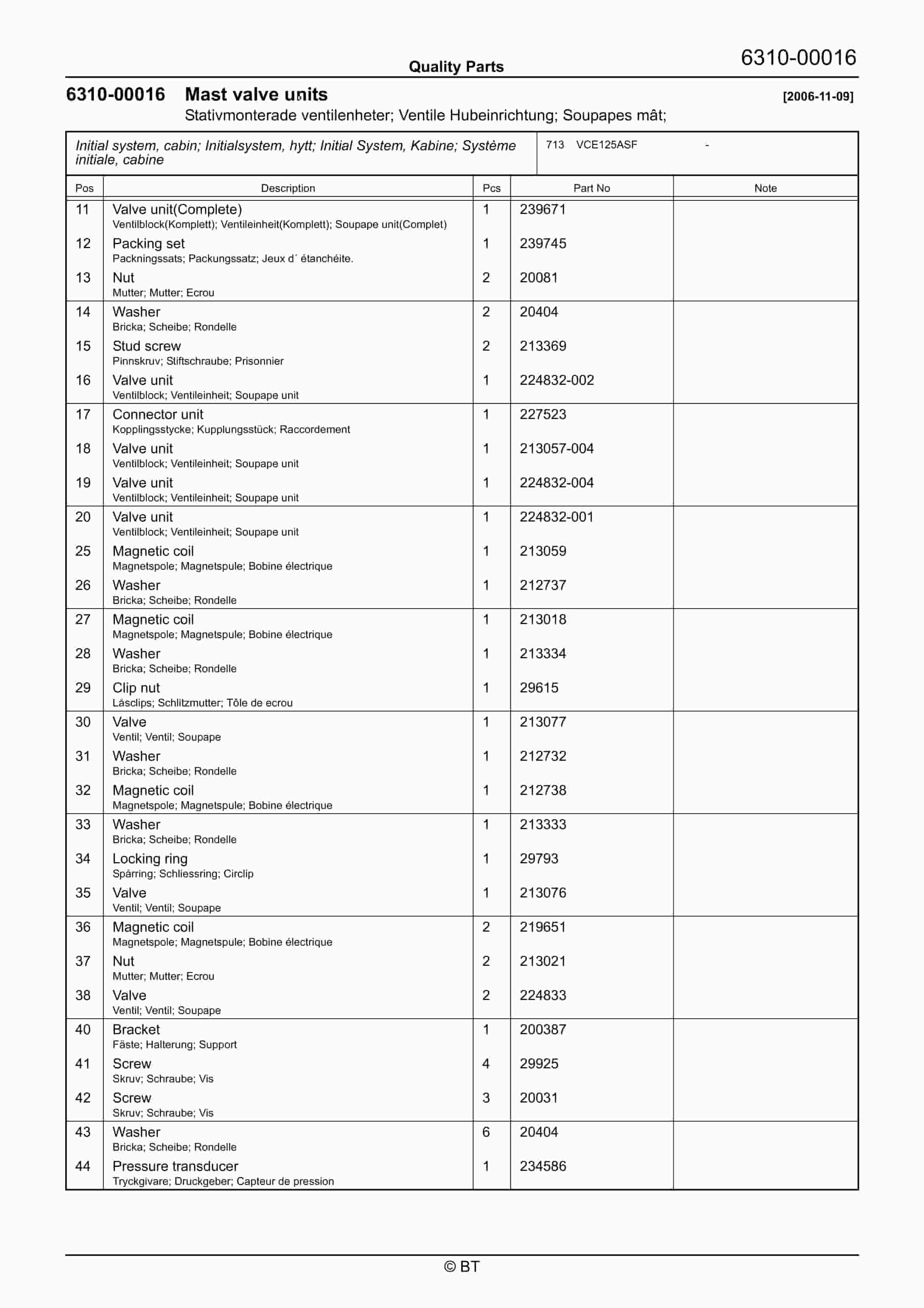 BT 600-TT, 602-TT, 608-TT, 609-TT, 610-TT, 612-TT, 620-TT (AC) Quality Parts 212162