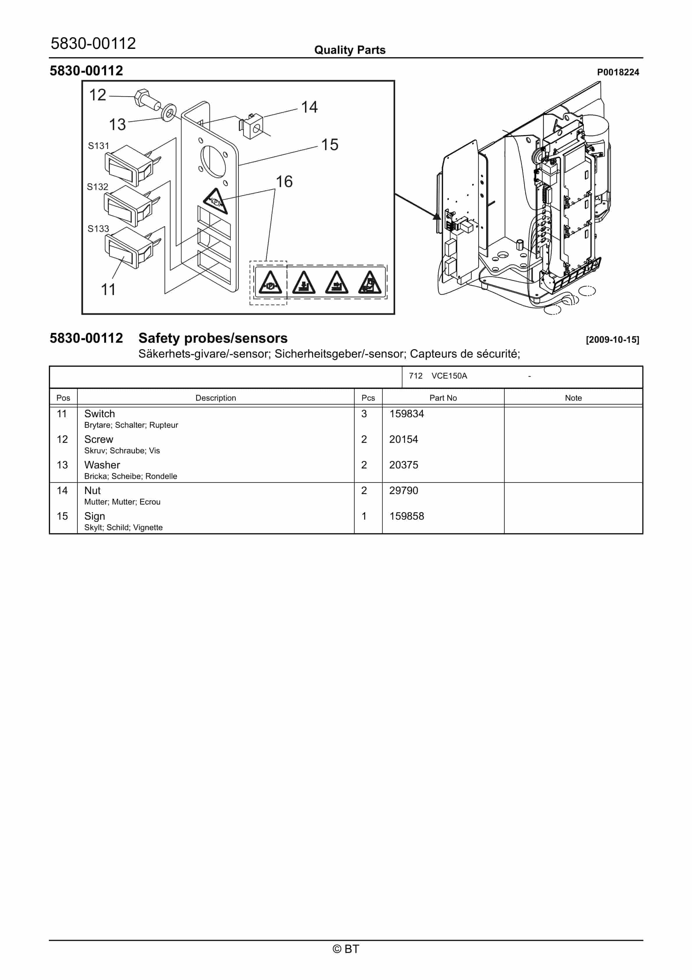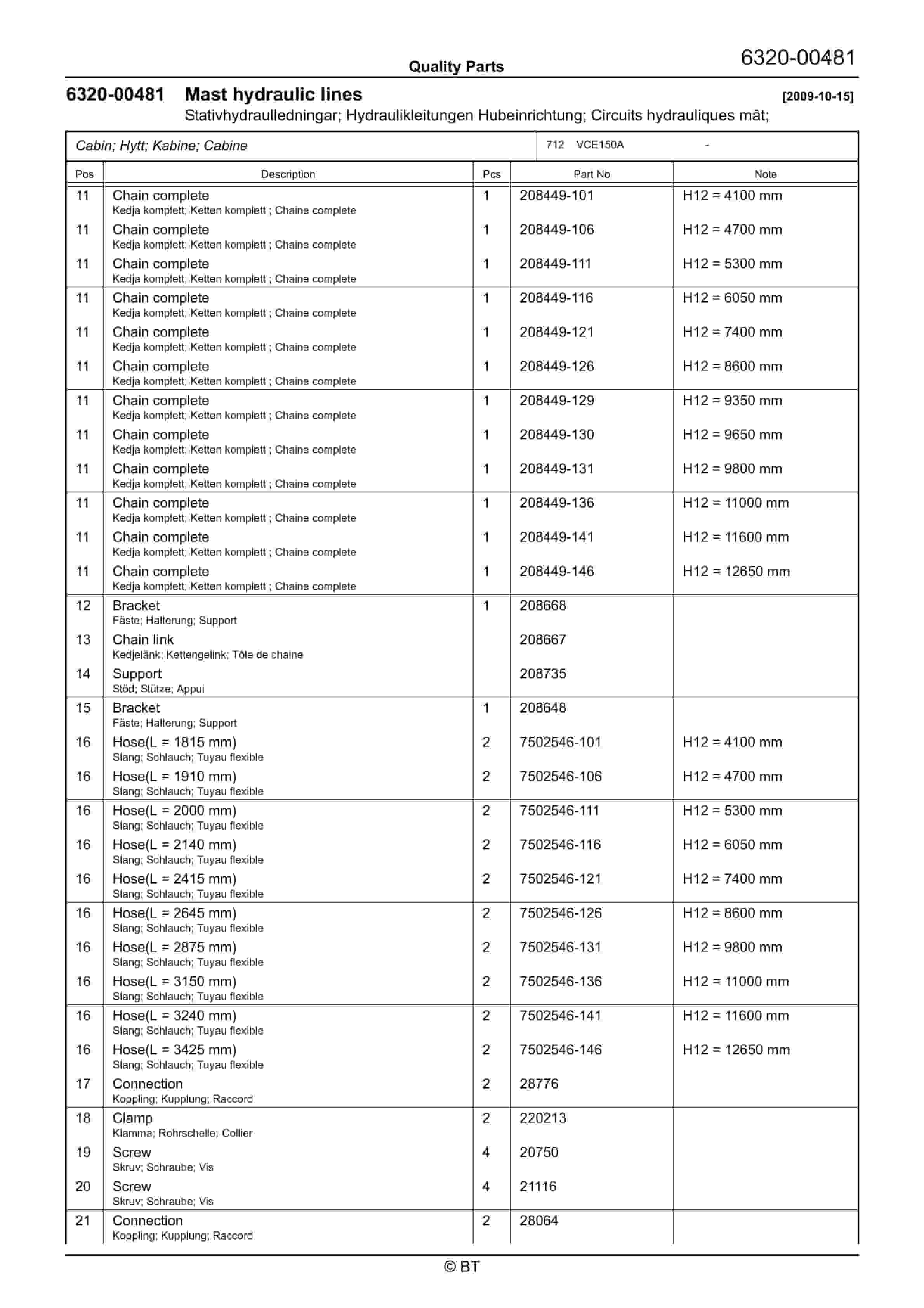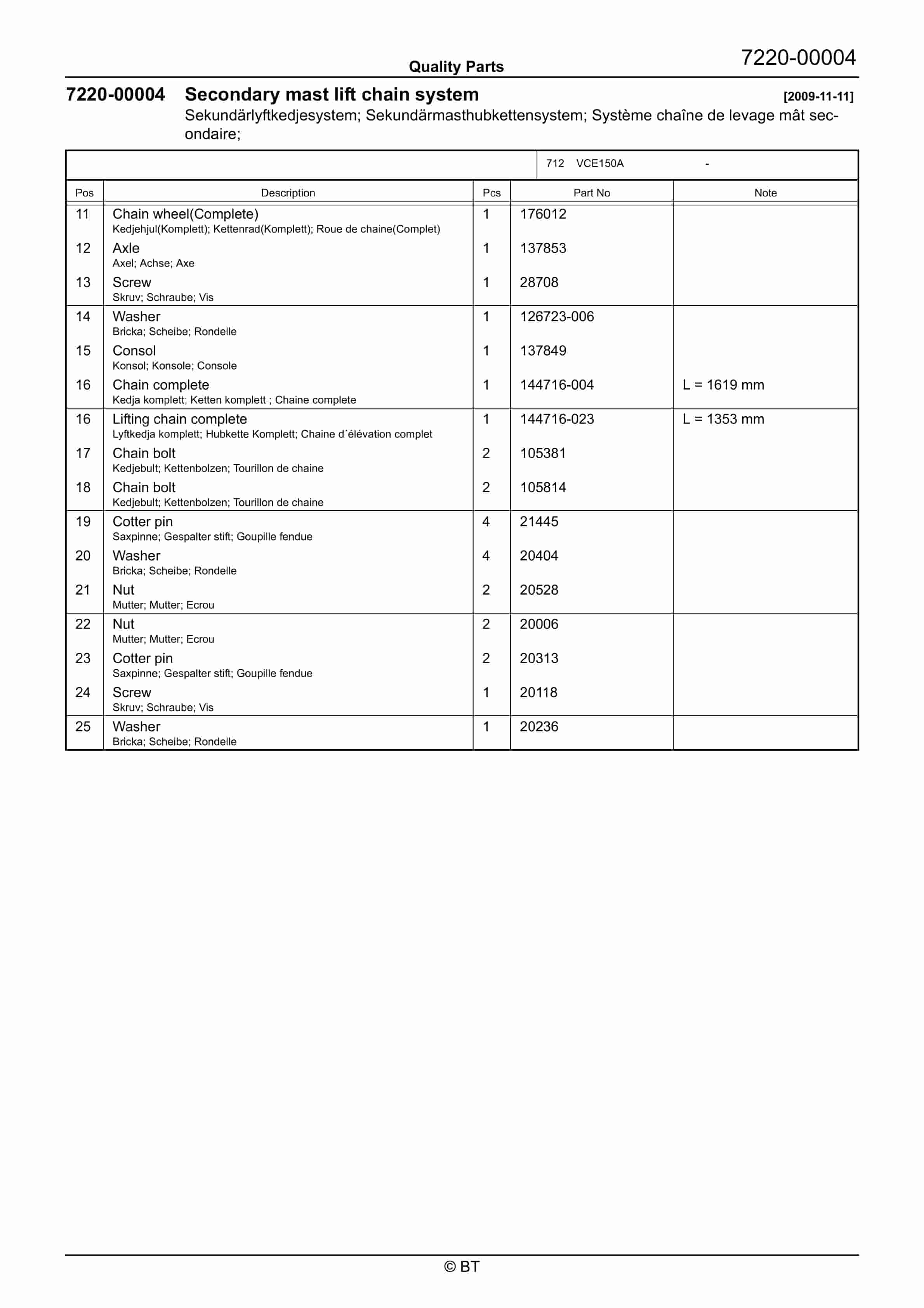 BT BTL20EW, BTL20EWO, BTL30EW, BTL30EWO, L20BR, L20BRO, L30BR, L30BRO Quality Parts 177967