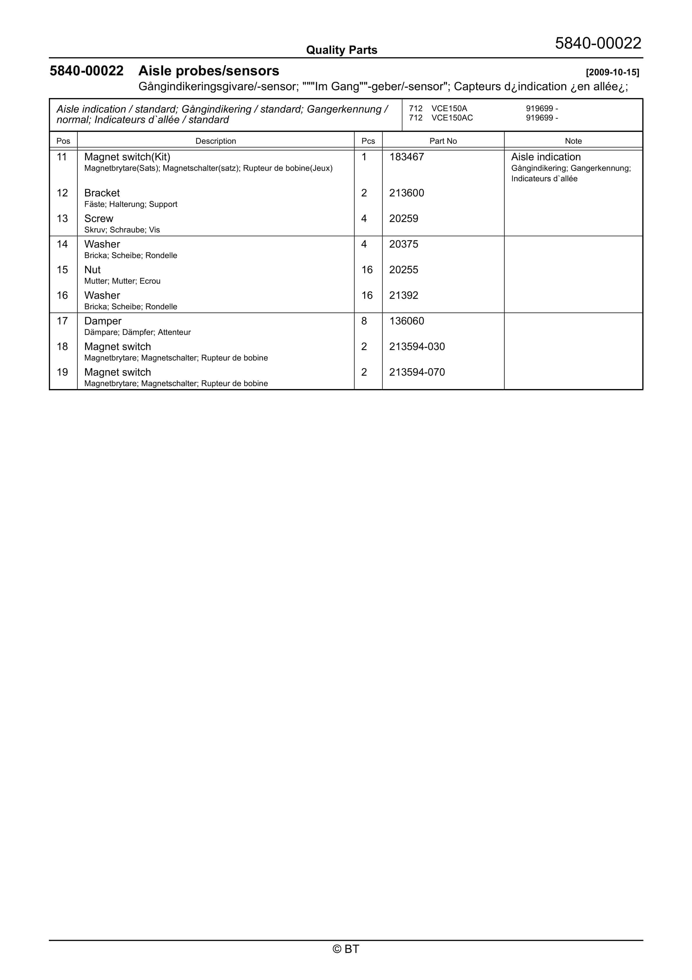 BT 602-TT, 608-TT, 609-TT, 610-TT, 612-TT, 620-TT (AC) Quality Parts 253711