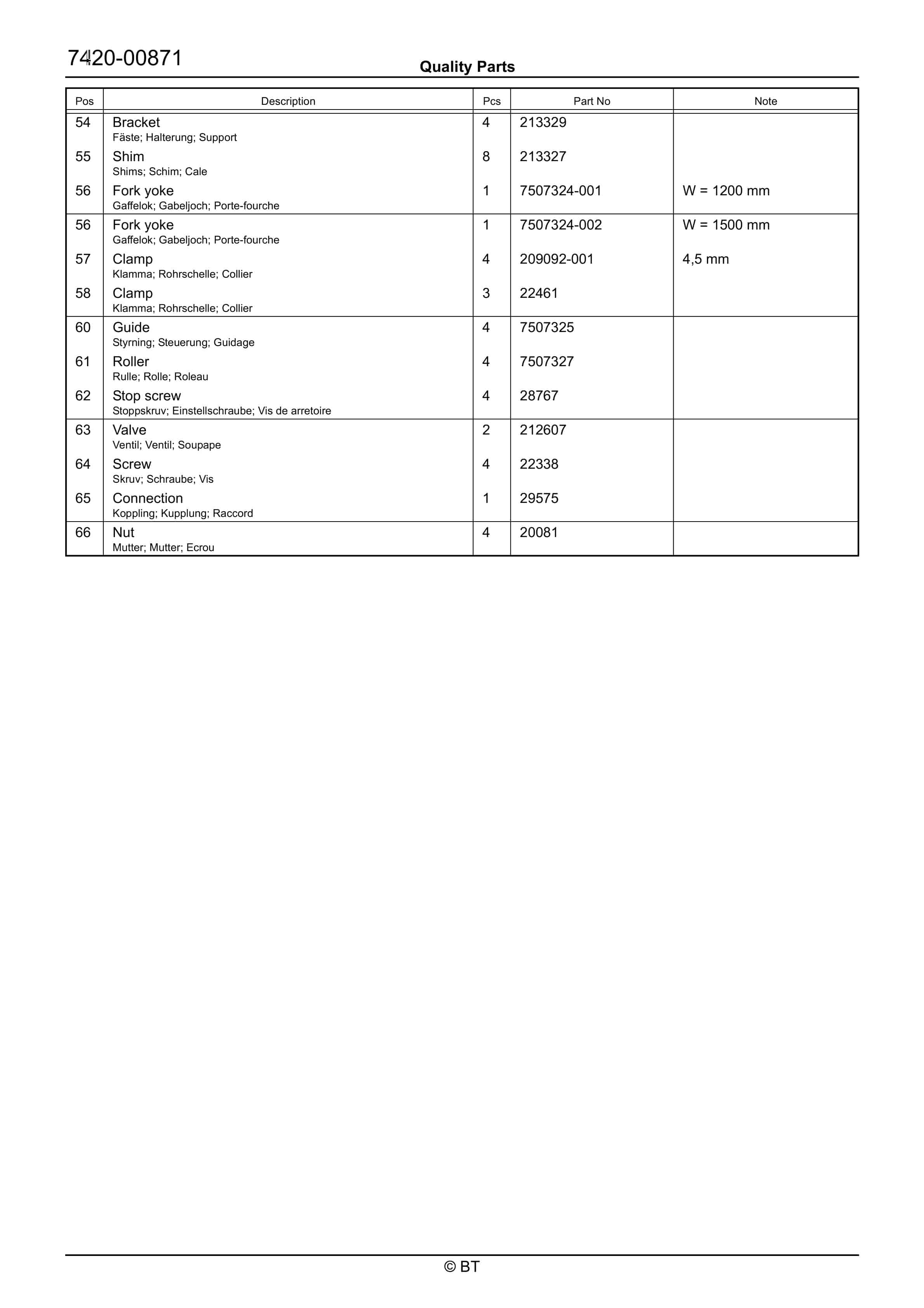 BT BTL20EW, BTL20EWO, BTL30EW, BTL30EWO, L20BR, L20BRO, L30BR, L30BRO Quality Parts 177967