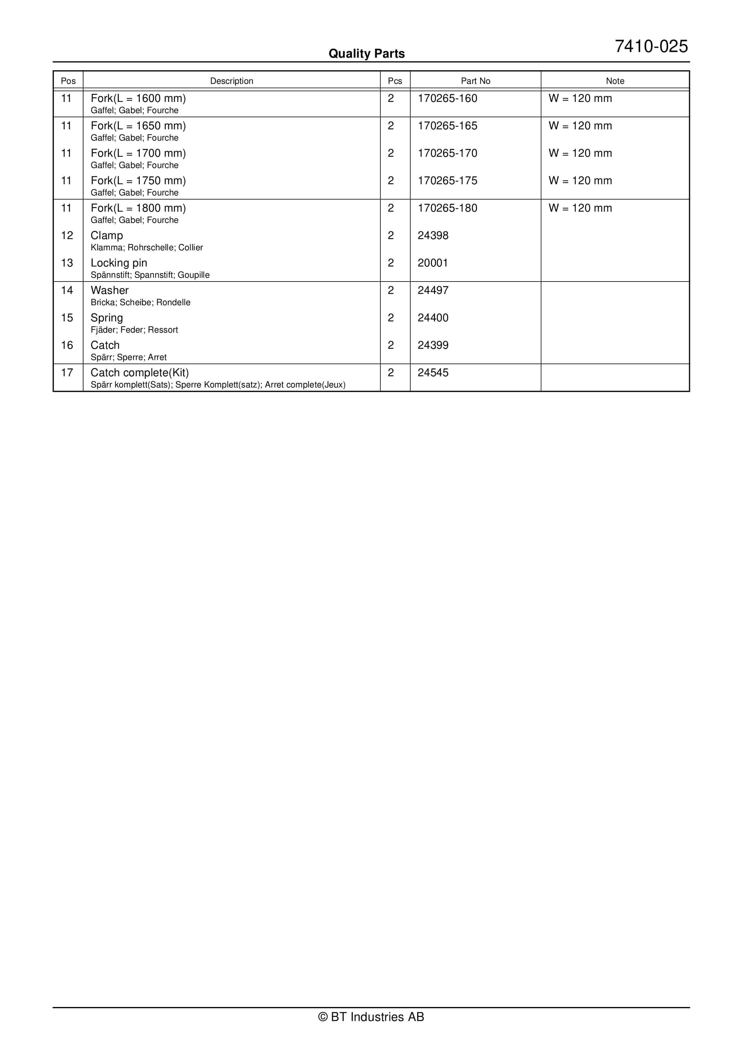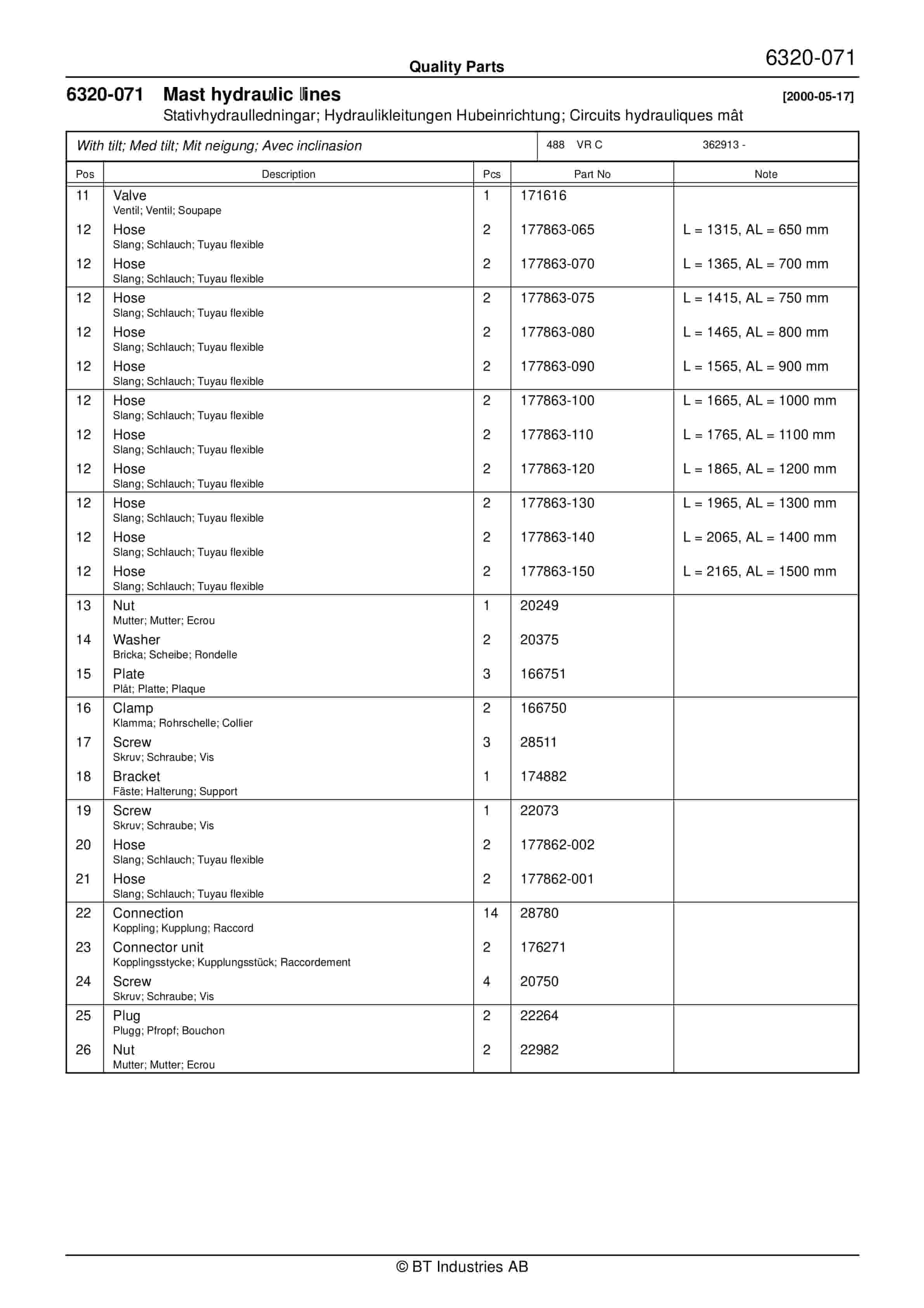 BT 600-TT, 602-TT, 608-TT, 609-TT, 610-TT, 612-TT, 620-TT (AC) Quality Parts 212162