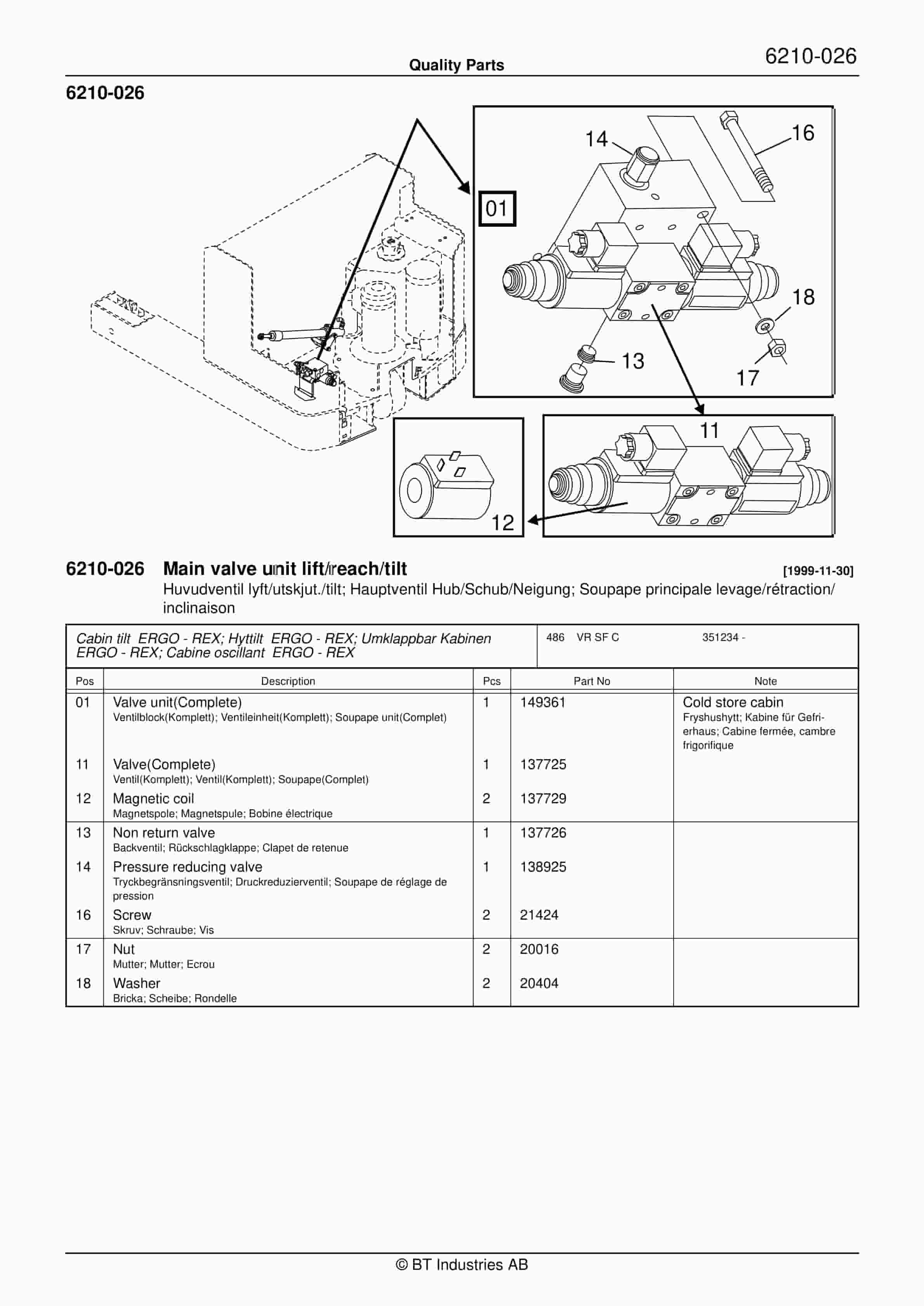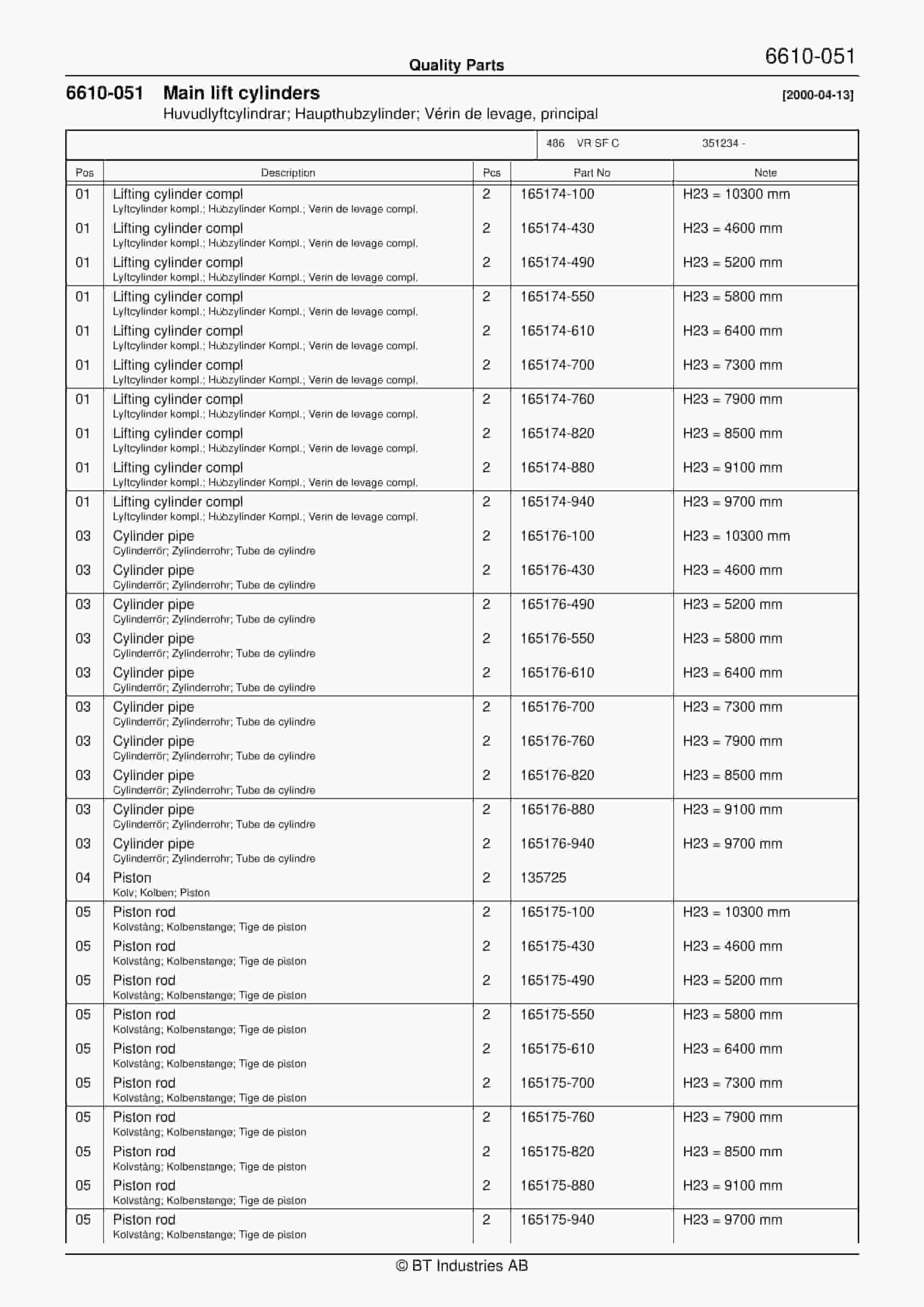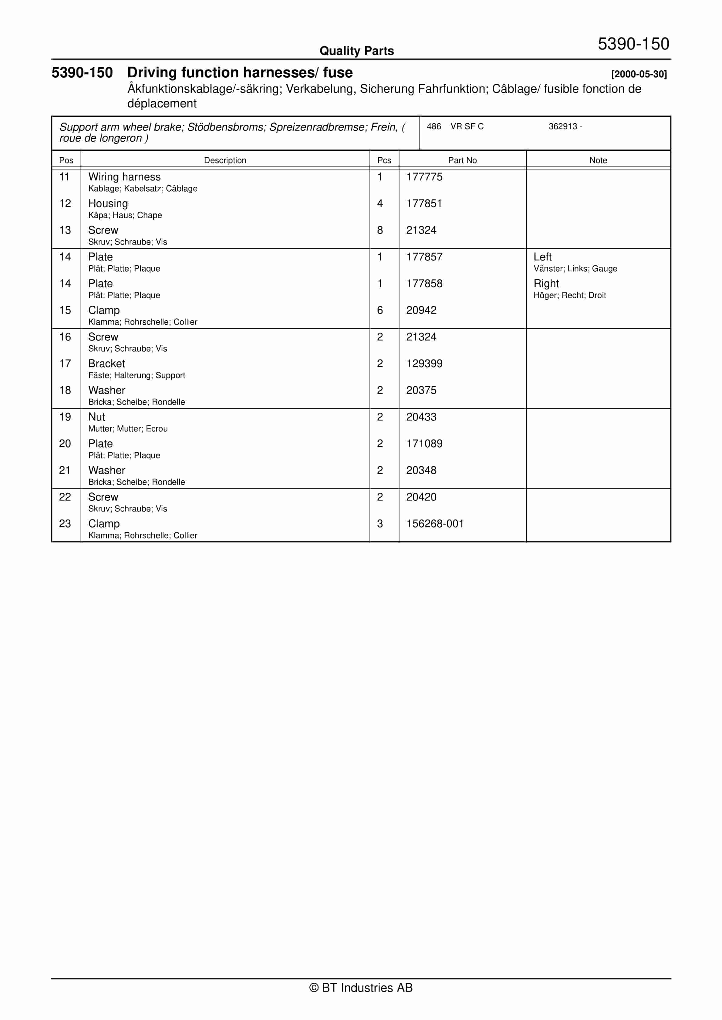 BT 602-TT, 608-TT, 609-TT, 610-TT, 612-TT, 620-TT (AC) Quality Parts 253711