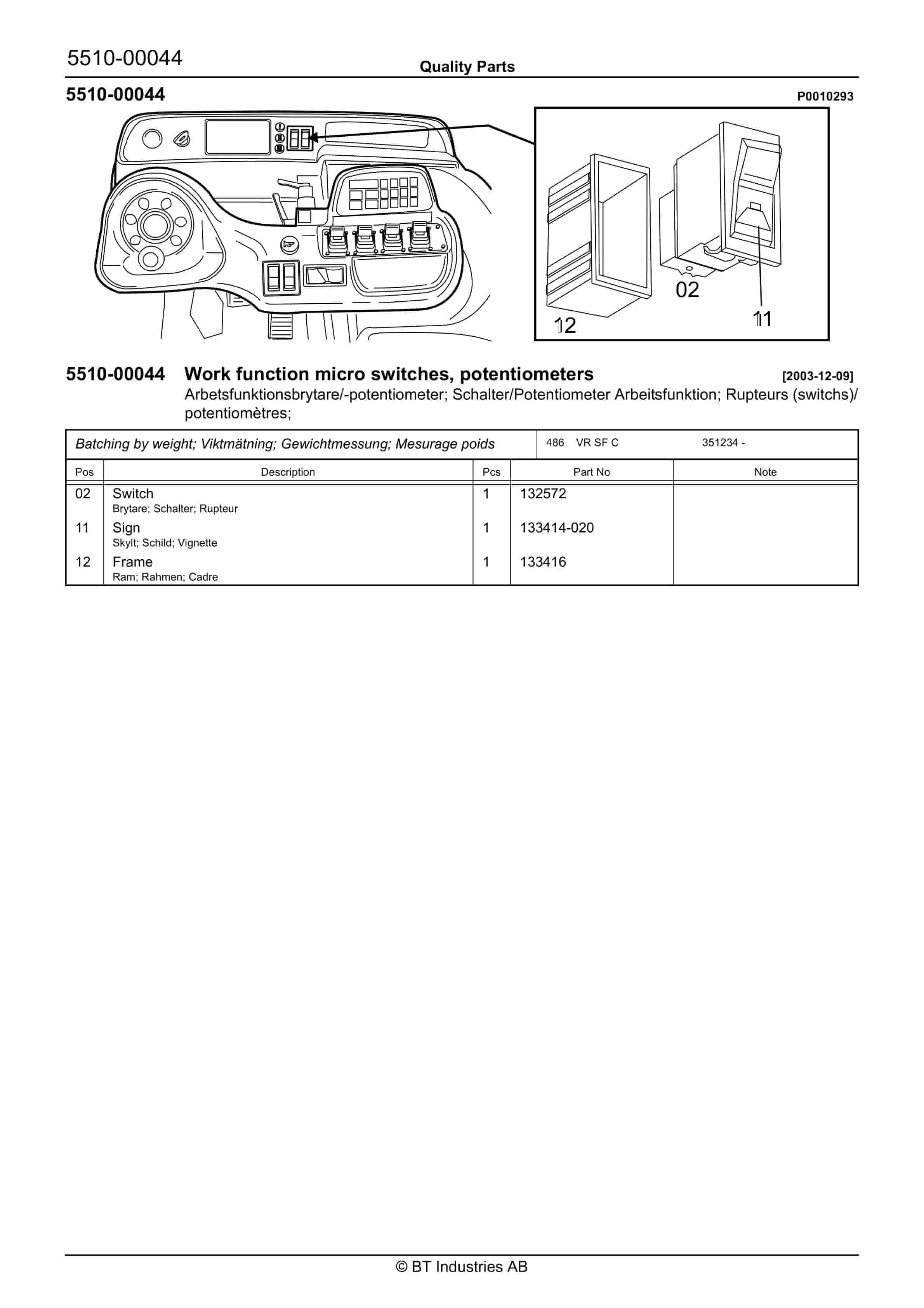 BT 602-TT, 608-TT, 609-TT, 610-TT, 612-TT, 620-TT (AC) Quality Parts 253711