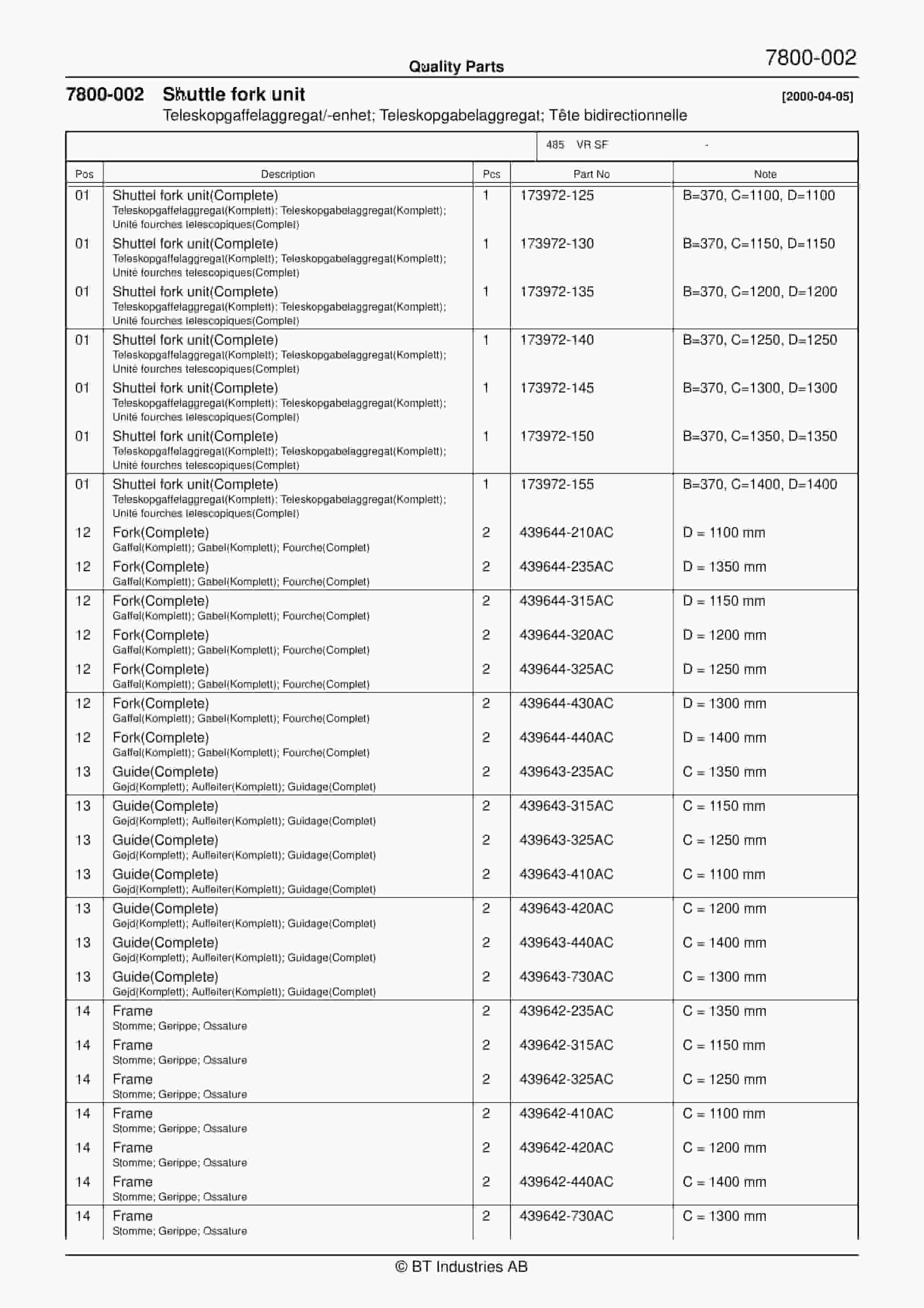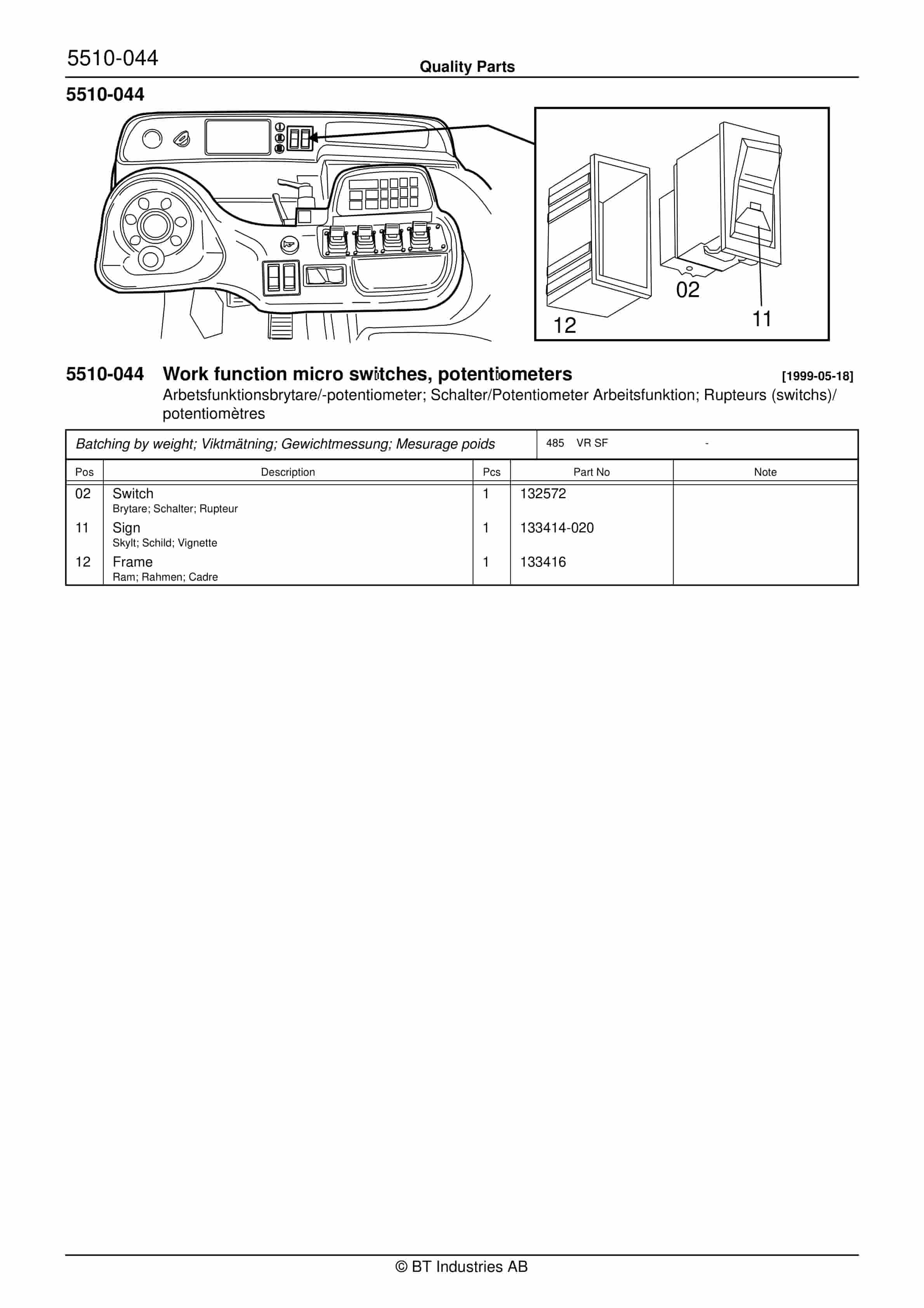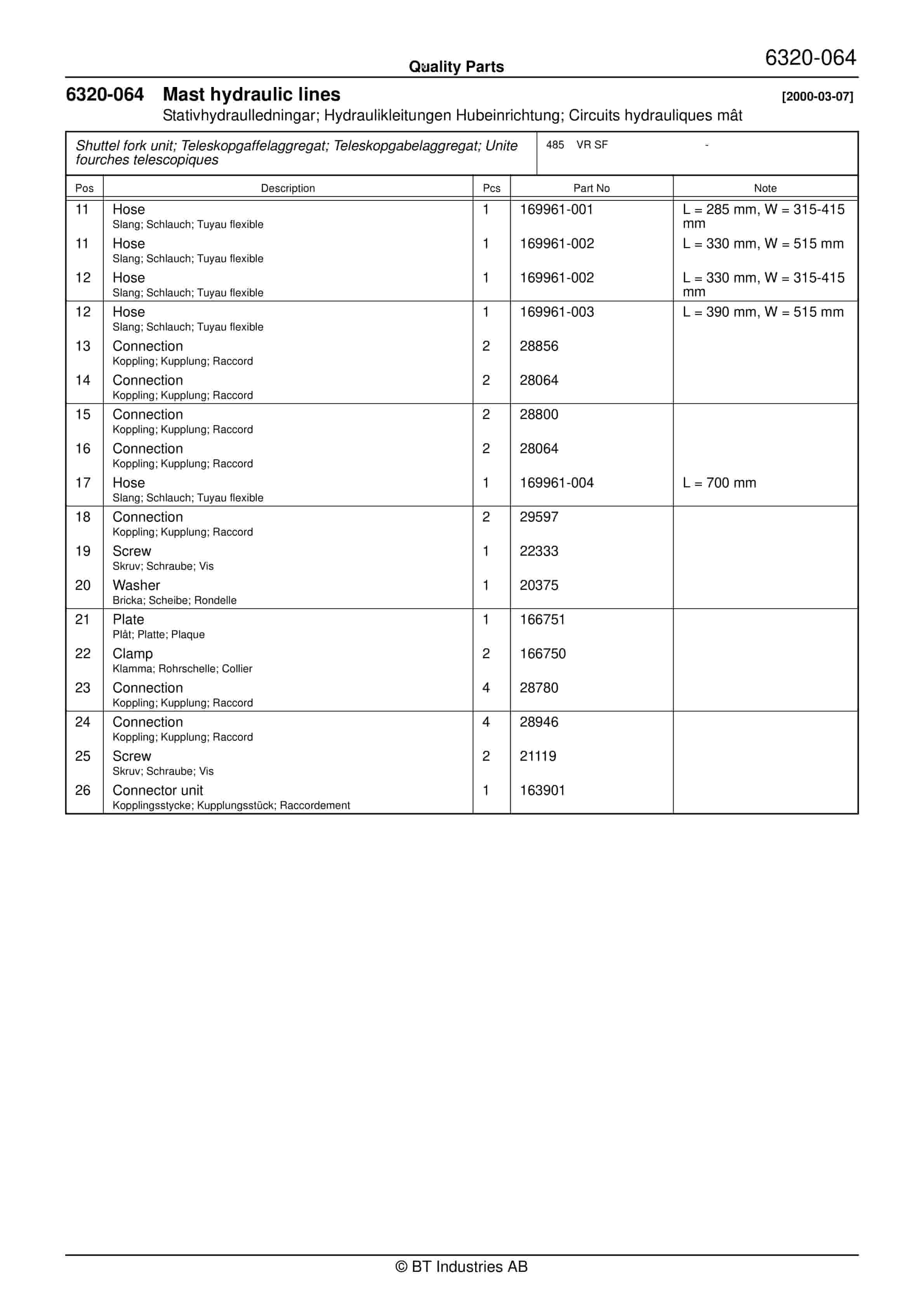BT 602-TT, 608-TT, 609-TT, 610-TT, 612-TT, 620-TT (AC) Quality Parts 253711