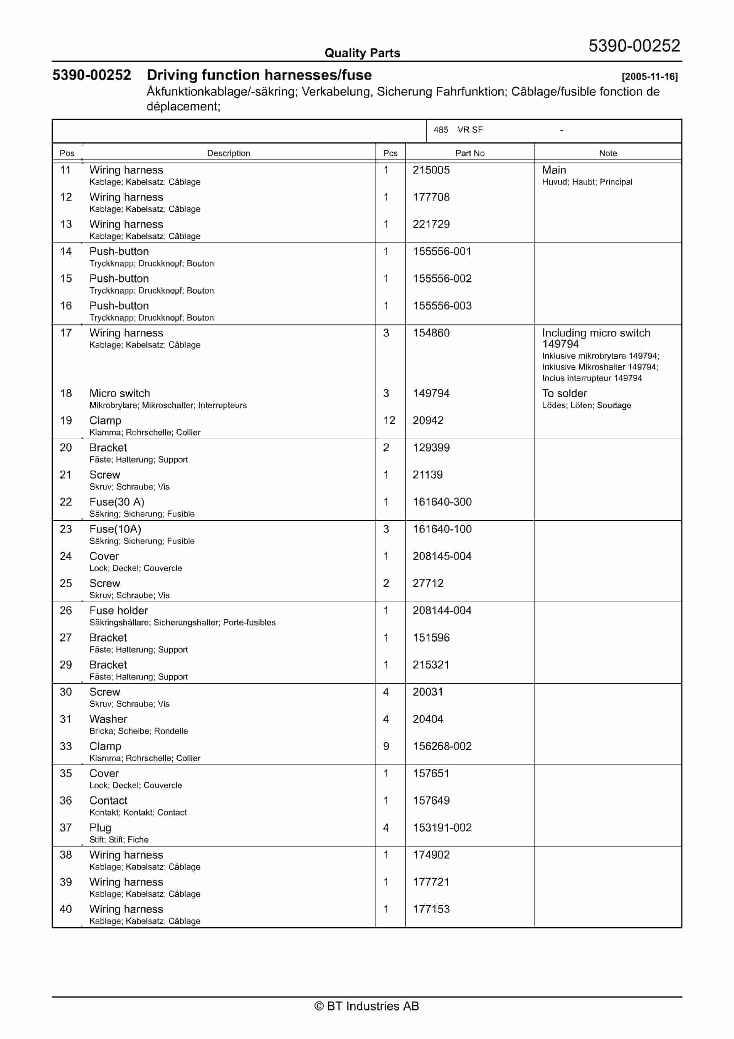 BT 602-TT, 608-TT, 609-TT, 610-TT, 612-TT, 620-TT (AC) Quality Parts 253711
